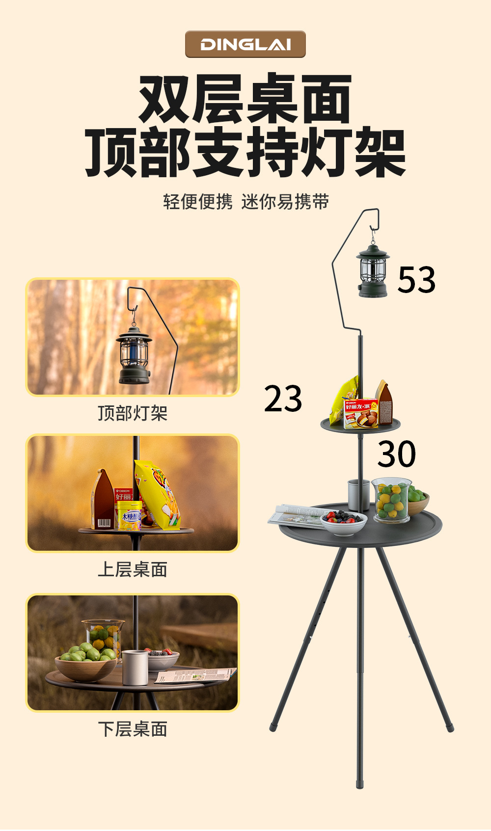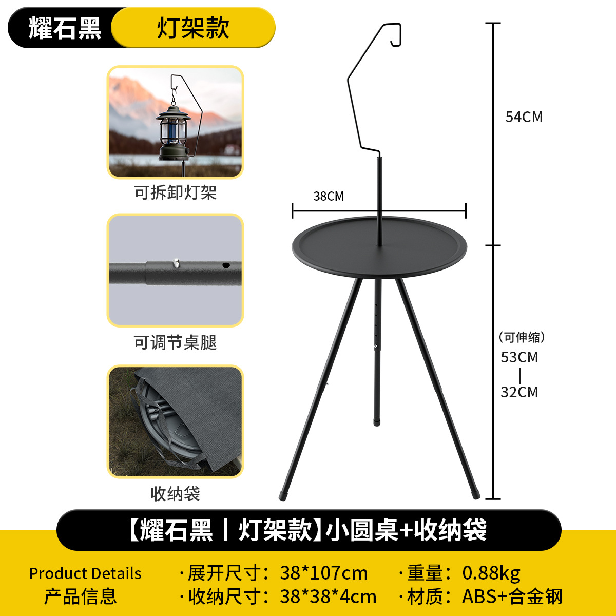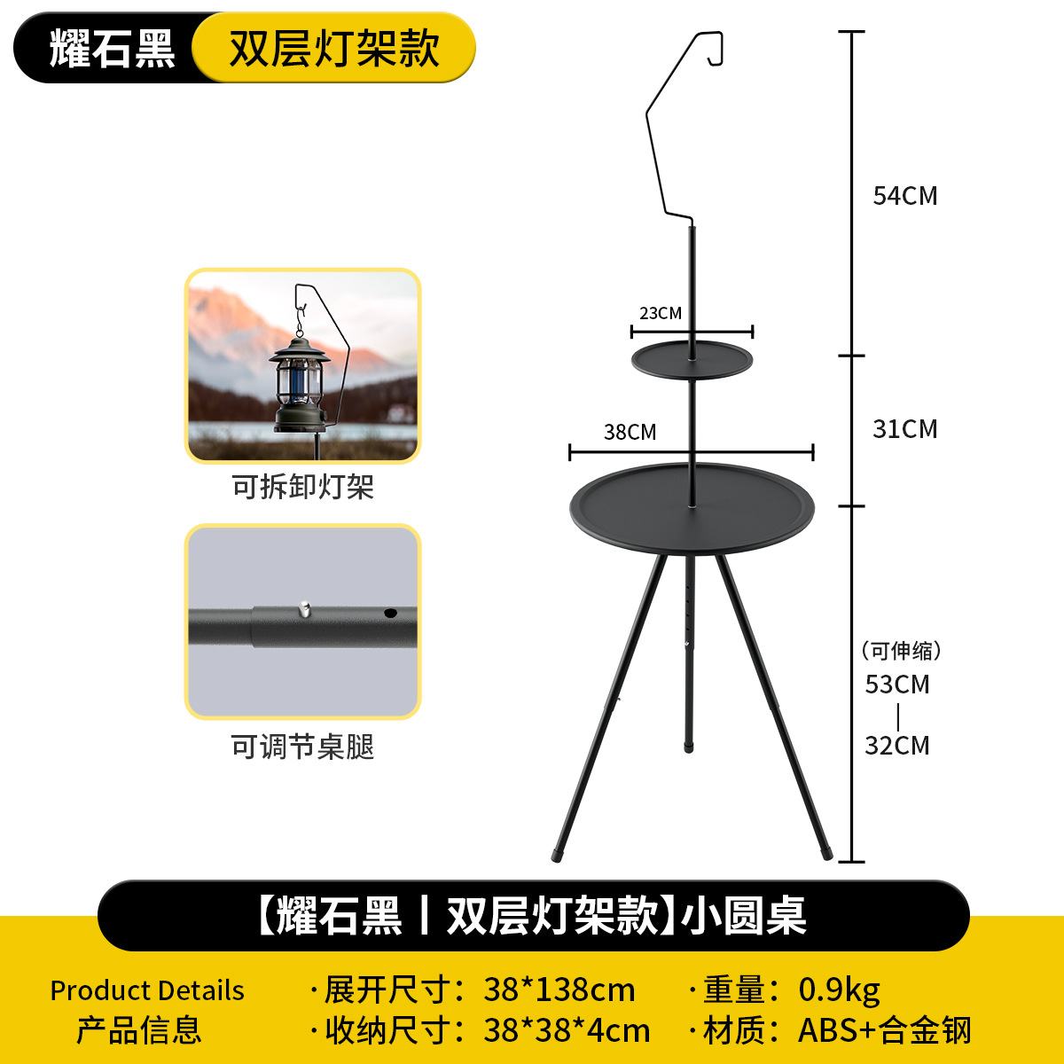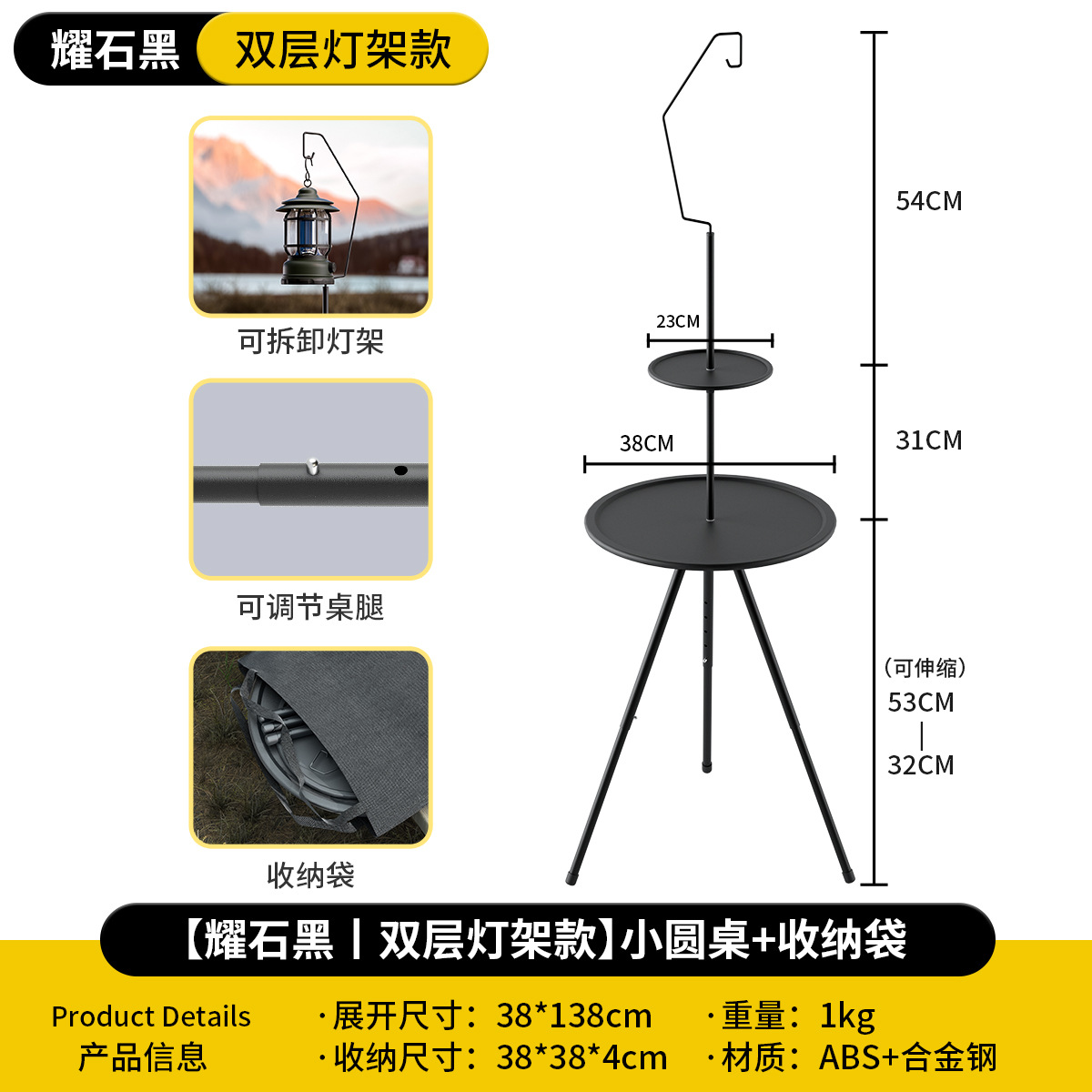 Складной круглый стол на открытом воздухе портативный подъемный стол кемпинг снаряжение для пикника двухэтажный столик с лампочкой