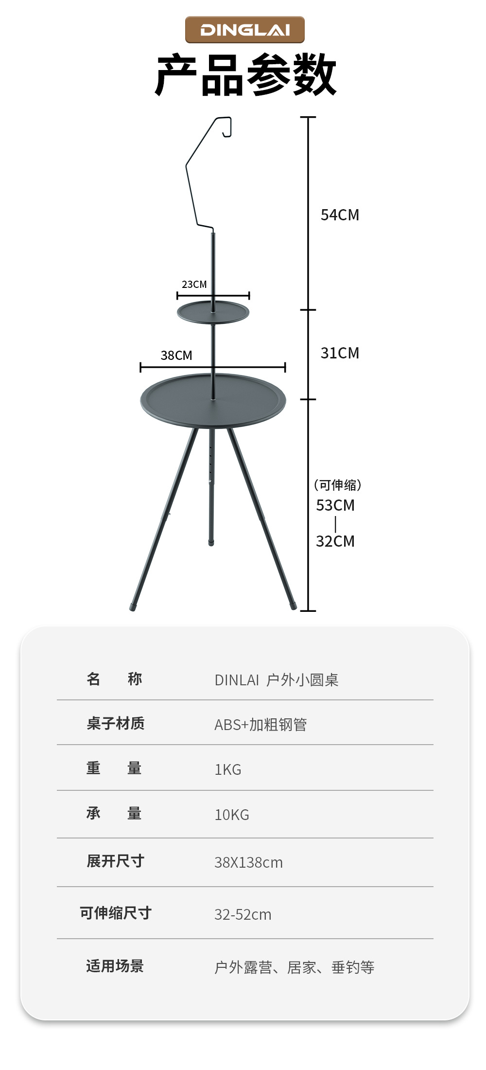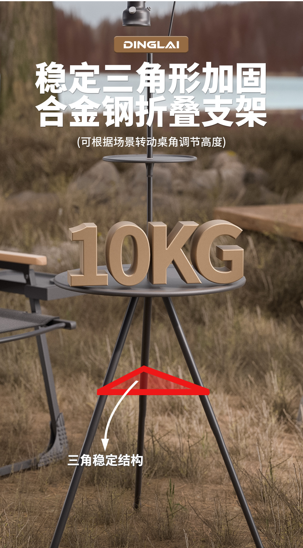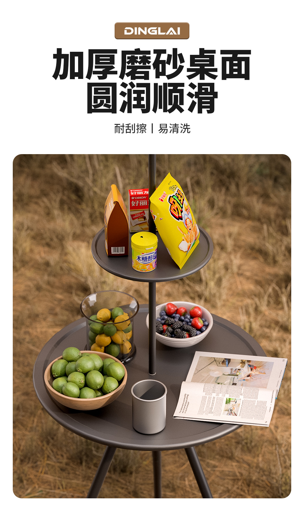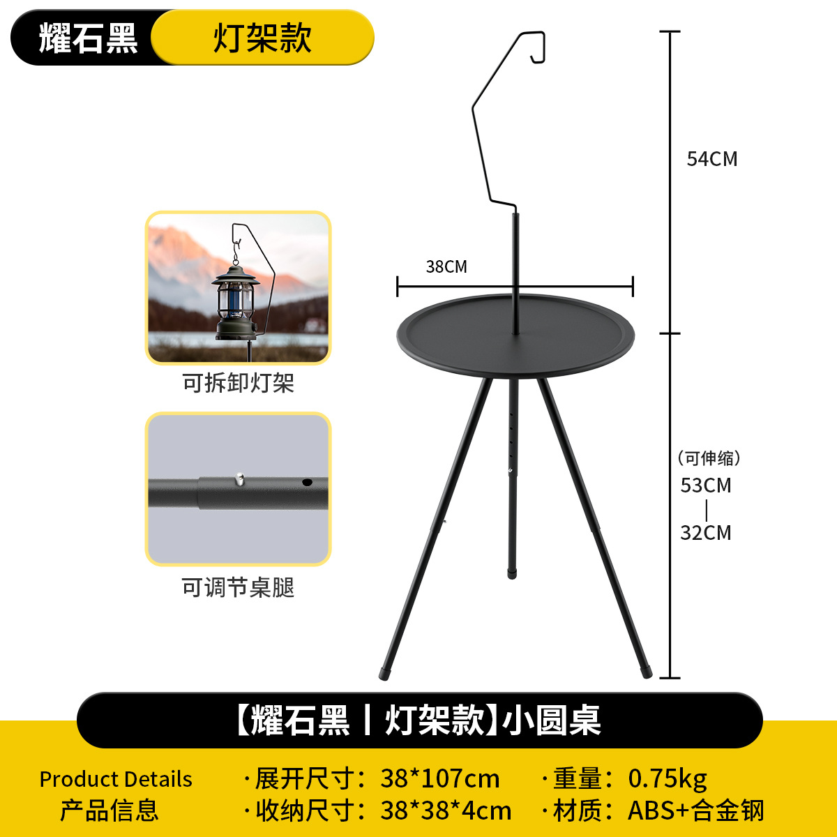 Складной круглый стол на открытом воздухе портативный подъемный стол кемпинг снаряжение для пикника двухэтажный столик с лампочкой