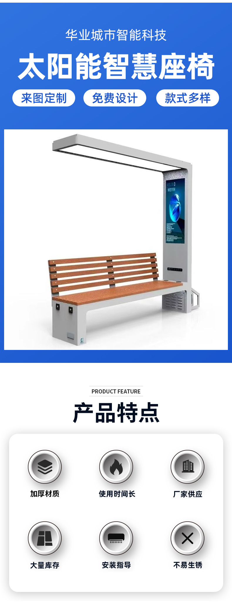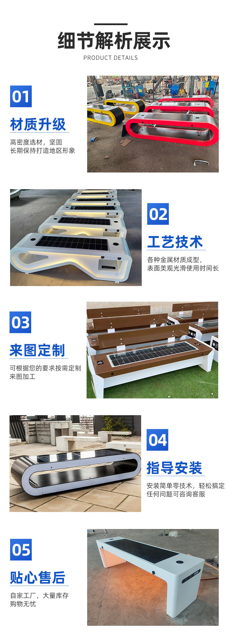 Солнечные кресла Парк Фотоэлектрические кресла Умные скамейки на открытом воздухе Металлические кресла на открытом воздухе