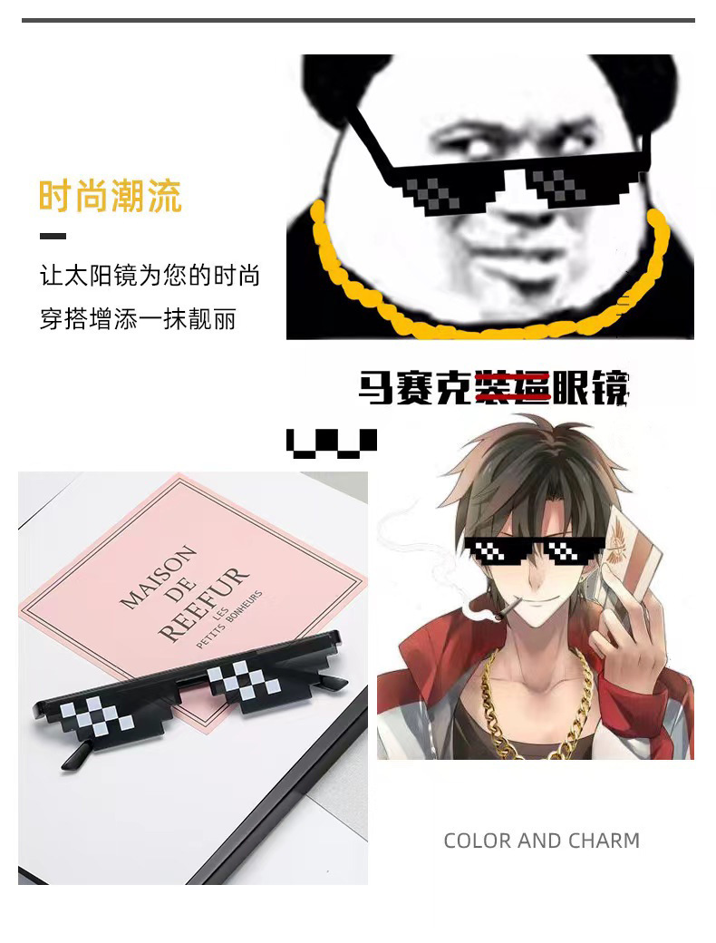 Mosaic glasses, funny sunglasses, anime pixel style, best man group, sunglasses, party glasses, direct sales by manufacturers
