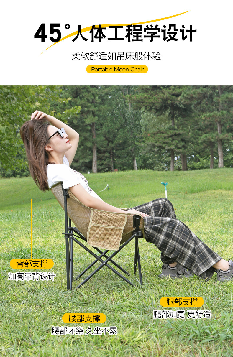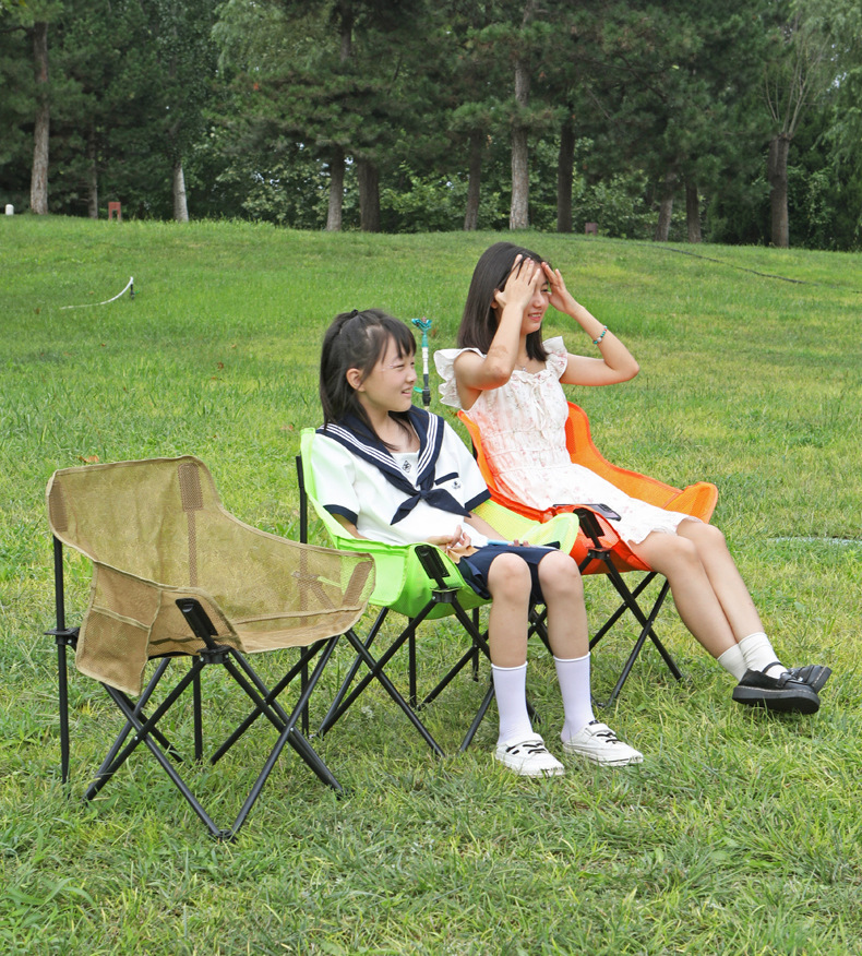 Складной стул на открытом воздухе, портативный ультралегкий рыболовный стул, пляжный складной стол, кемпинг, лунное кресло, кресло, спинка, искусство.