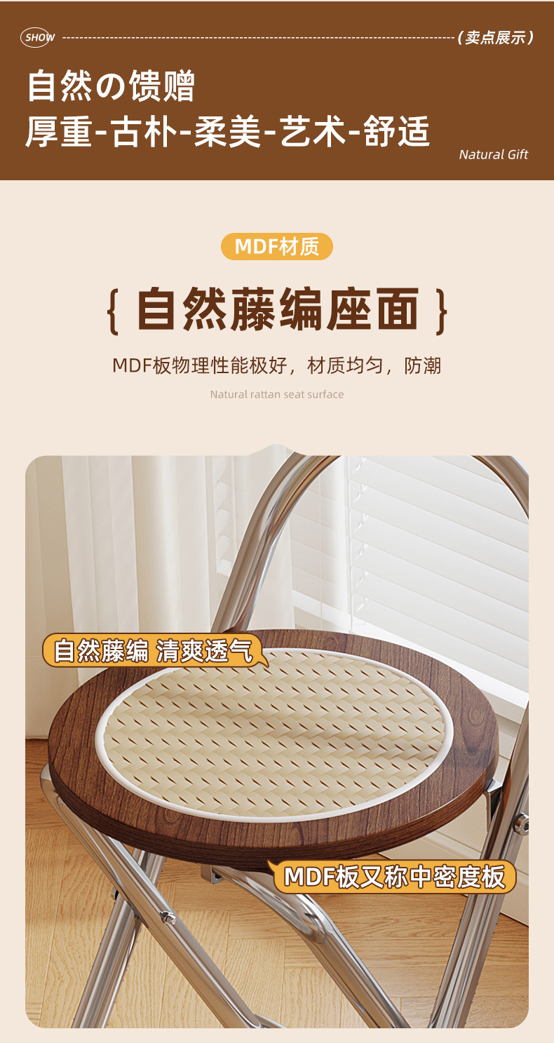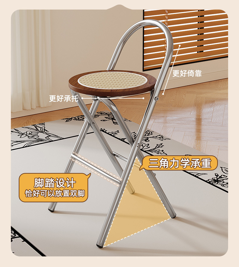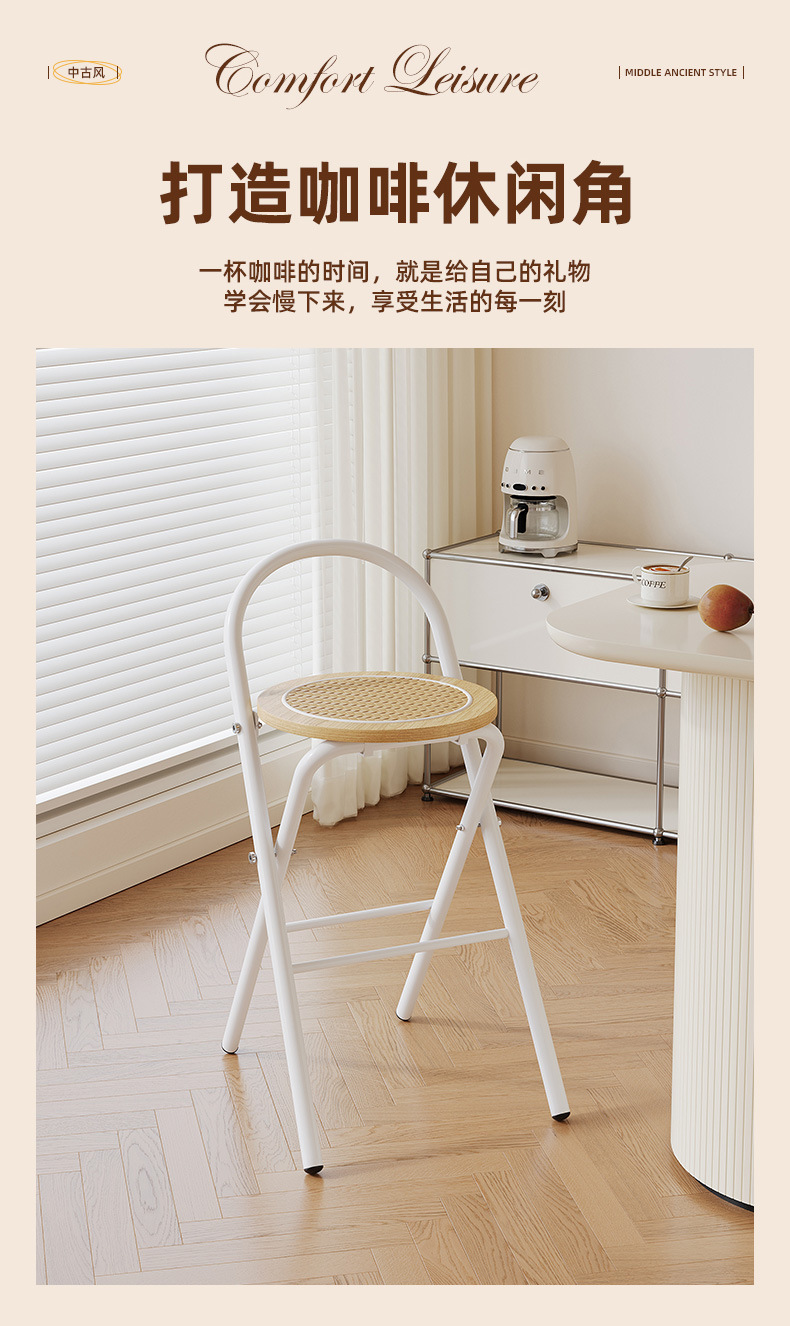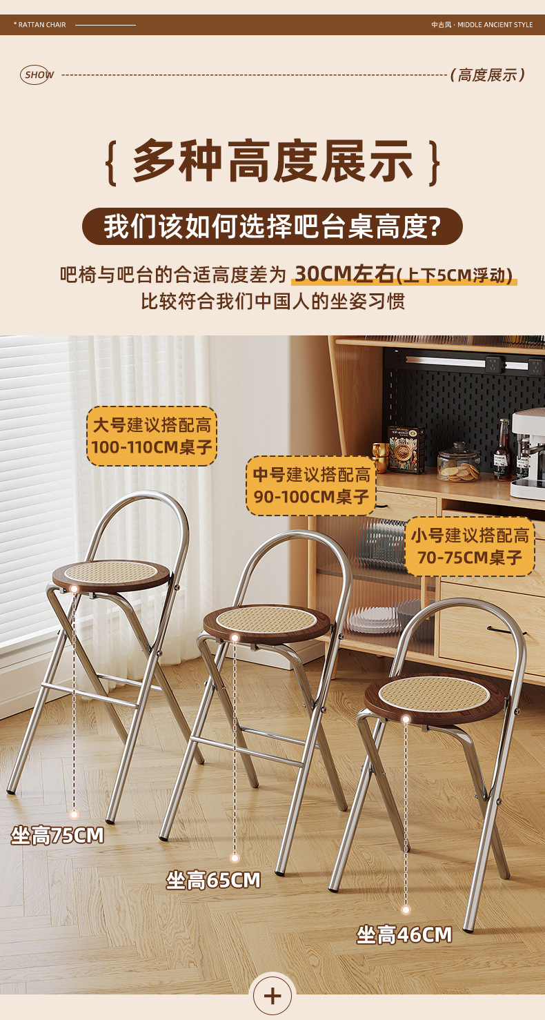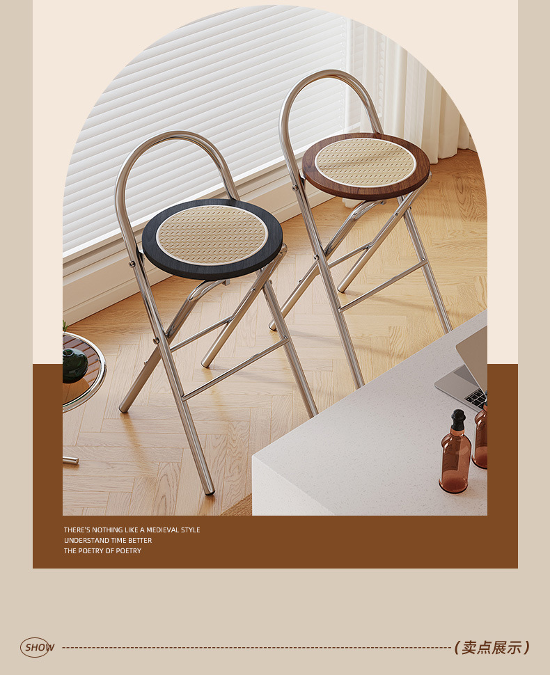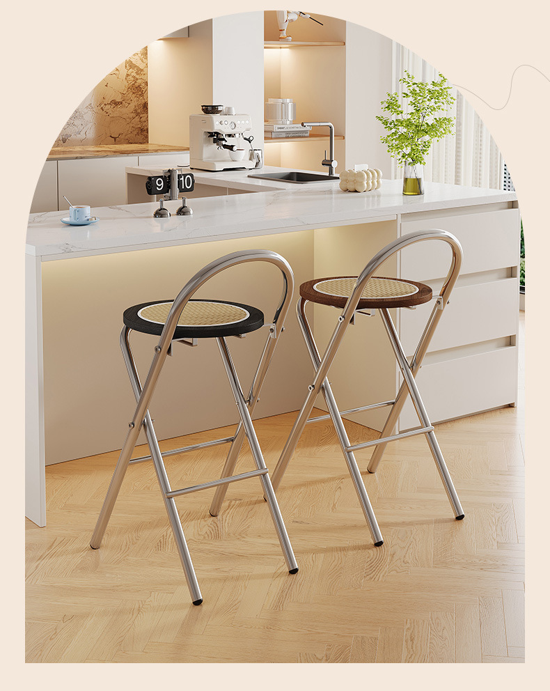 Hengyixuan Bar Chair, Home High Foot Chair, Office Bar Chair, Vine Weaving Dining Chair, Outdoor Lightweight Backrest Folding Chair