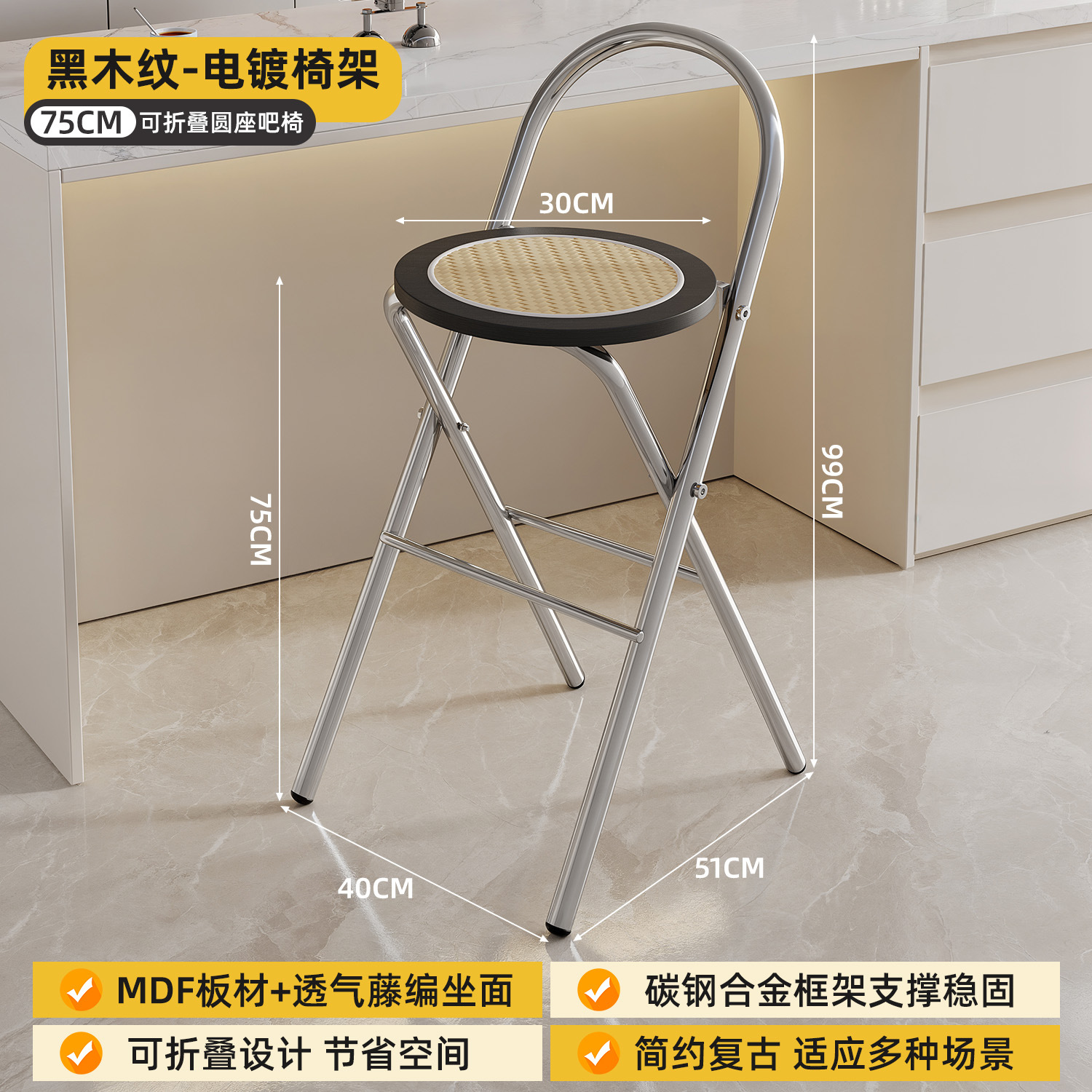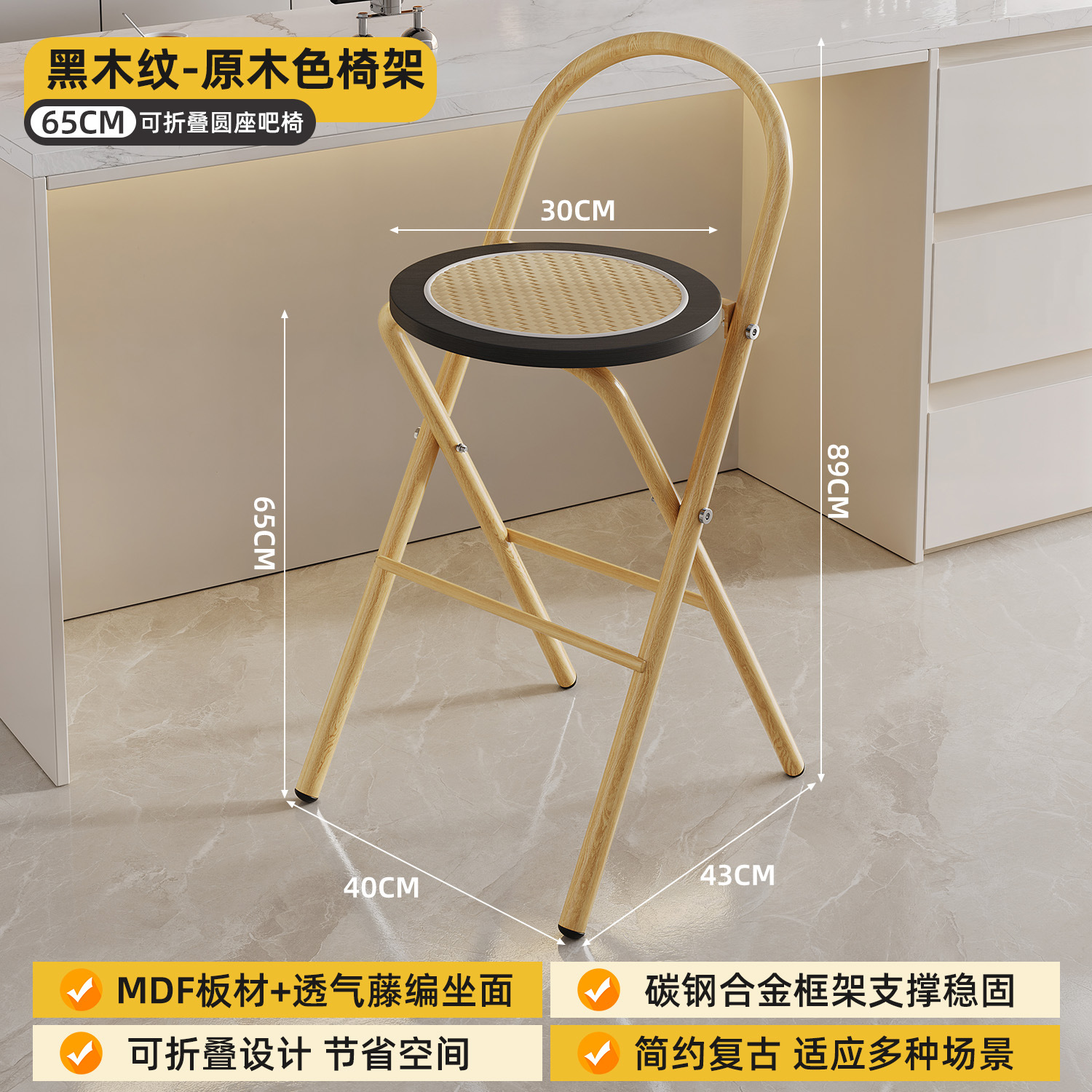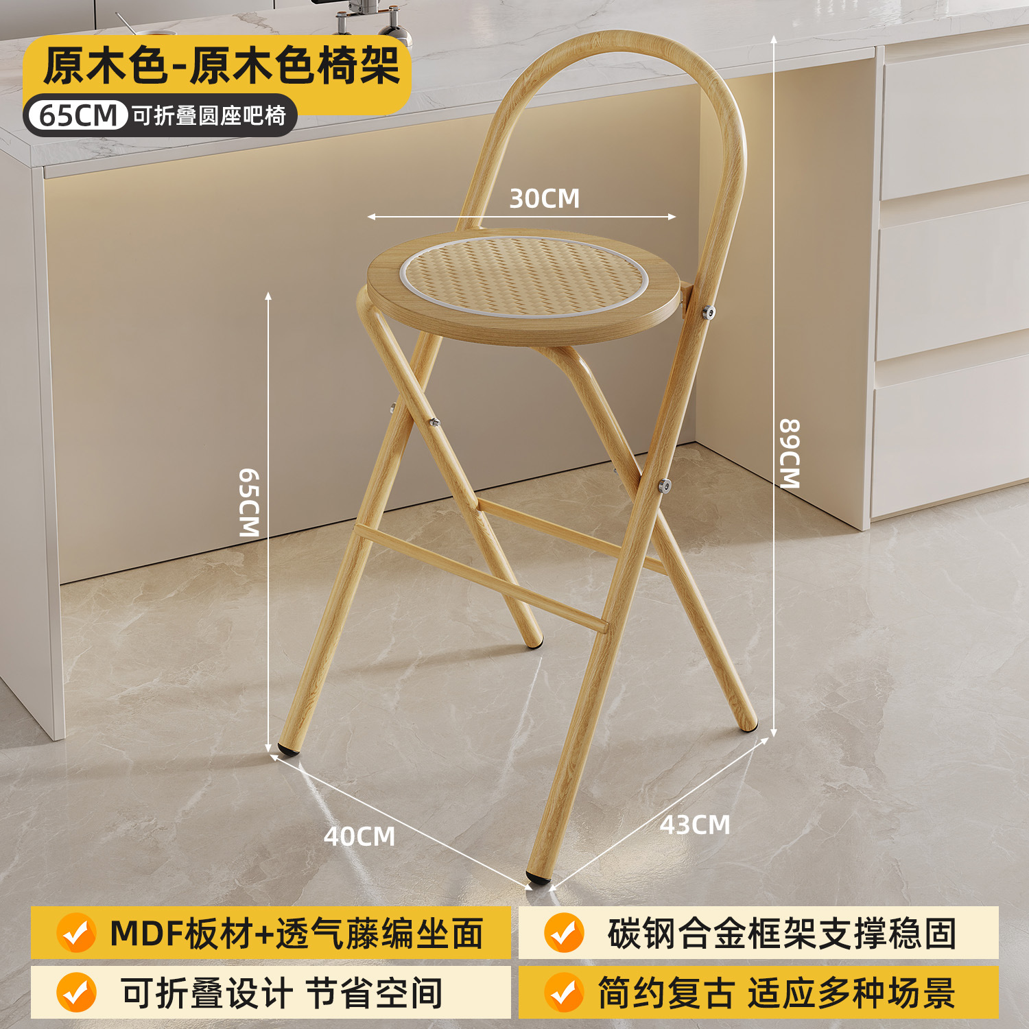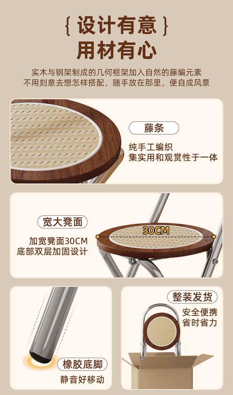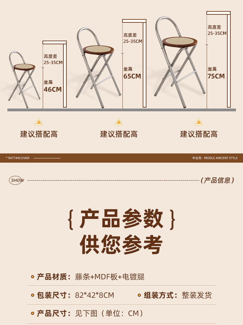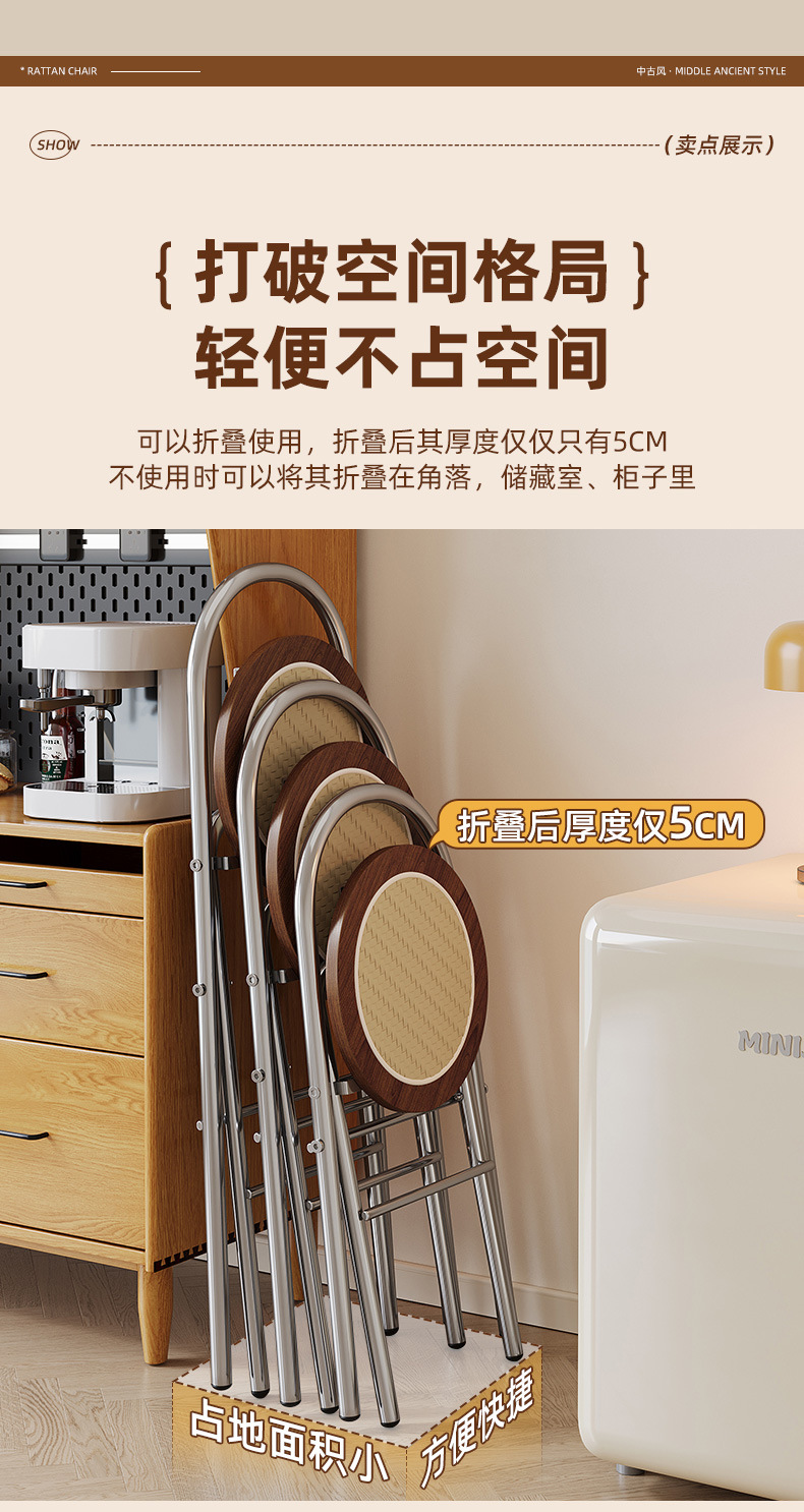 Hengyixuan Bar Chair, Home High Foot Chair, Office Bar Chair, Vine Weaving Dining Chair, Outdoor Lightweight Backrest Folding Chair