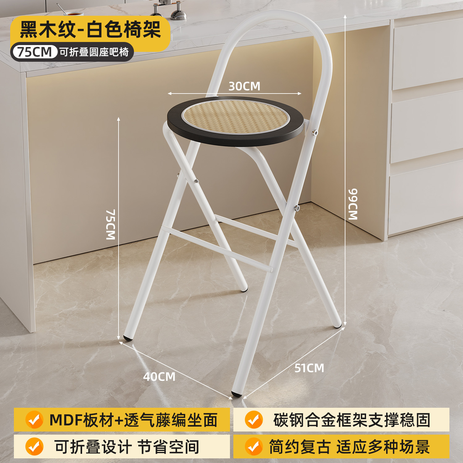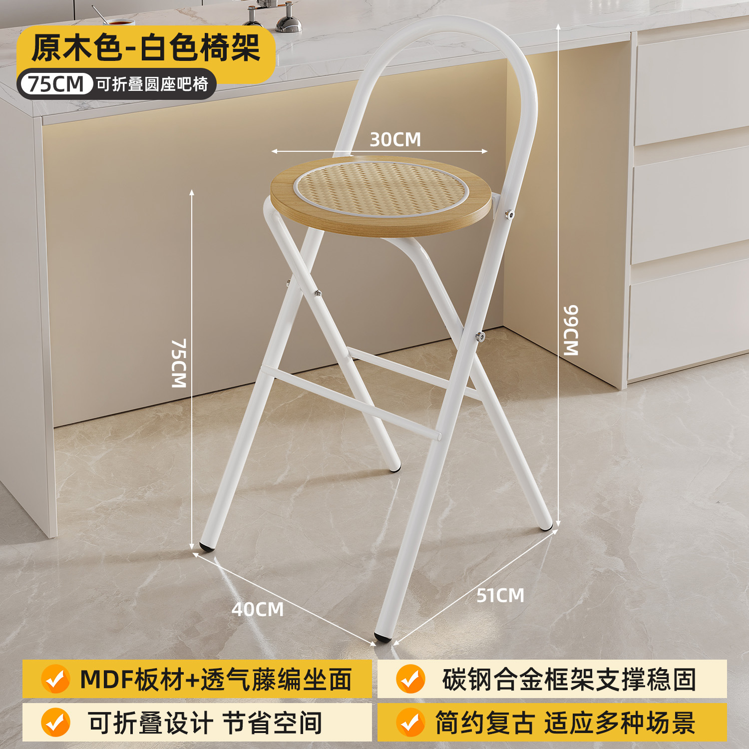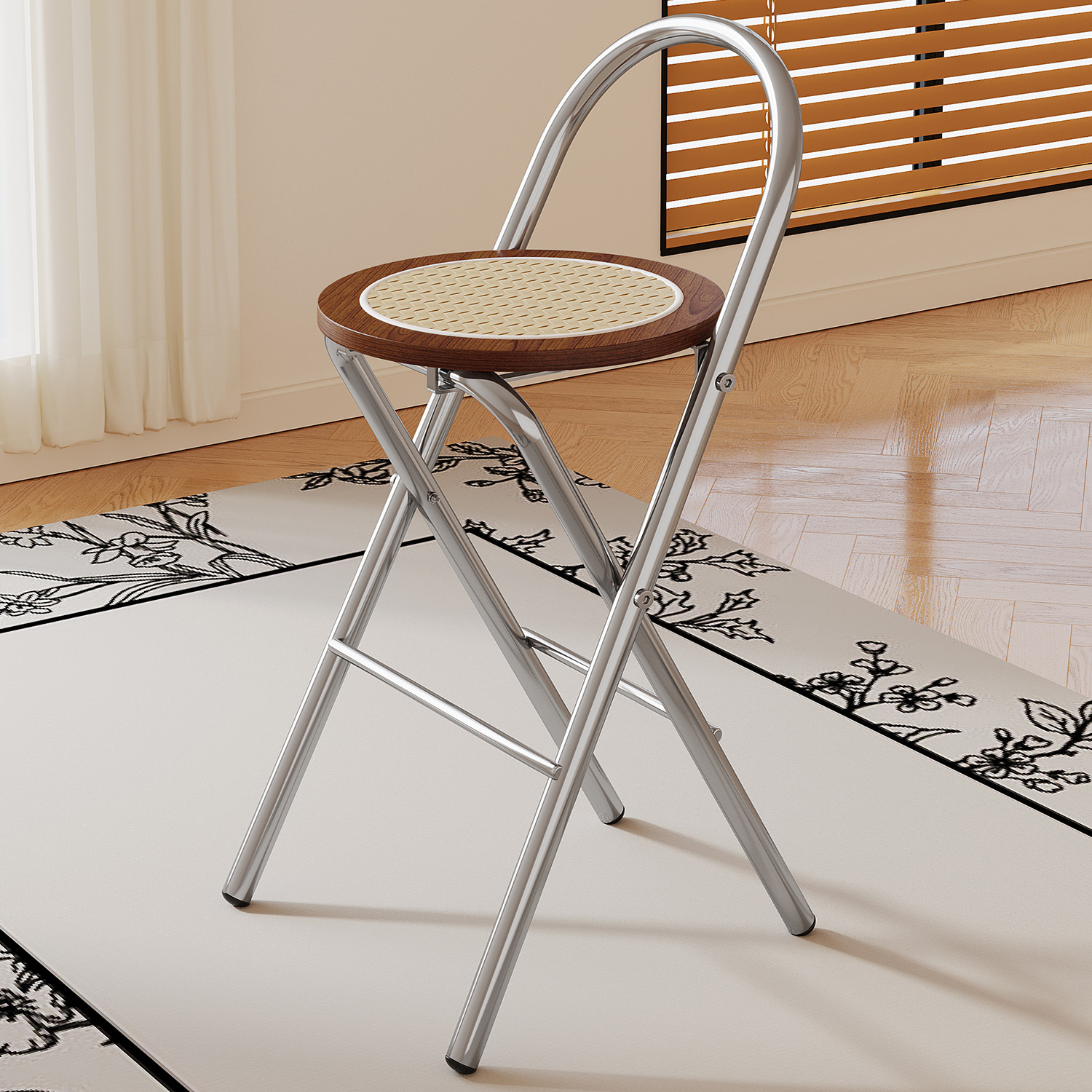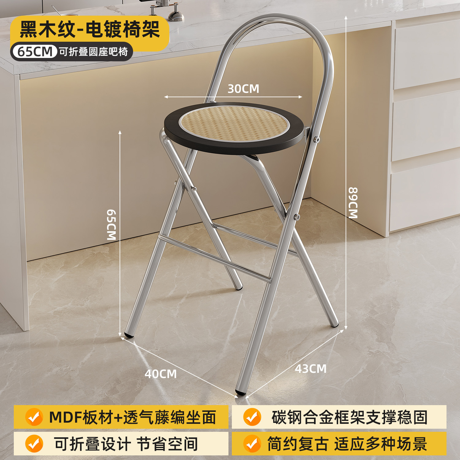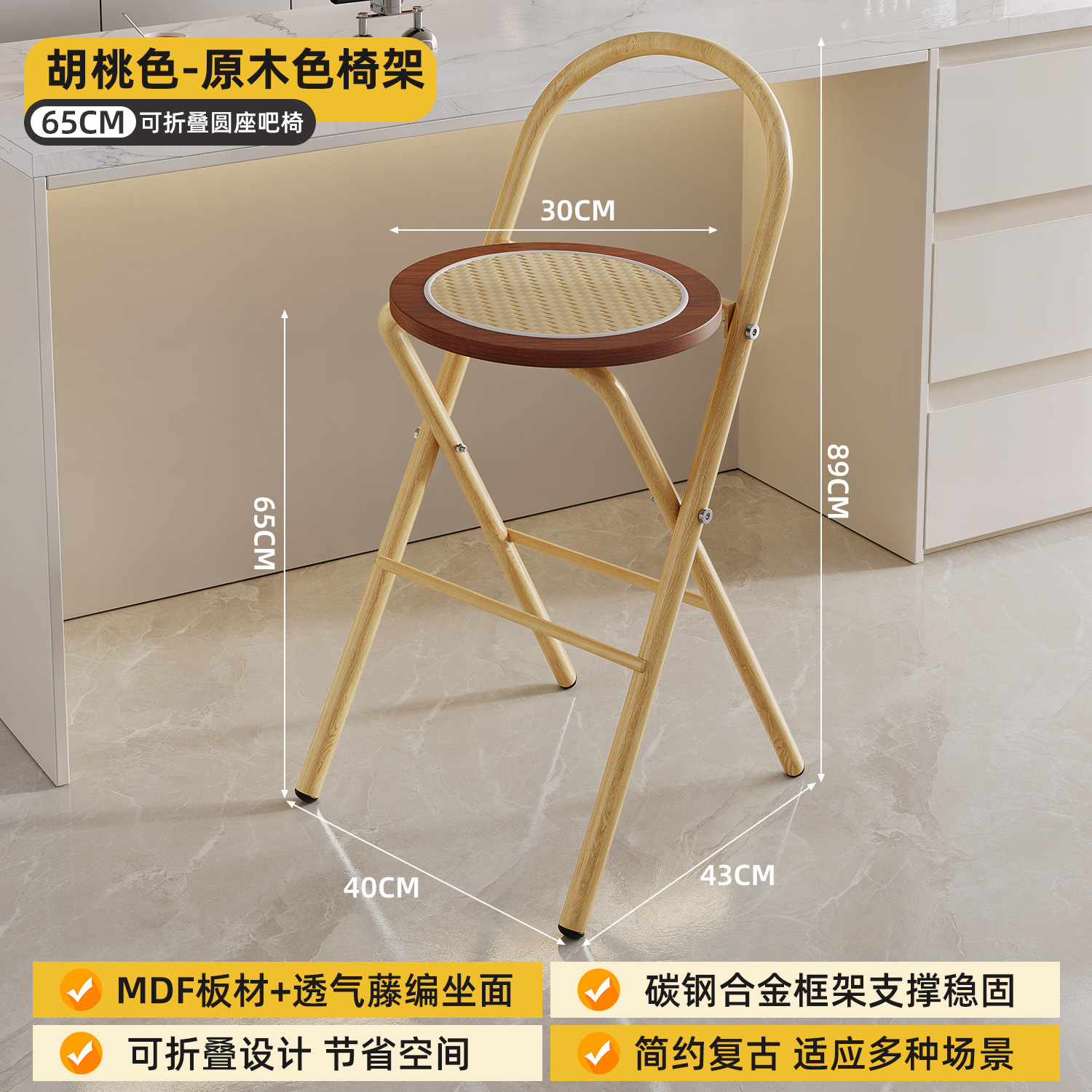 Hengyixuan Bar Chair, Home High Foot Chair, Office Bar Chair, Vine Weaving Dining Chair, Outdoor Lightweight Backrest Folding Chair