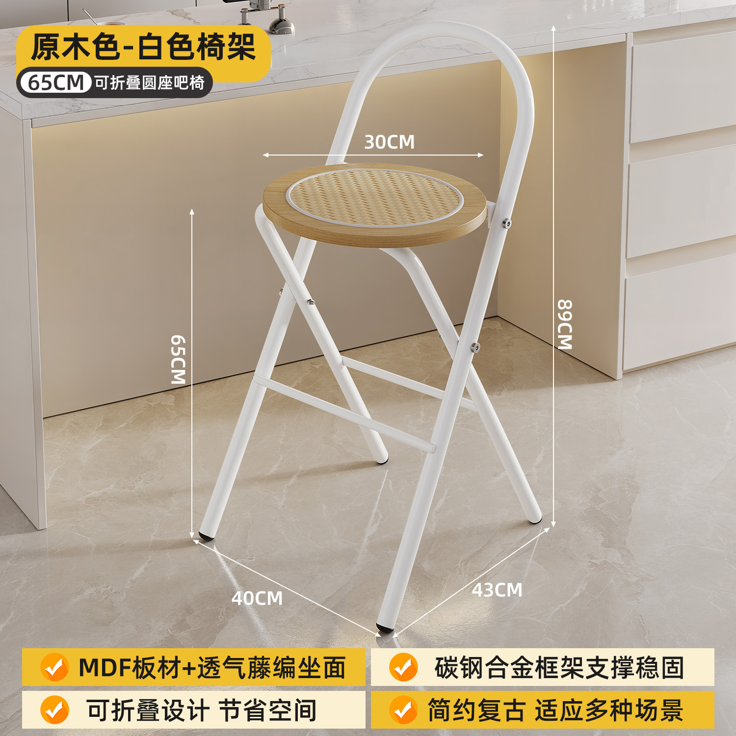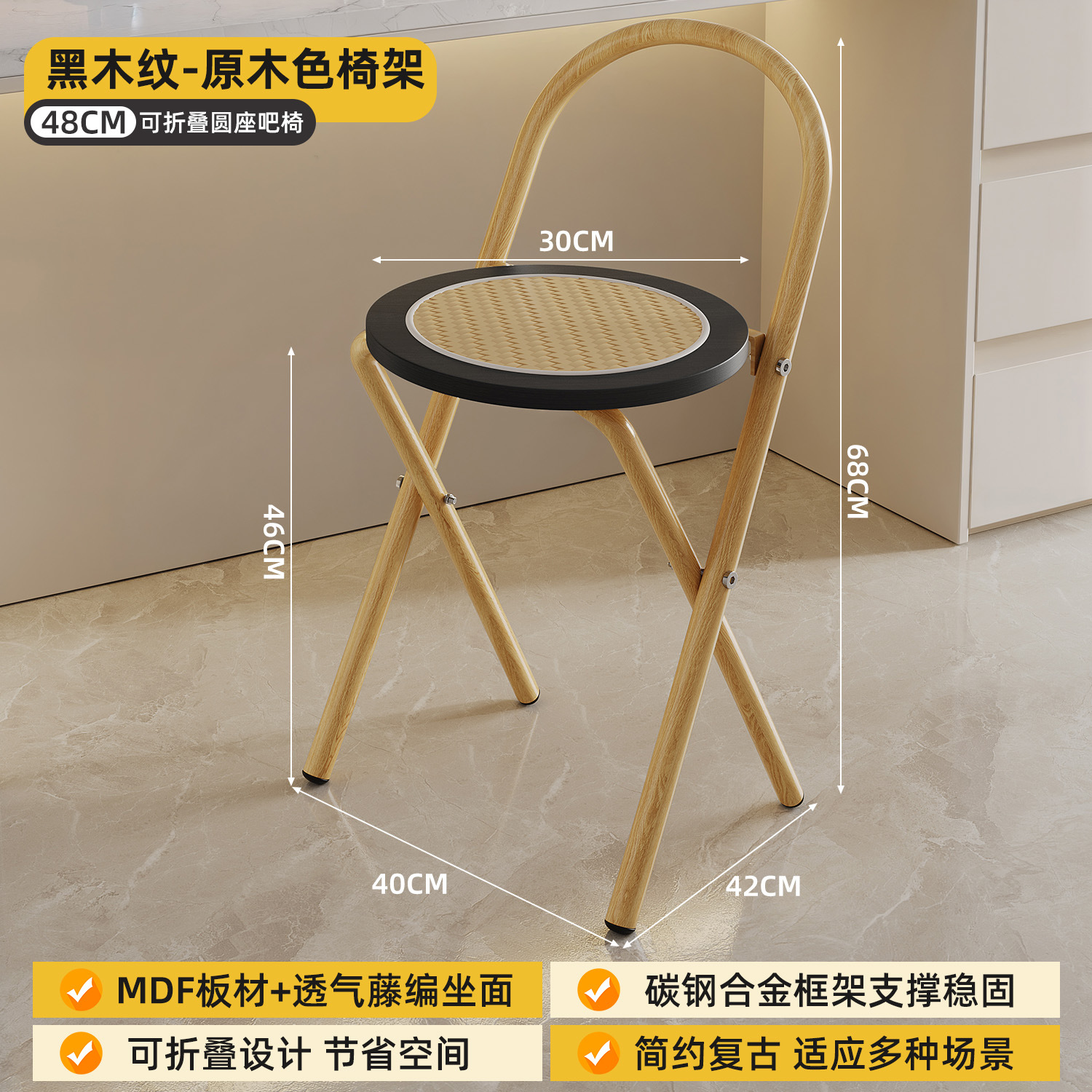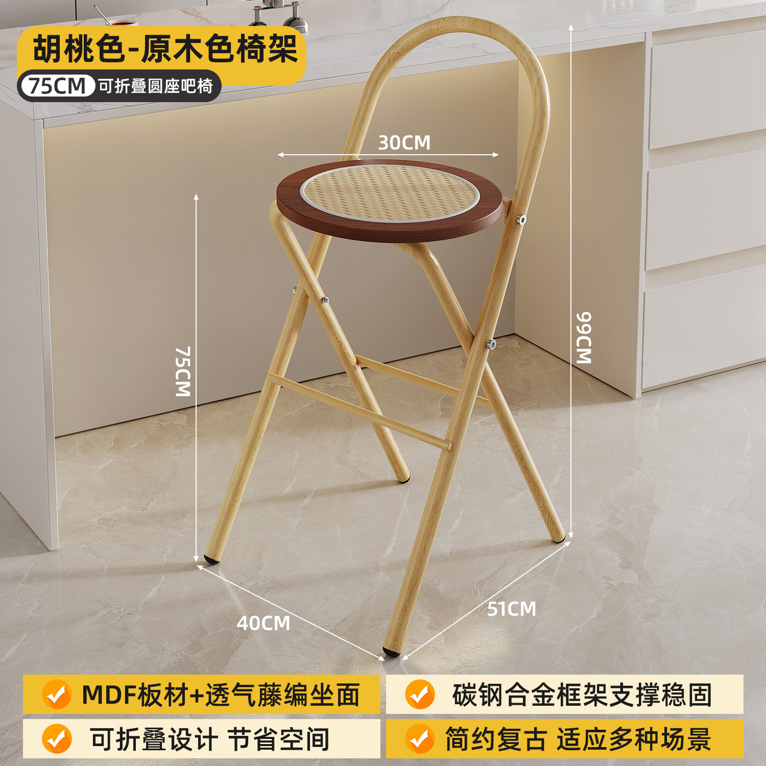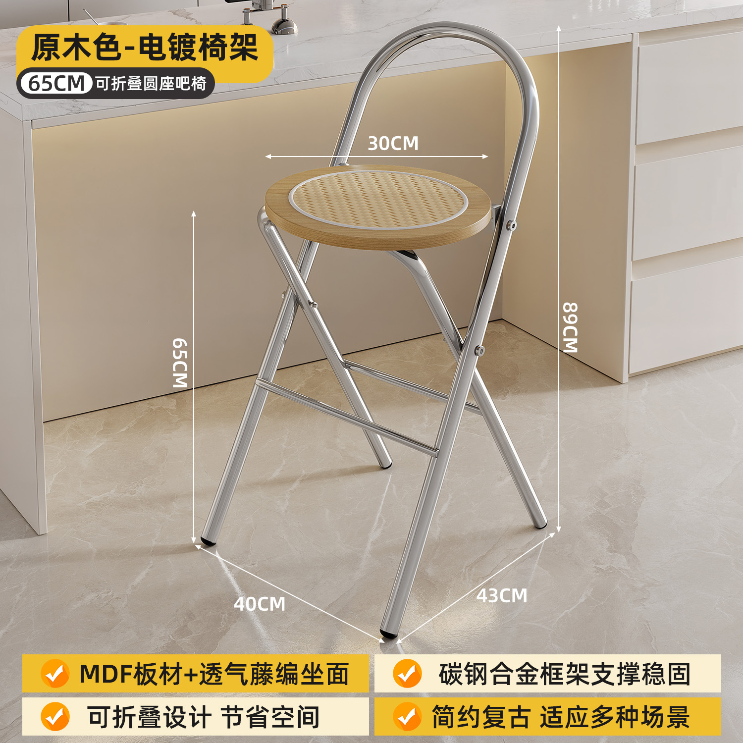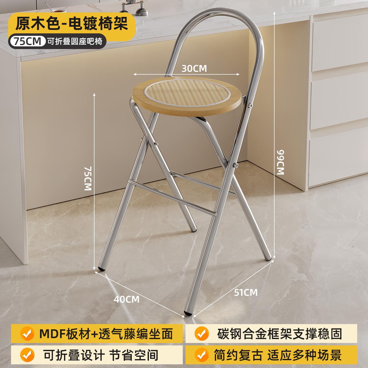 Hengyixuan Bar Chair, Home High Foot Chair, Office Bar Chair, Vine Weaving Dining Chair, Outdoor Lightweight Backrest Folding Chair