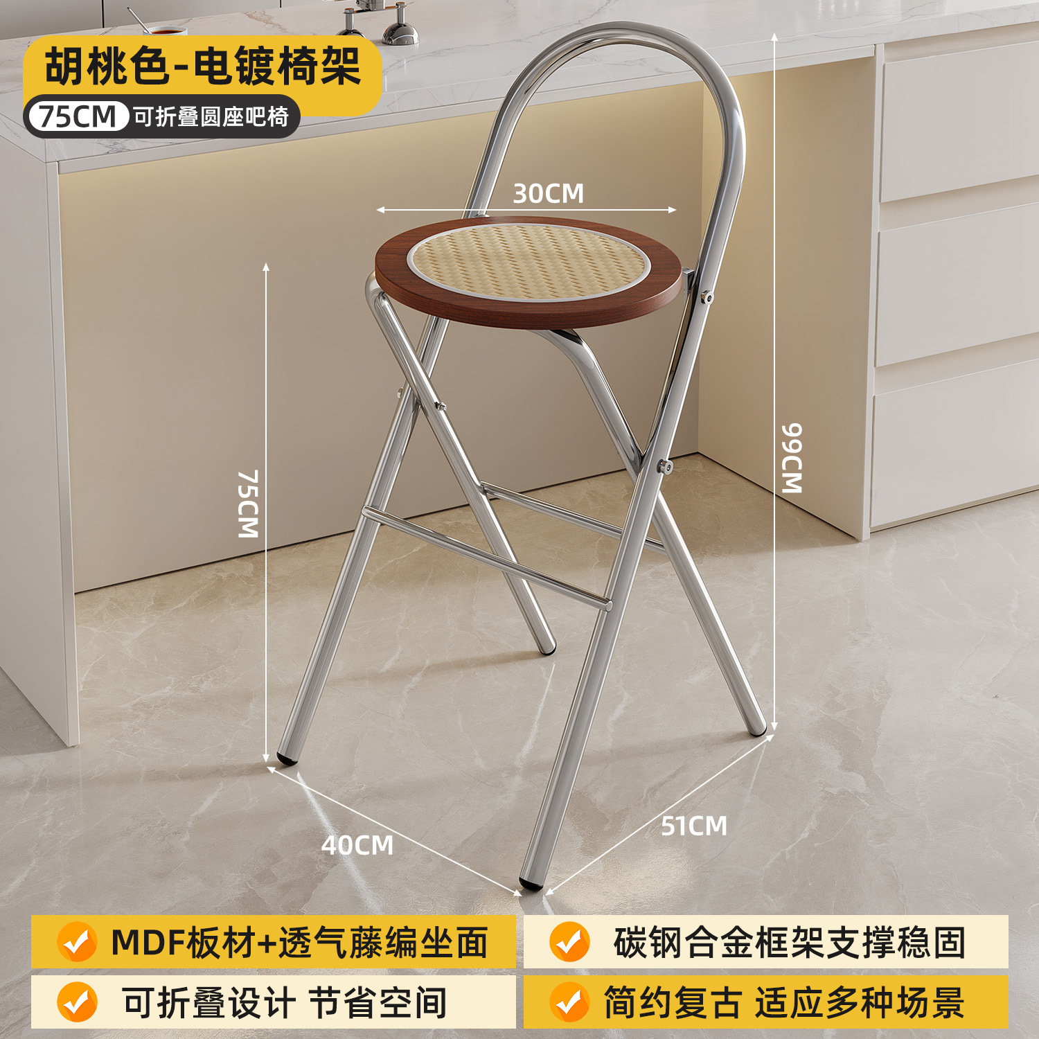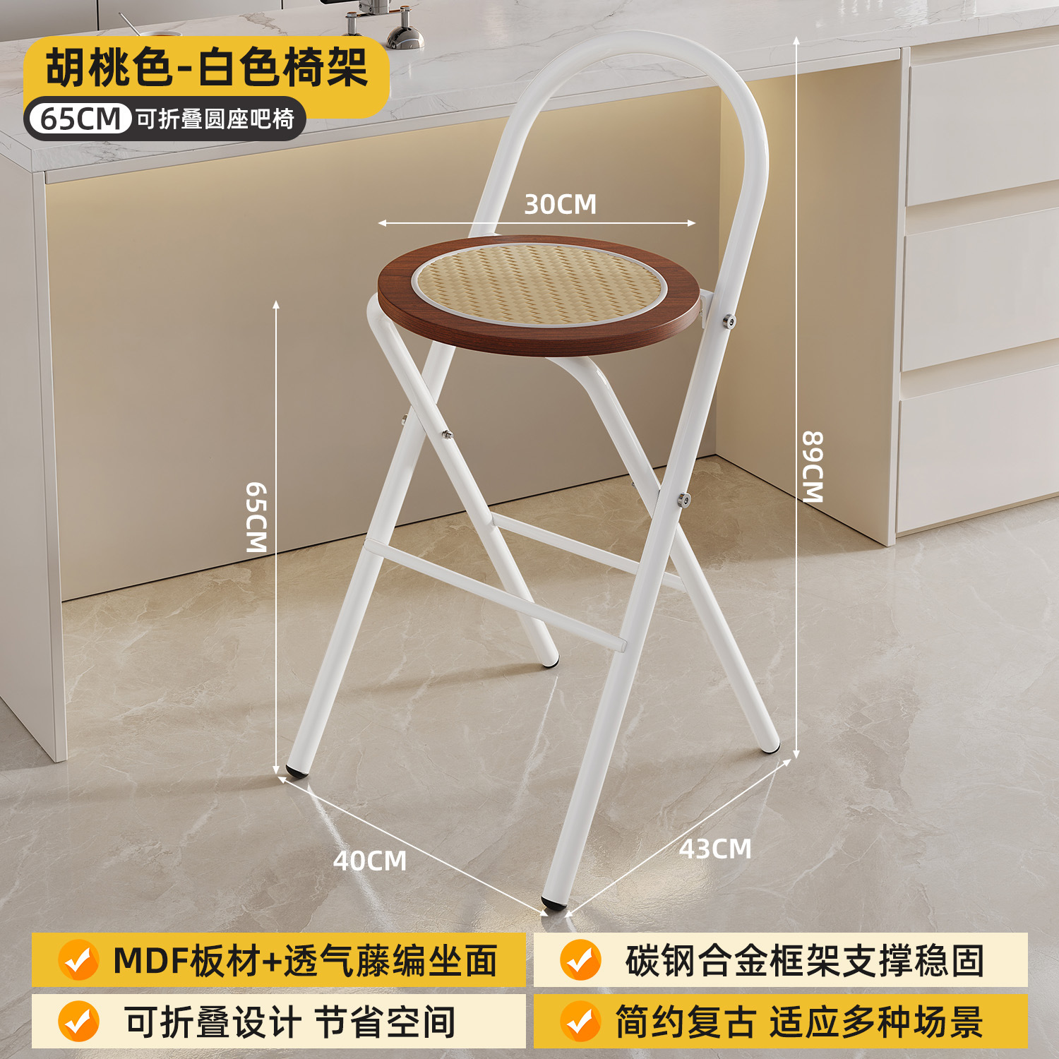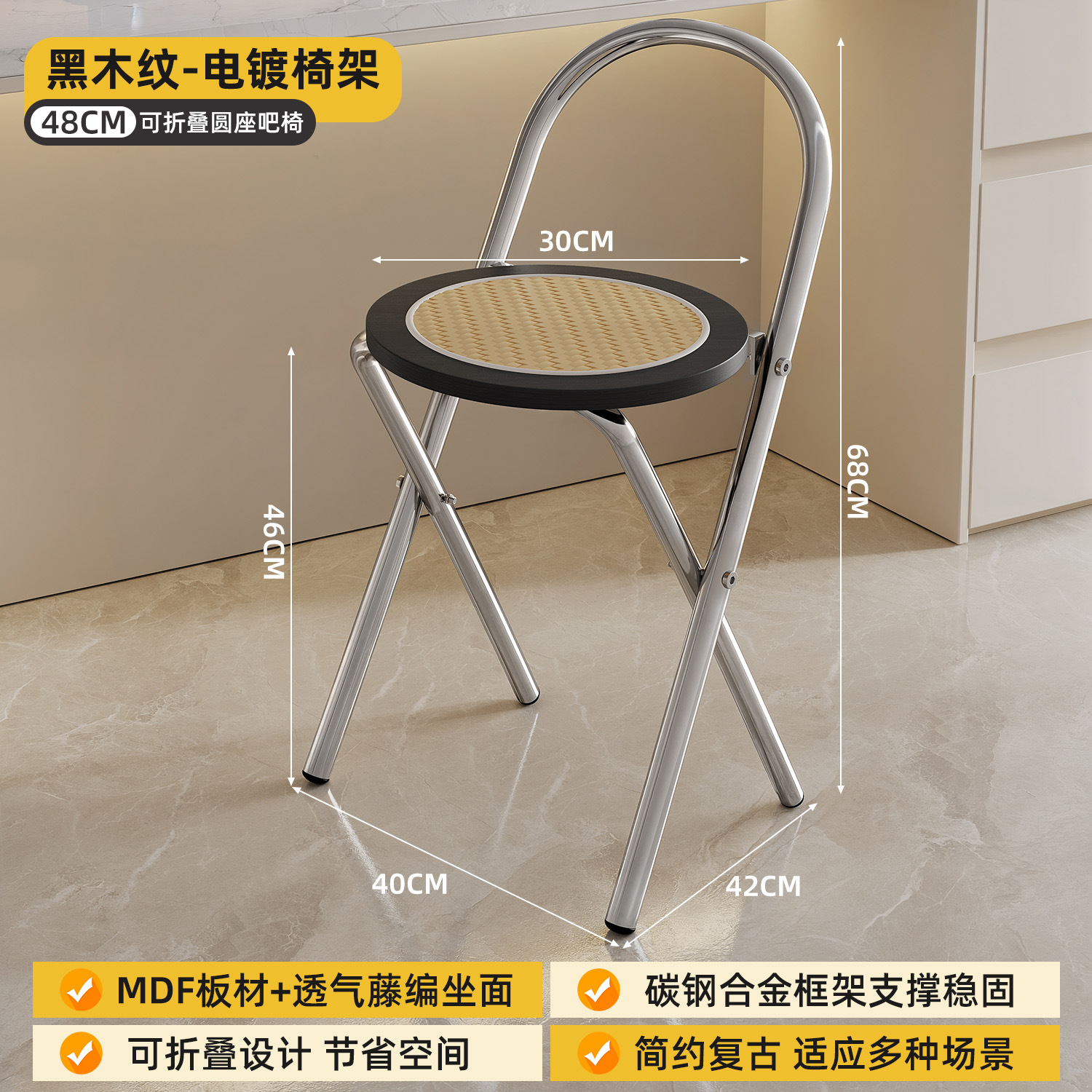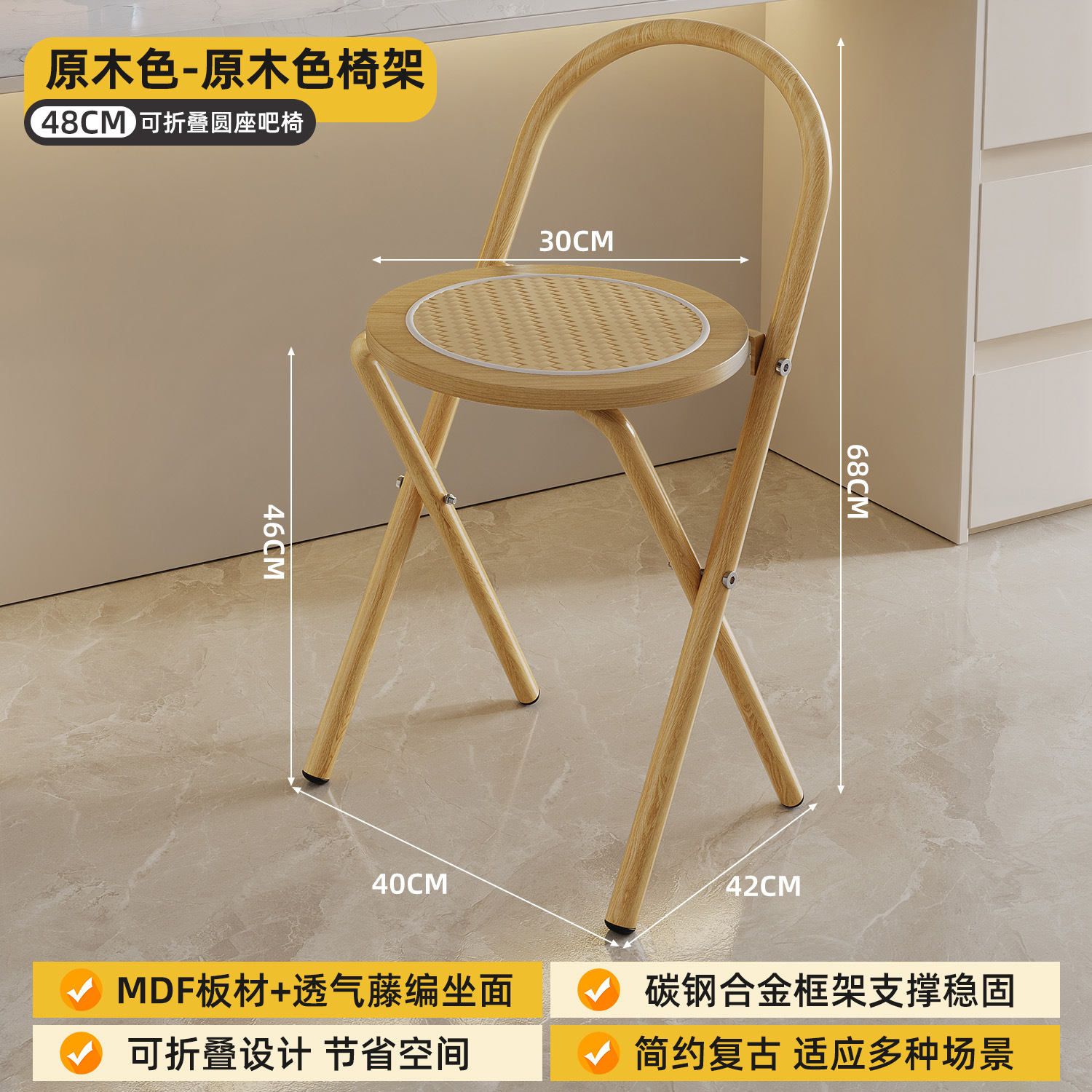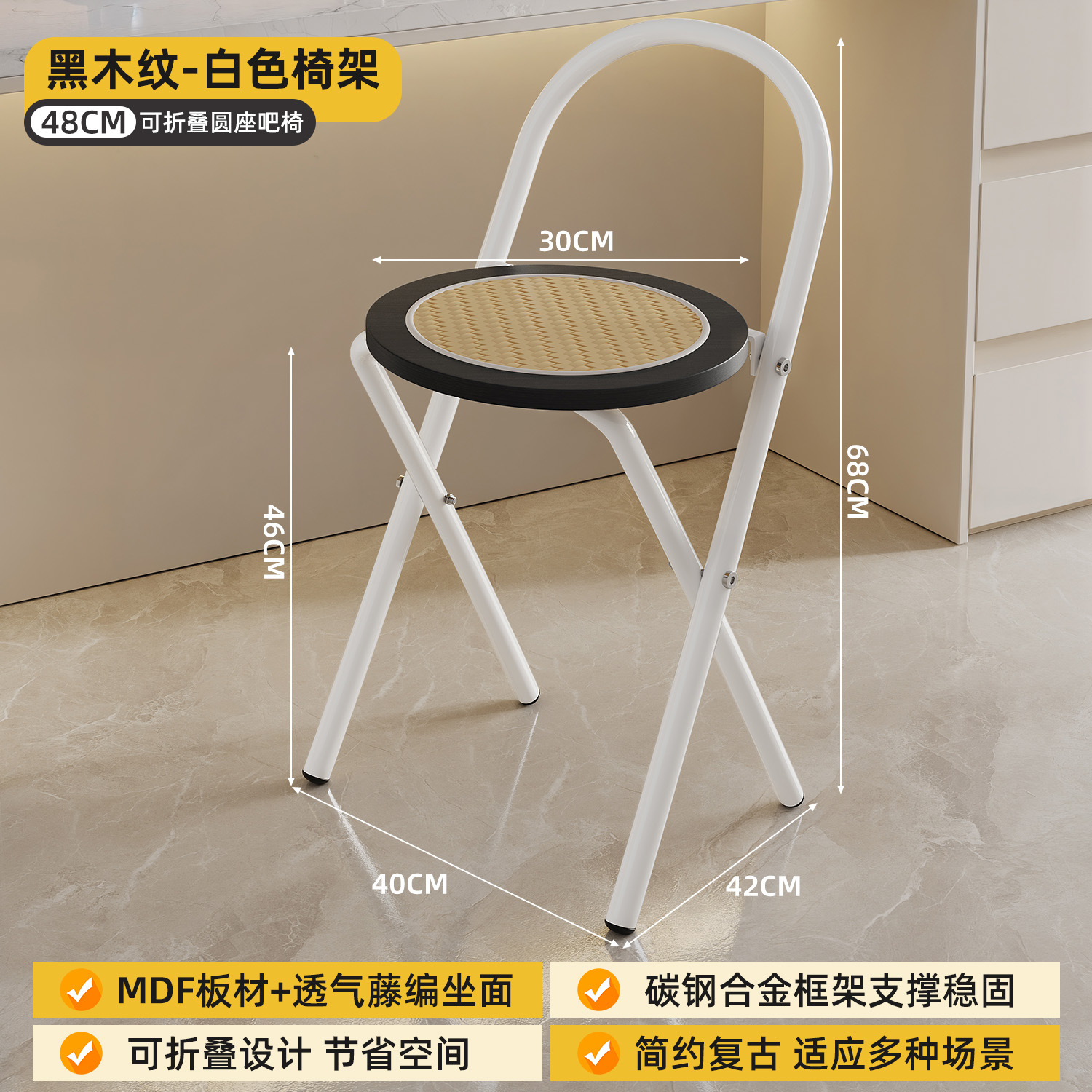 Hengyixuan Bar Chair, Home High Foot Chair, Office Bar Chair, Vine Weaving Dining Chair, Outdoor Lightweight Backrest Folding Chair