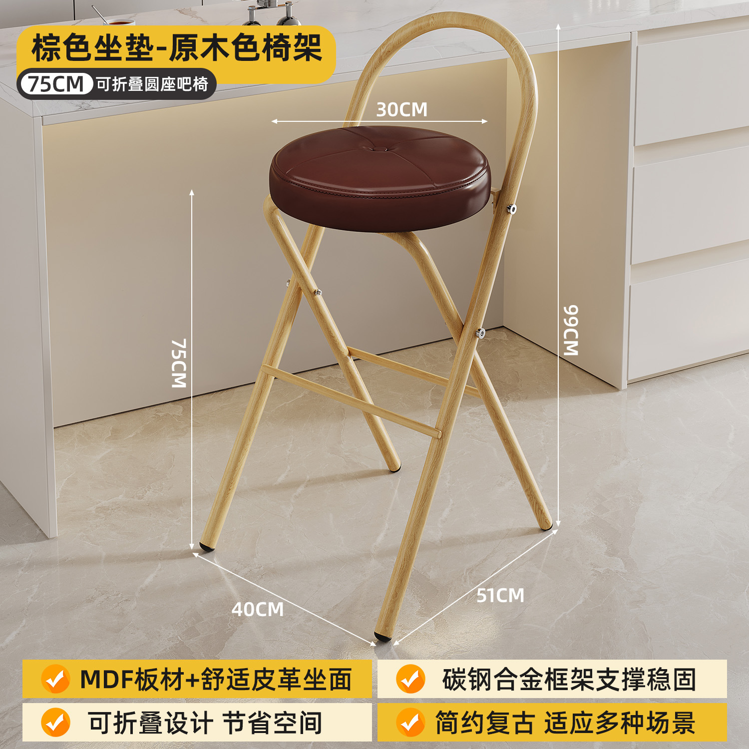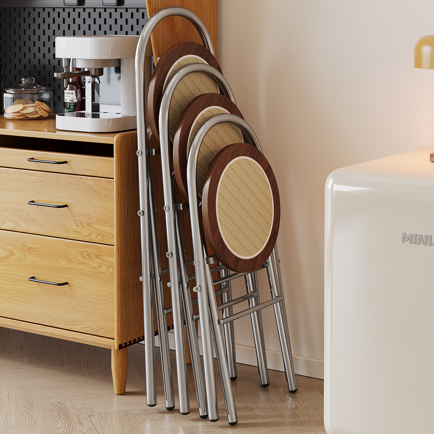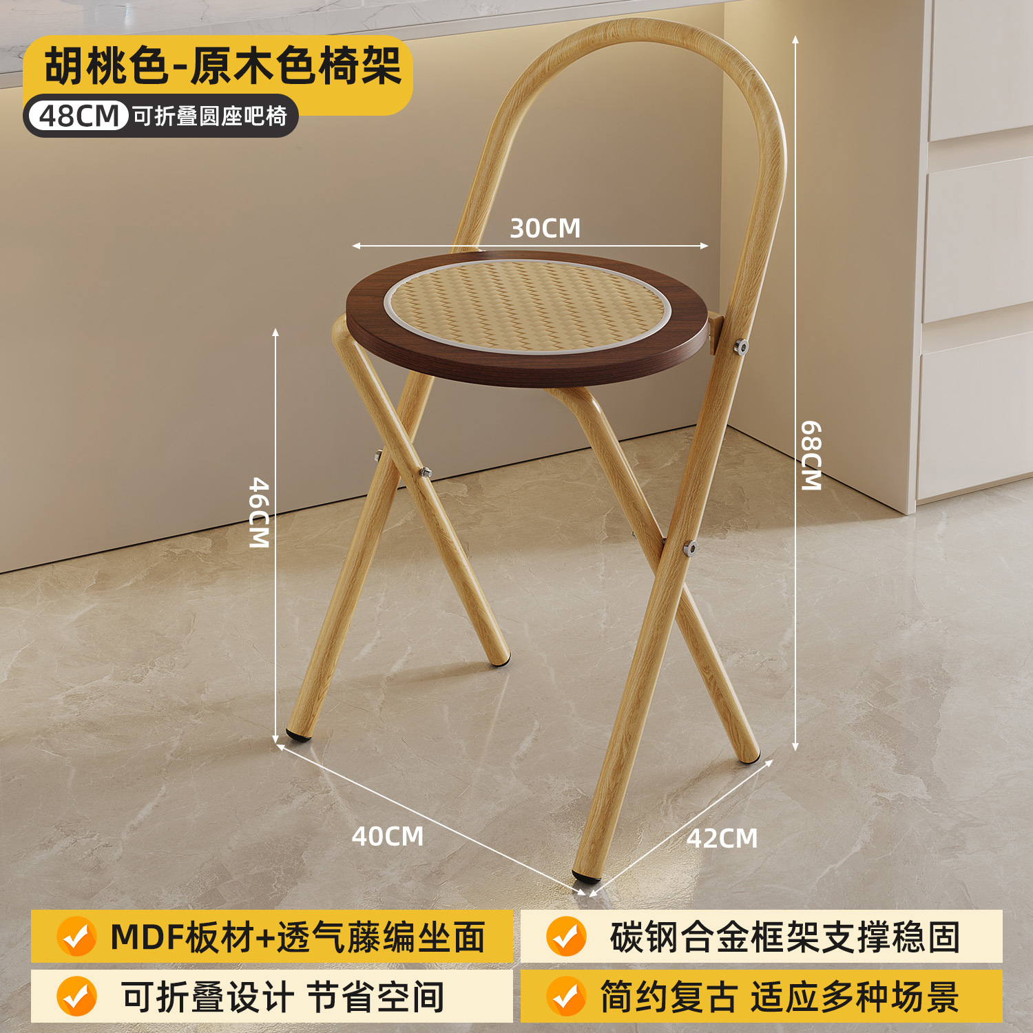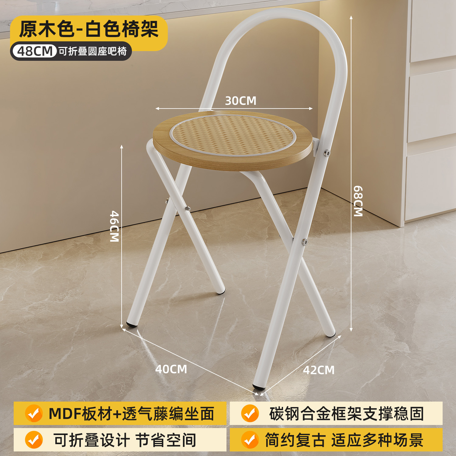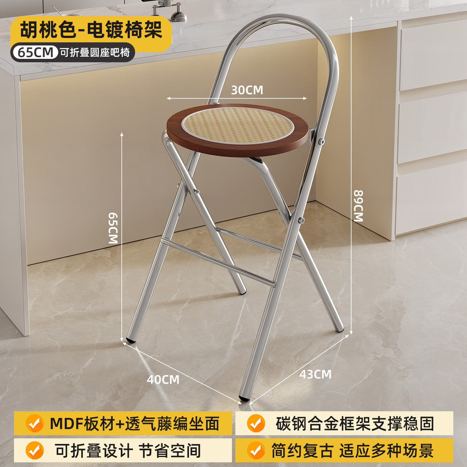 Hengyixuan Bar Chair, Home High Foot Chair, Office Bar Chair, Vine Weaving Dining Chair, Outdoor Lightweight Backrest Folding Chair