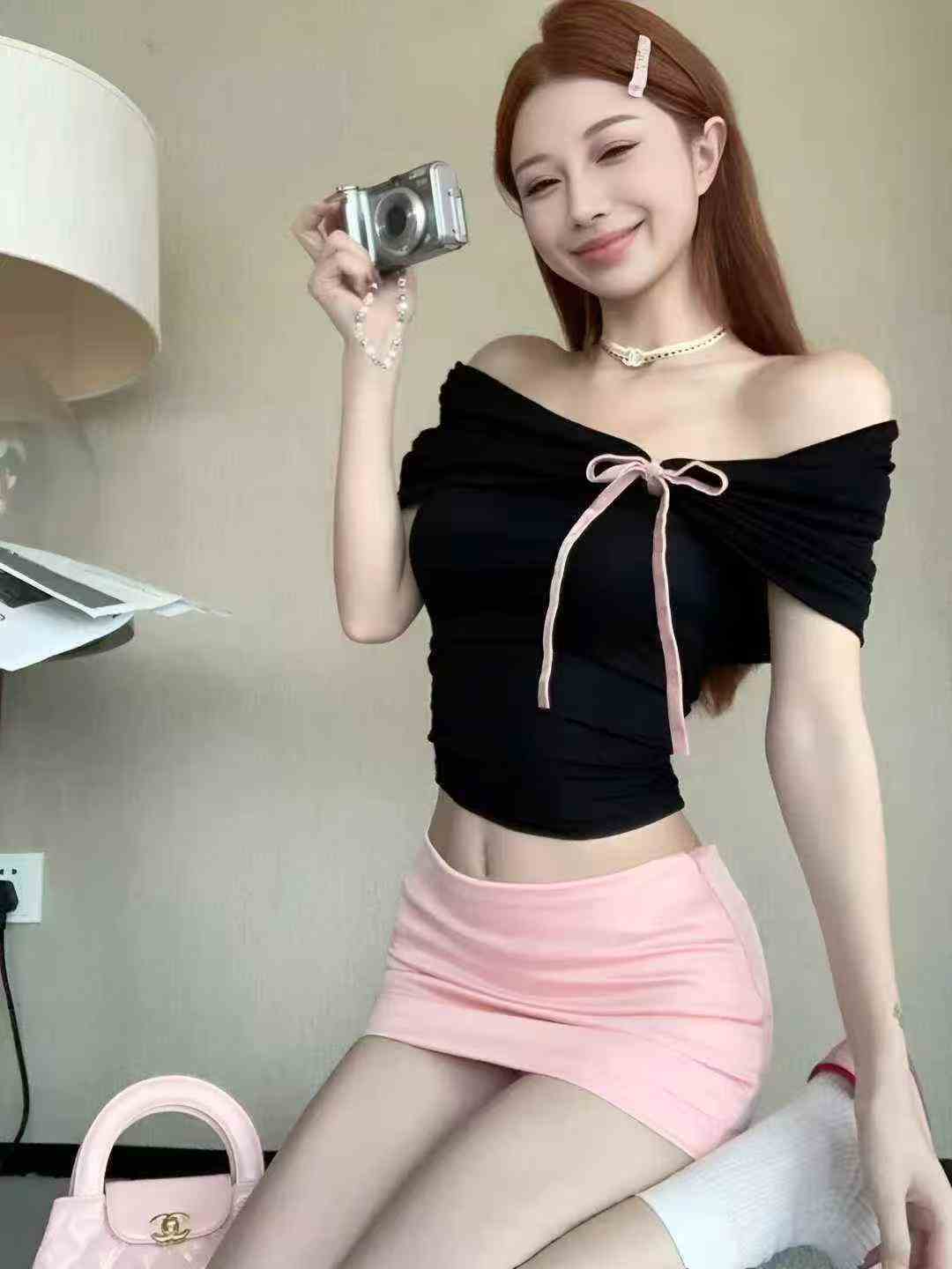 Сладкая хлопчатобумажная горячая девушка воротник рубашка 599 шт. 7.8 ткань мягкая и эластичная, бант с привязкой, дизайн складок, код 1 - 4 ярда (S - XL), отдельная упаковка