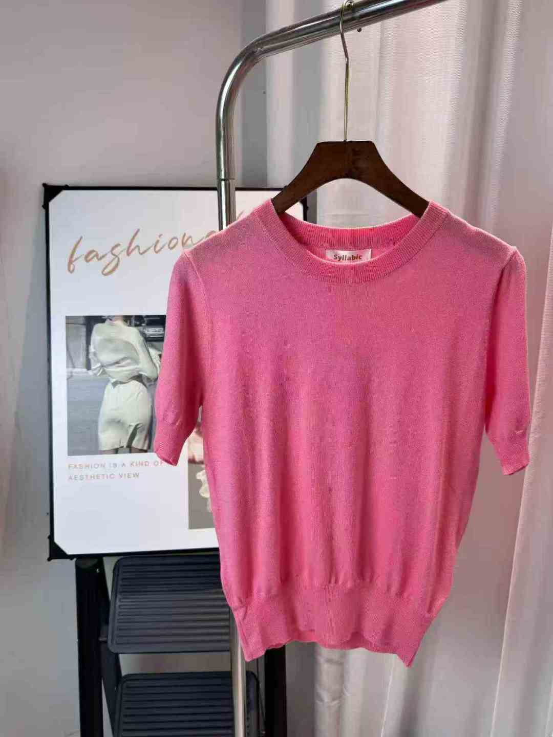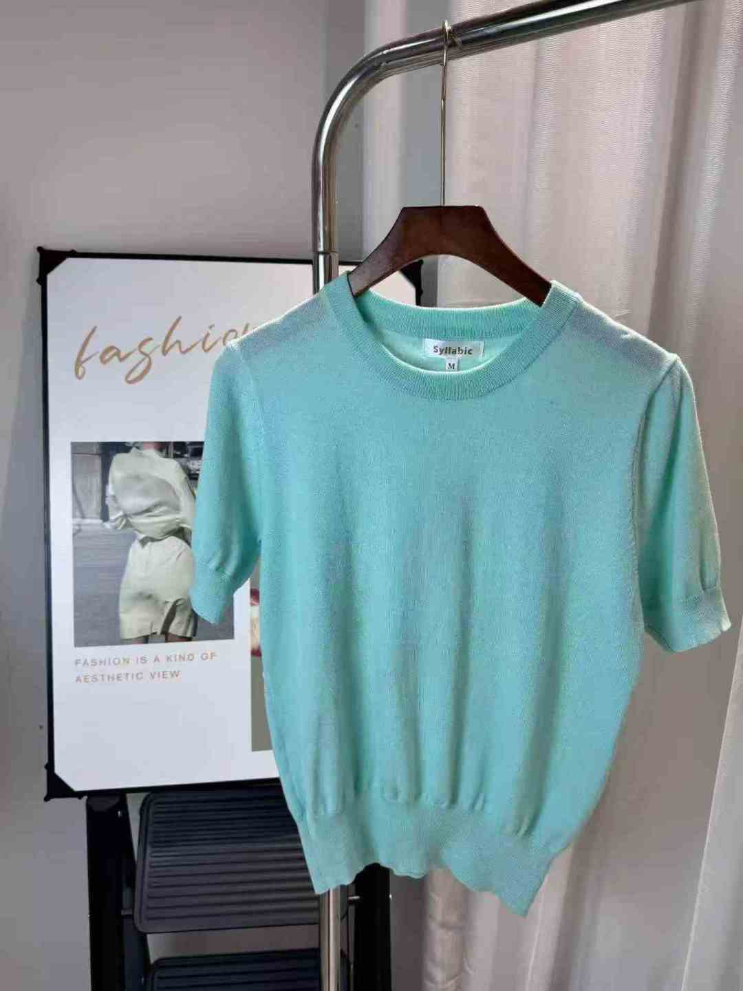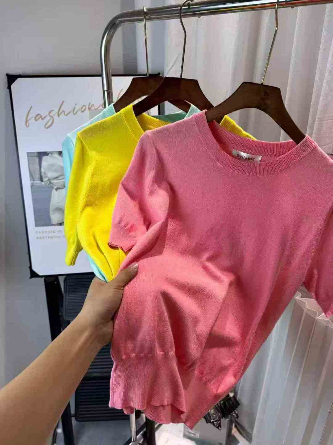[Пиво] Высокий круглый воротник Короткий пиджак с ледяной нитью Женский летний новый ремонт короткорукавная трикотажная футболка, номер SM, отдельная упаковка с подвеской, 94 шт., полная очистка 5.8