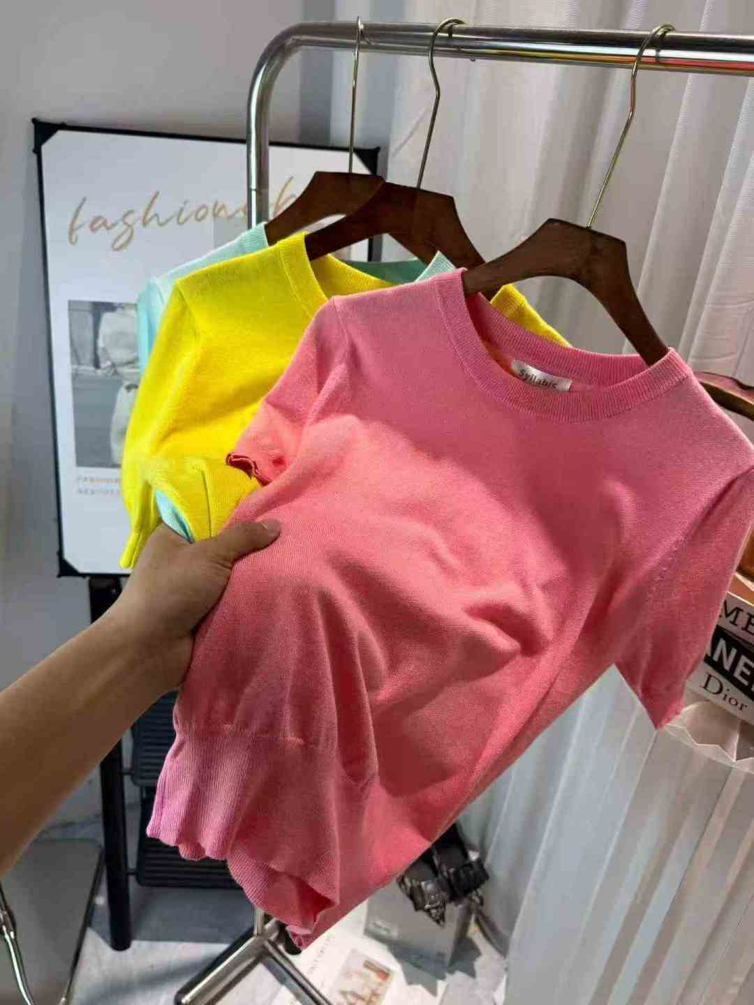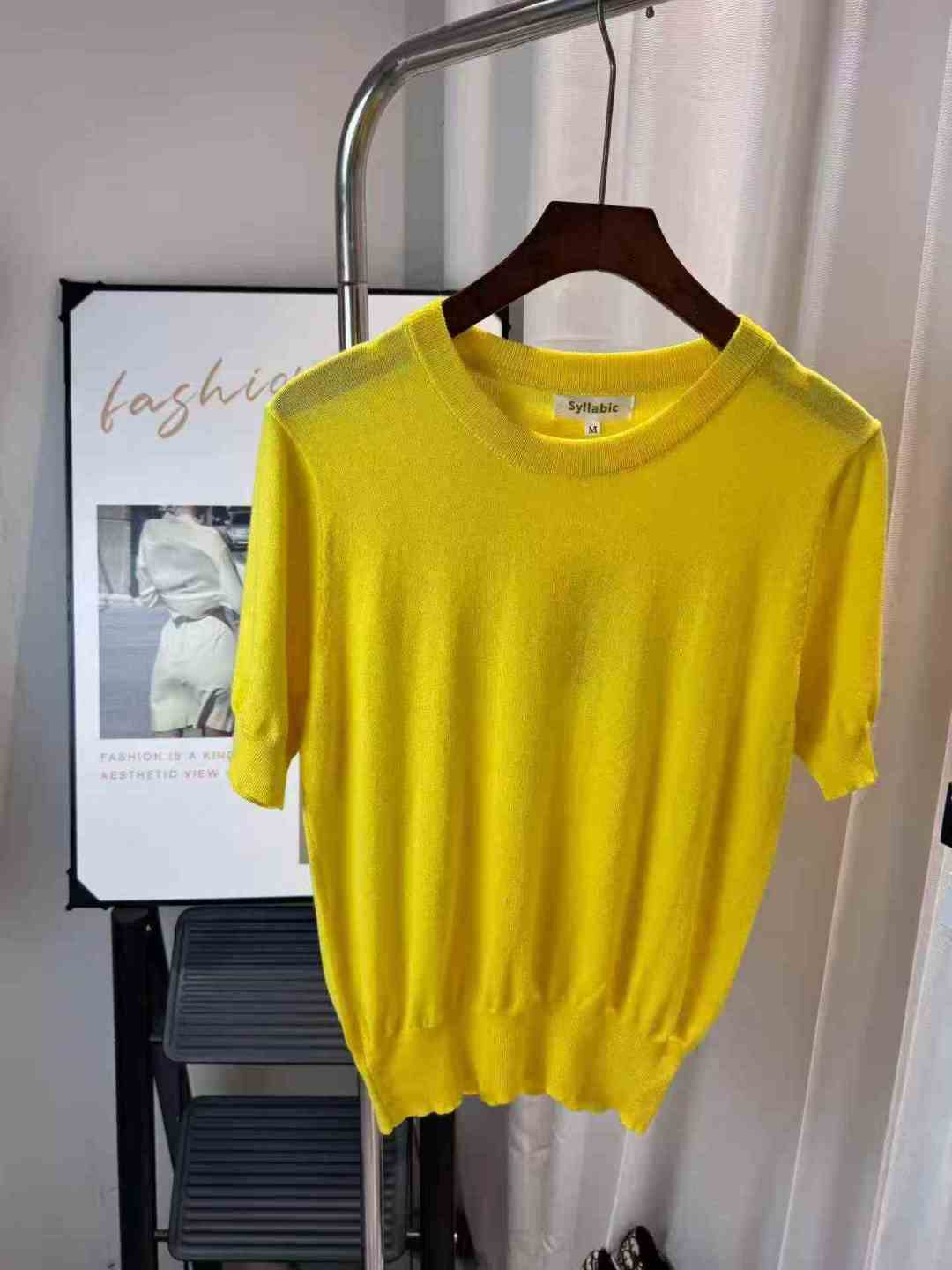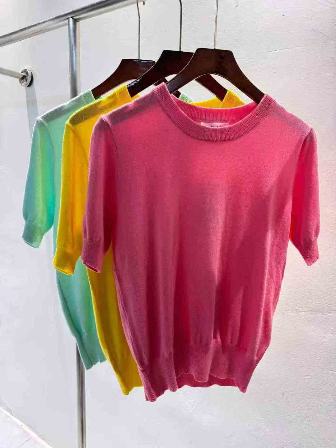 [Пиво] Высокий круглый воротник Короткий пиджак с ледяной нитью Женский летний новый ремонт короткорукавная трикотажная футболка, номер SM, отдельная упаковка с подвеской, 94 шт., полная очистка 5.8