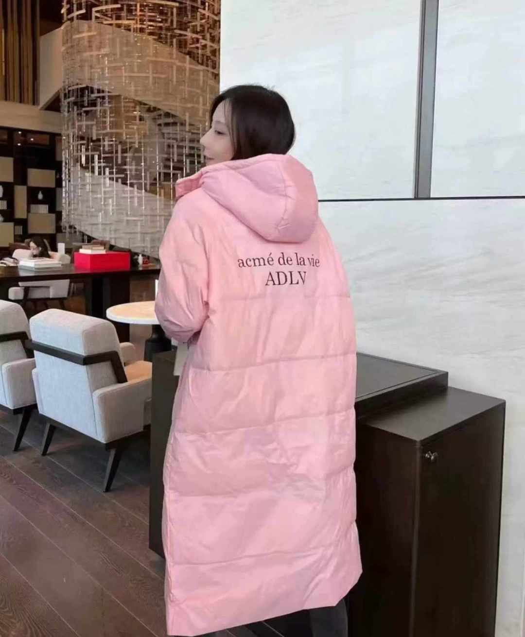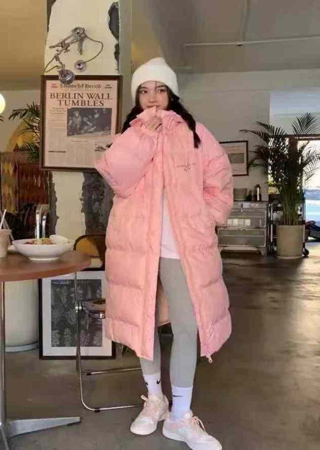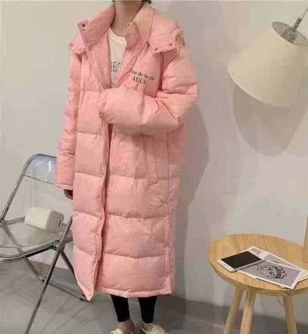 Корейская версия средней и длинной свободной версии с капюшоном пуховый хлопчатобумажный костюм 320 штук 38,8, двухголовая молния, с карманом, рукой, узор принт, шляпа может быть разобрана, средний код, 90 - 150 кг можно носить, независимая упаковка