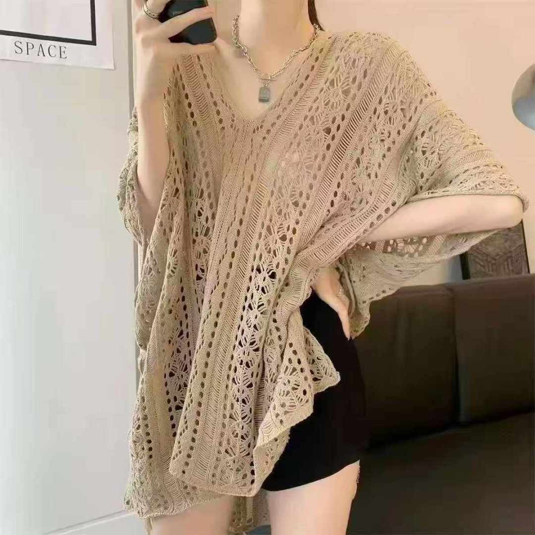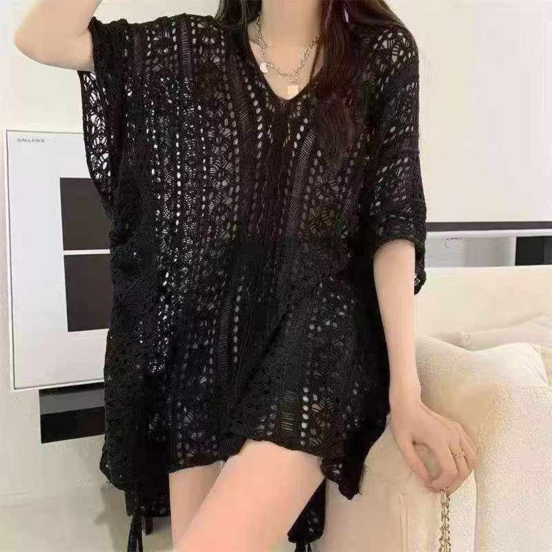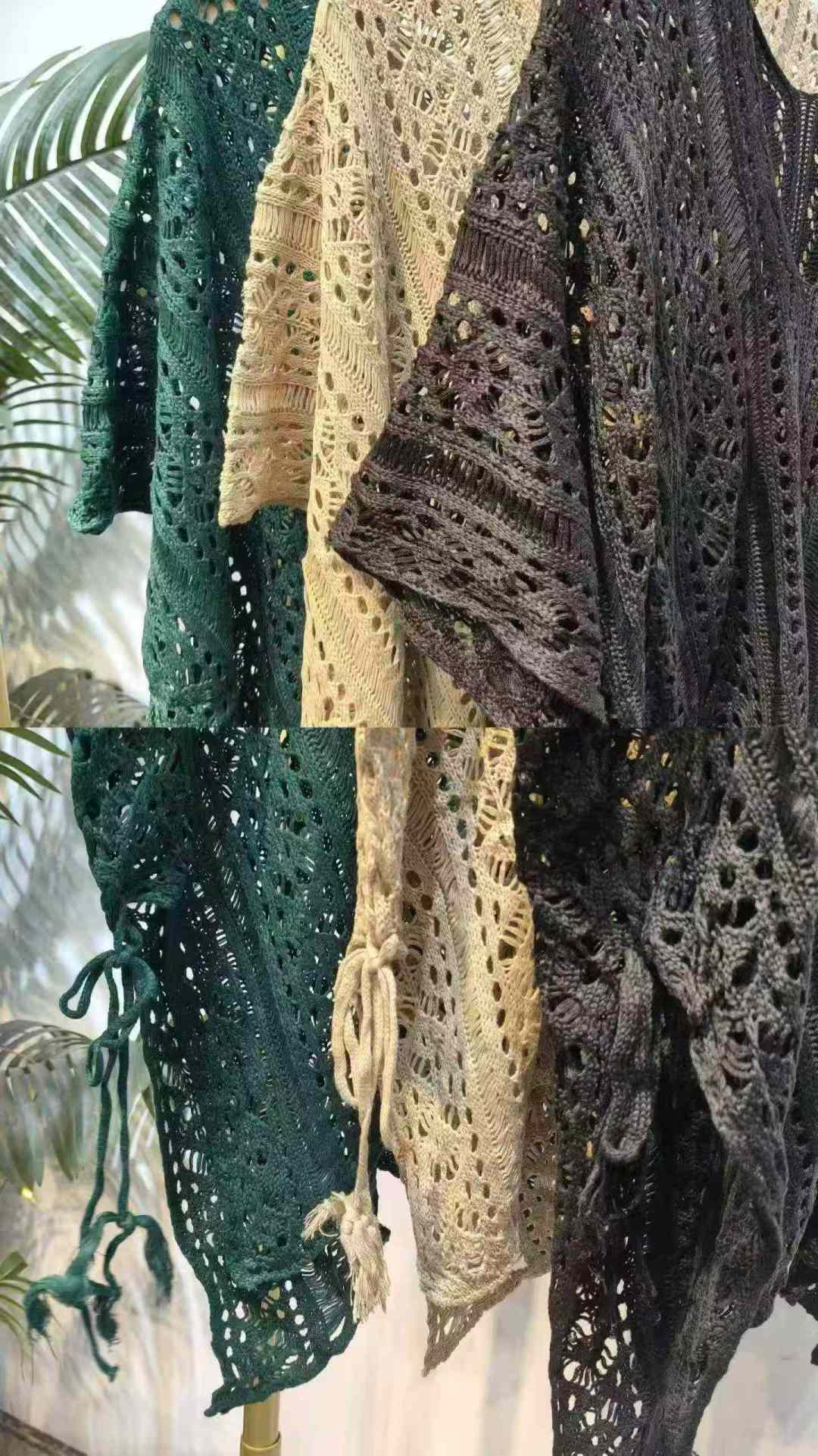 Полная очистка 9.948 « французского трикотажа» ленивый отдых отдых ветер полый халат женщина свободная перспектива тонкая рубашка наружный халат один трехцветный, независимая упаковка.