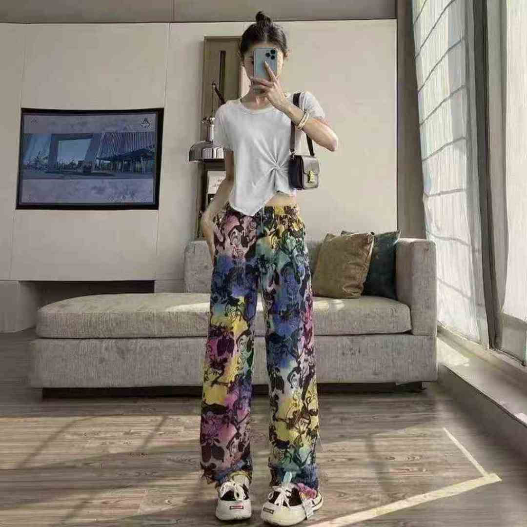 Закрашенная карта печатать широкие брюки для ног 975 шт. 6.5, ткань удобная и высокая эластичность, рыхлая талия, есть карман, код 4 - 6 ярдов (S - L), независимая упаковка,
