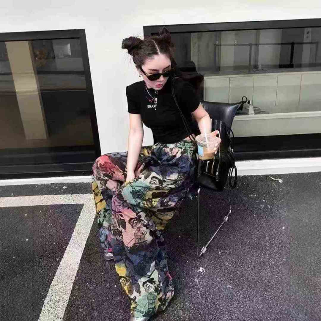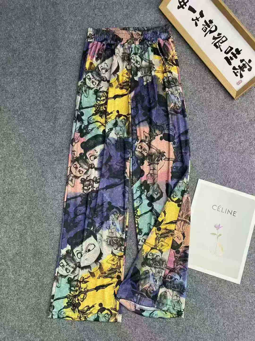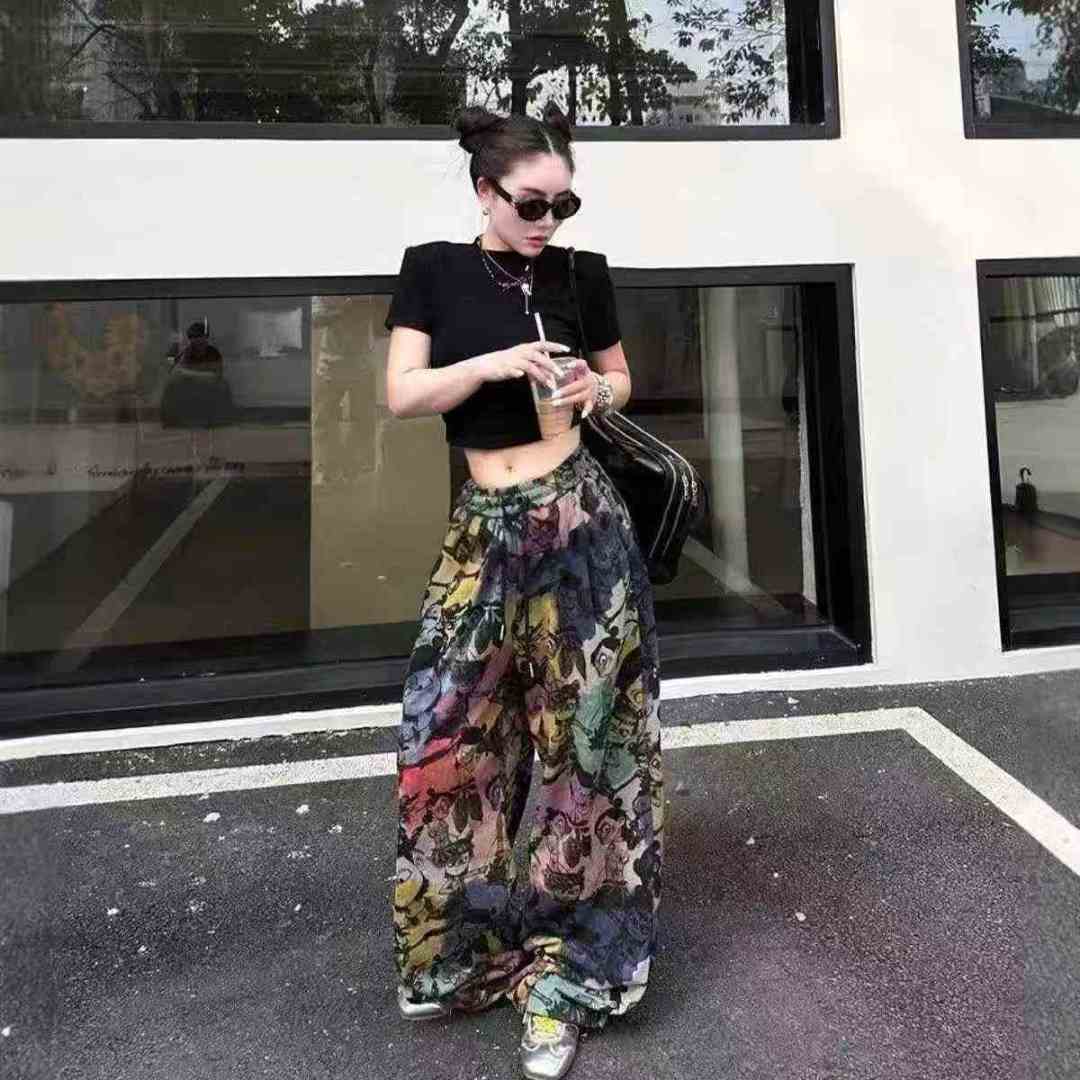 Закрашенная карта печатать широкие брюки для ног 975 шт. 6.5, ткань удобная и высокая эластичность, рыхлая талия, есть карман, код 4 - 6 ярдов (S - L), независимая упаковка,