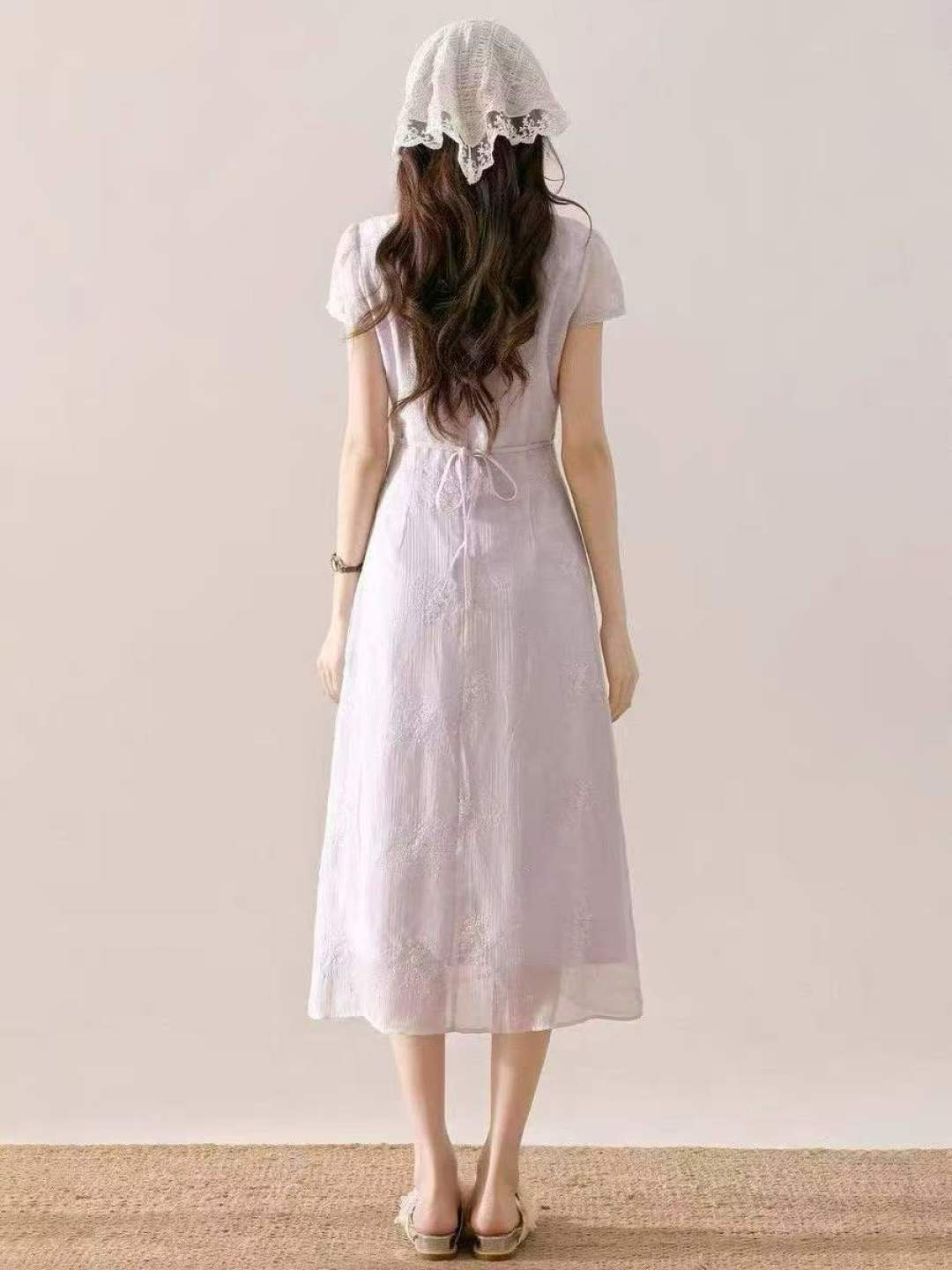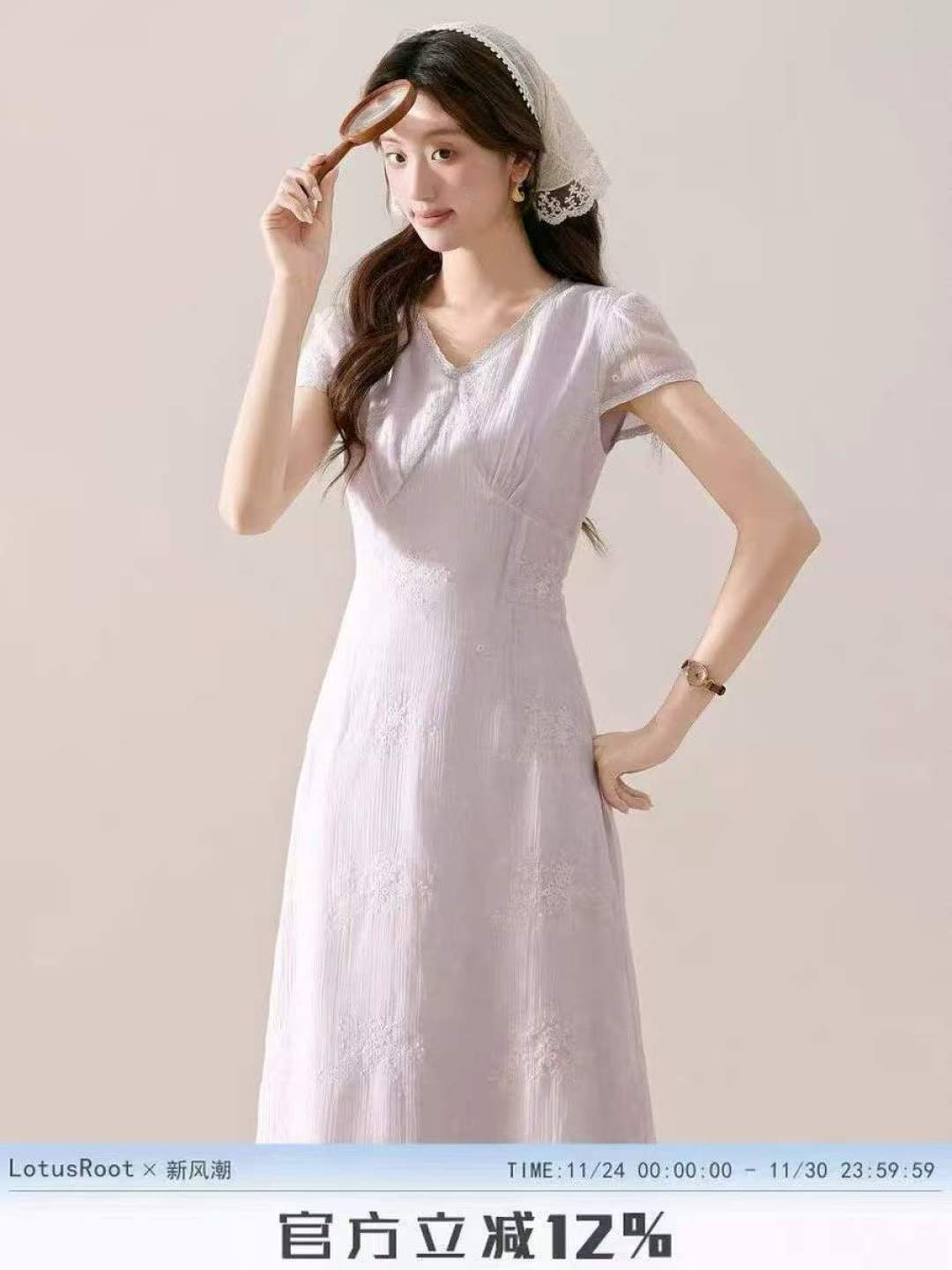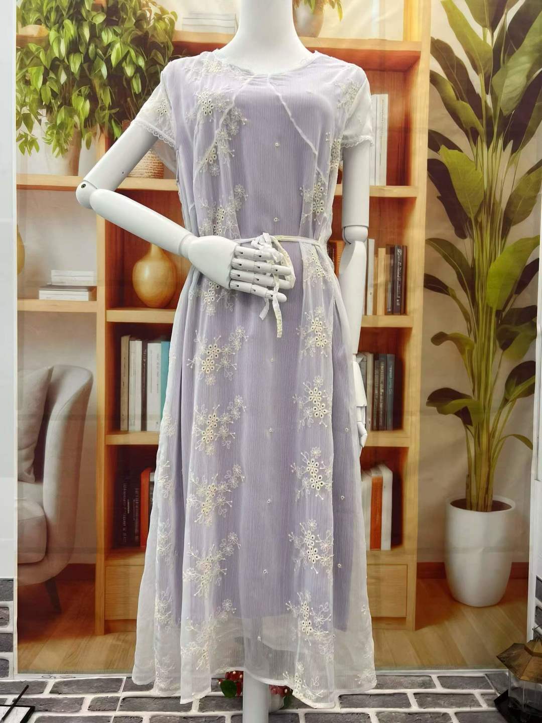 Полная очистка 10,8 шт. / чистка 4100 шт. Новый летний ремонт талии длинные платья, технологическая вышивка, монохромная, отдельная упаковка, код М - L