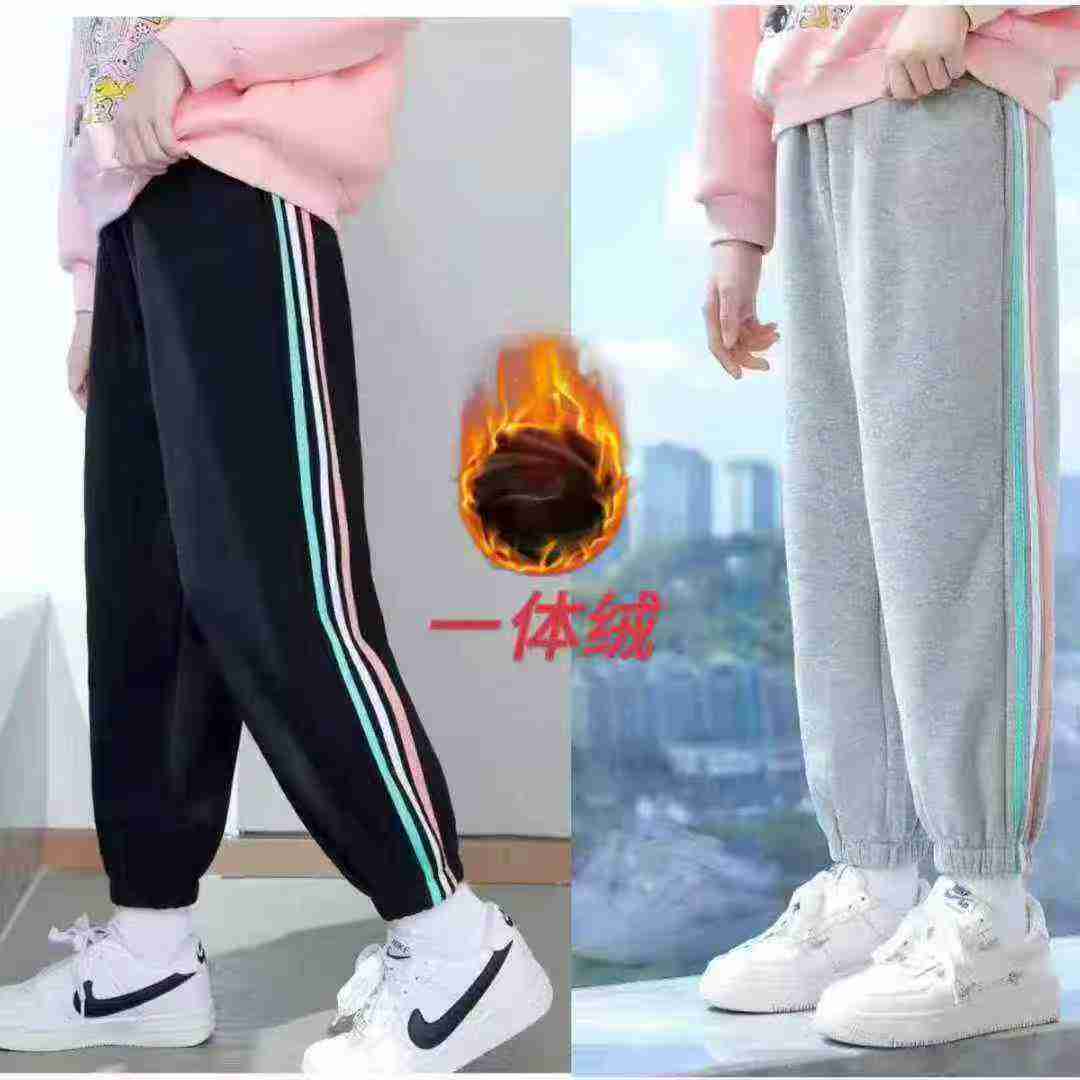 Полная очистка 6.8505 мужских и женских средних детей осень - зима плюс пуховые толстые брюки Детские спортивные брюки Газовые штаны один пуховые брюки один двухцветный, код 120 - 150 самостоятельная упаковка.