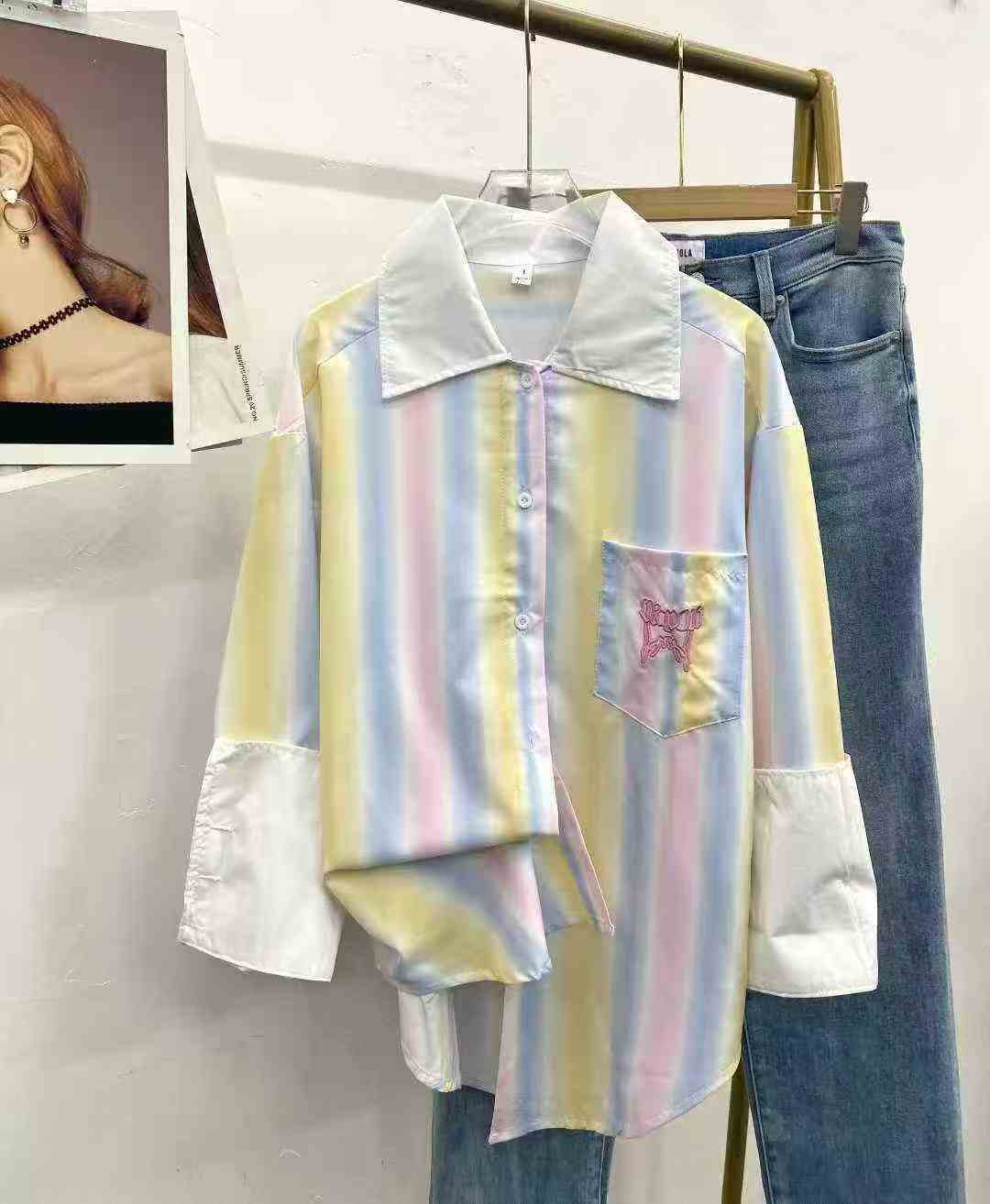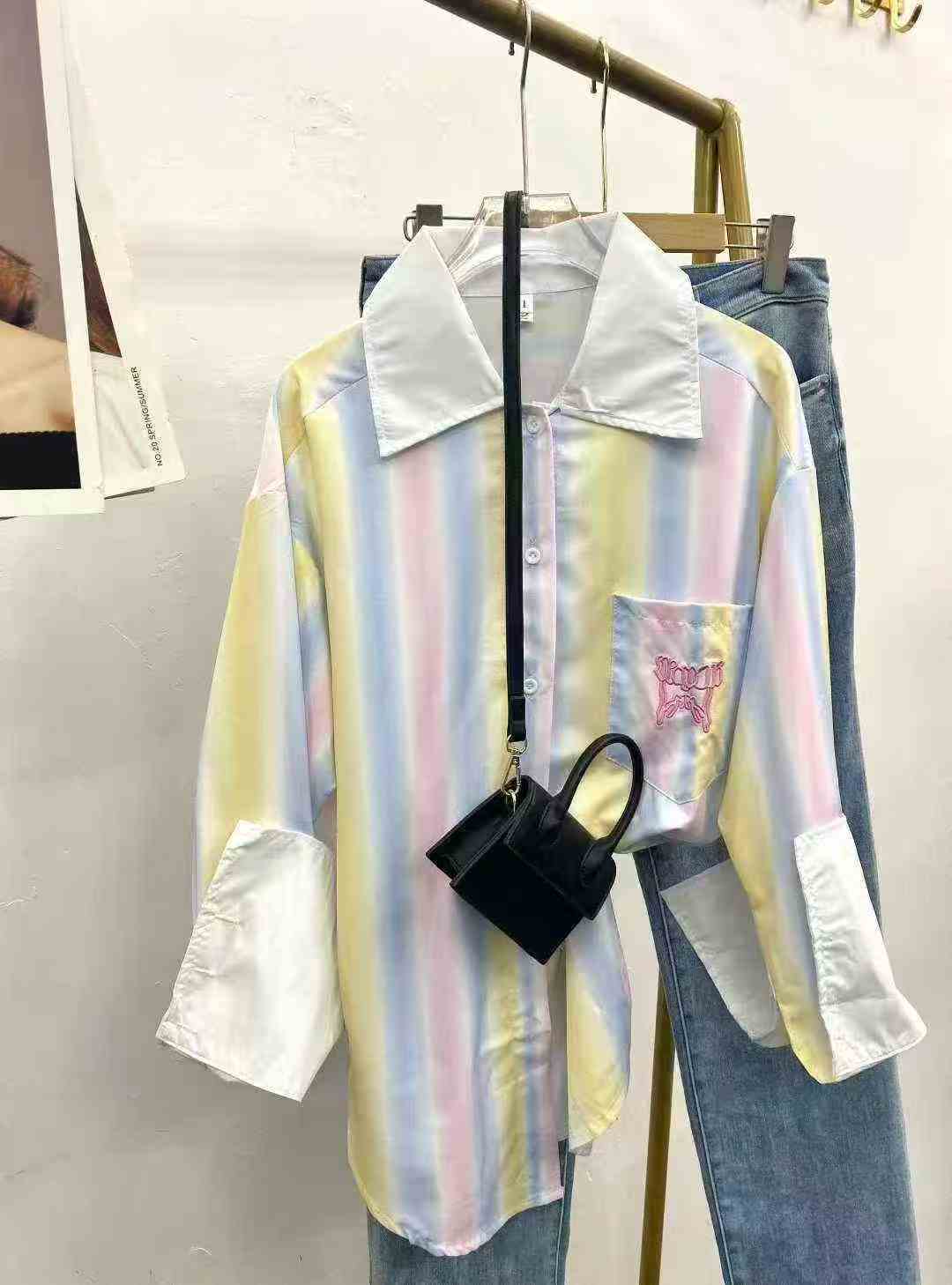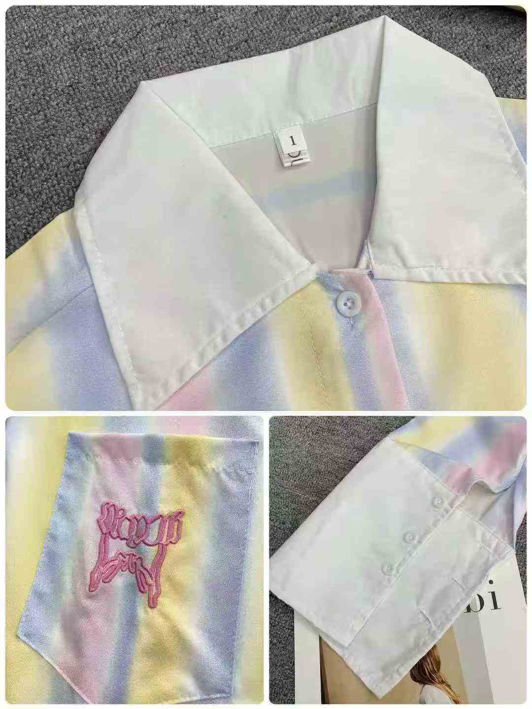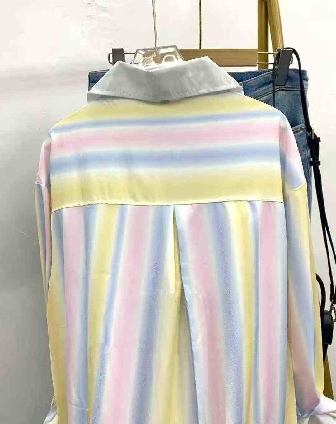 Ленивый ветер радуга ударяет по цветной полосатой рубашке 85 шт. 9.5, ударное сращивание, вышивка с буквенным рисунком, дугообразный дизайн под маятником, чувство провисания, число ярдов 1 - 3 (S - L), отдельная упаковка