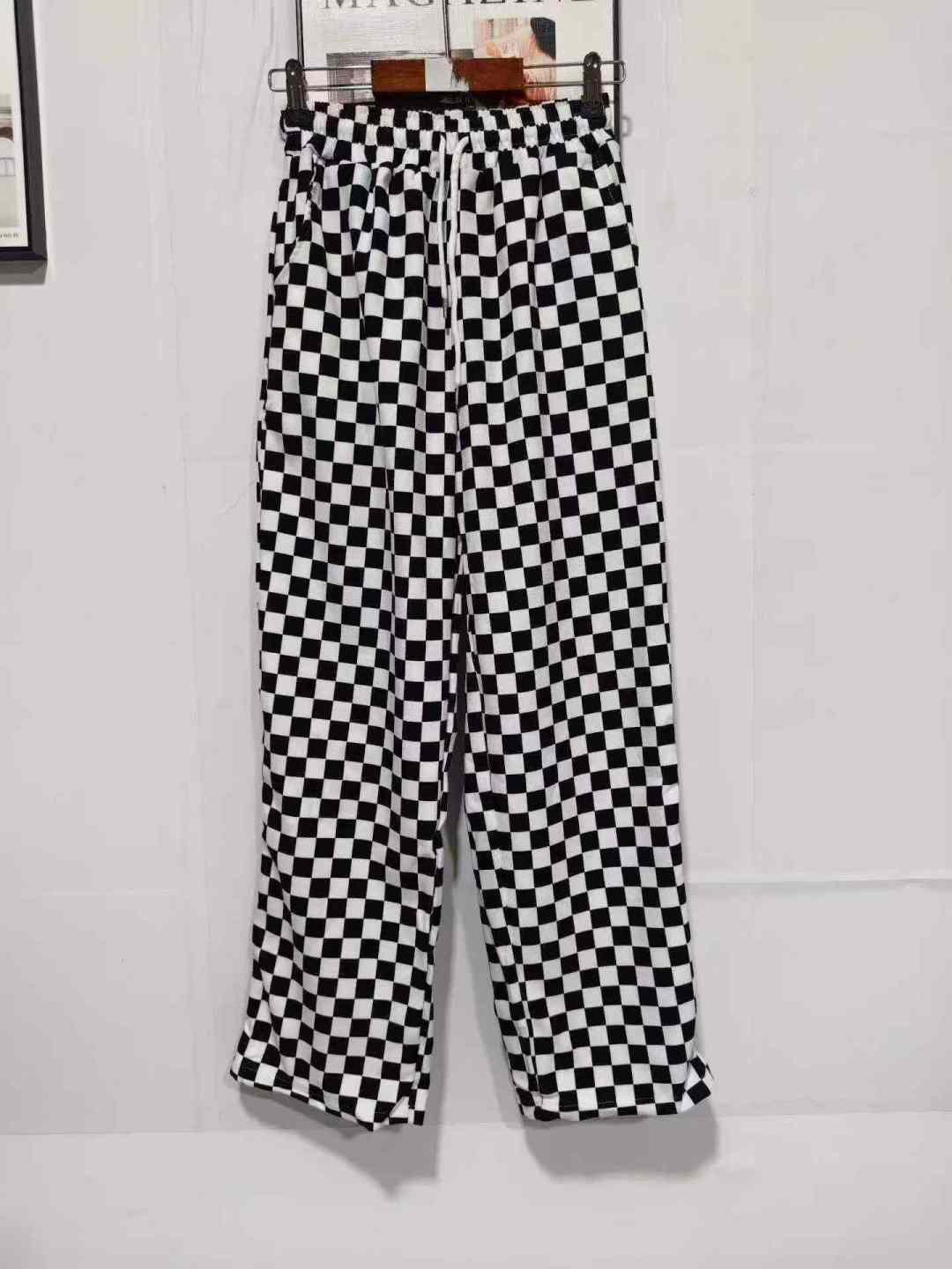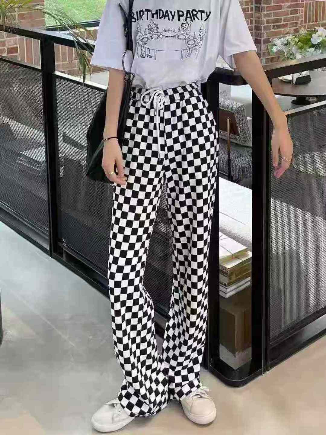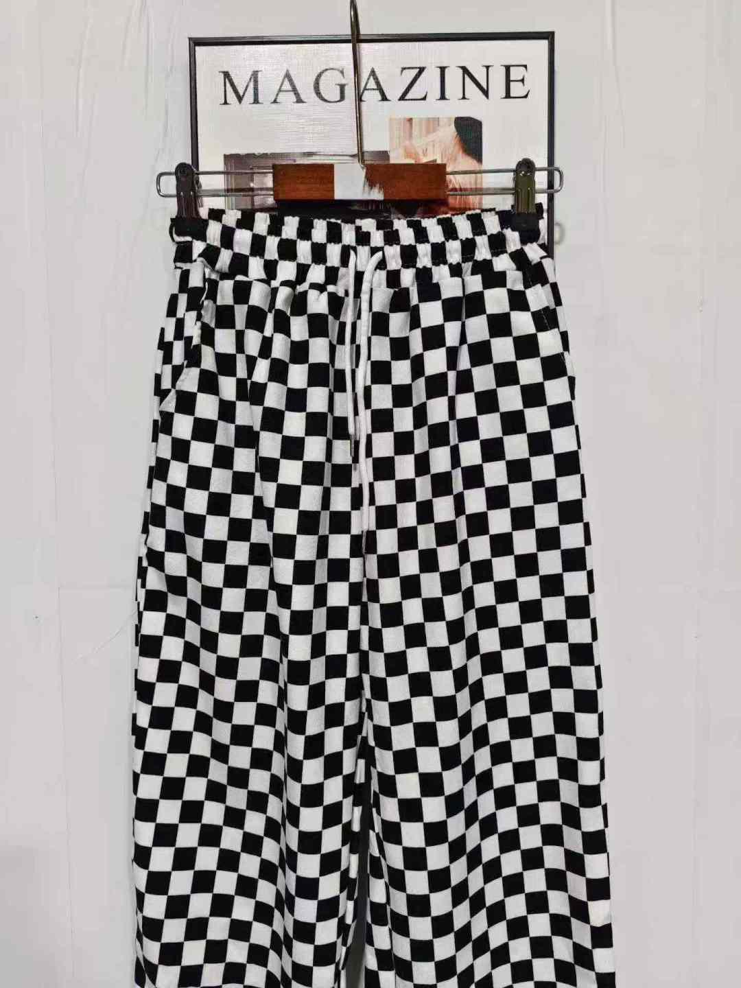 113 шахматная доска Спортивные женские брюки новые свободные брюки черно - белые сетки прямые брюки с широкими ногами, размер 1 - 5, независимая упаковка, полная чистка 8,8 мин. + 1