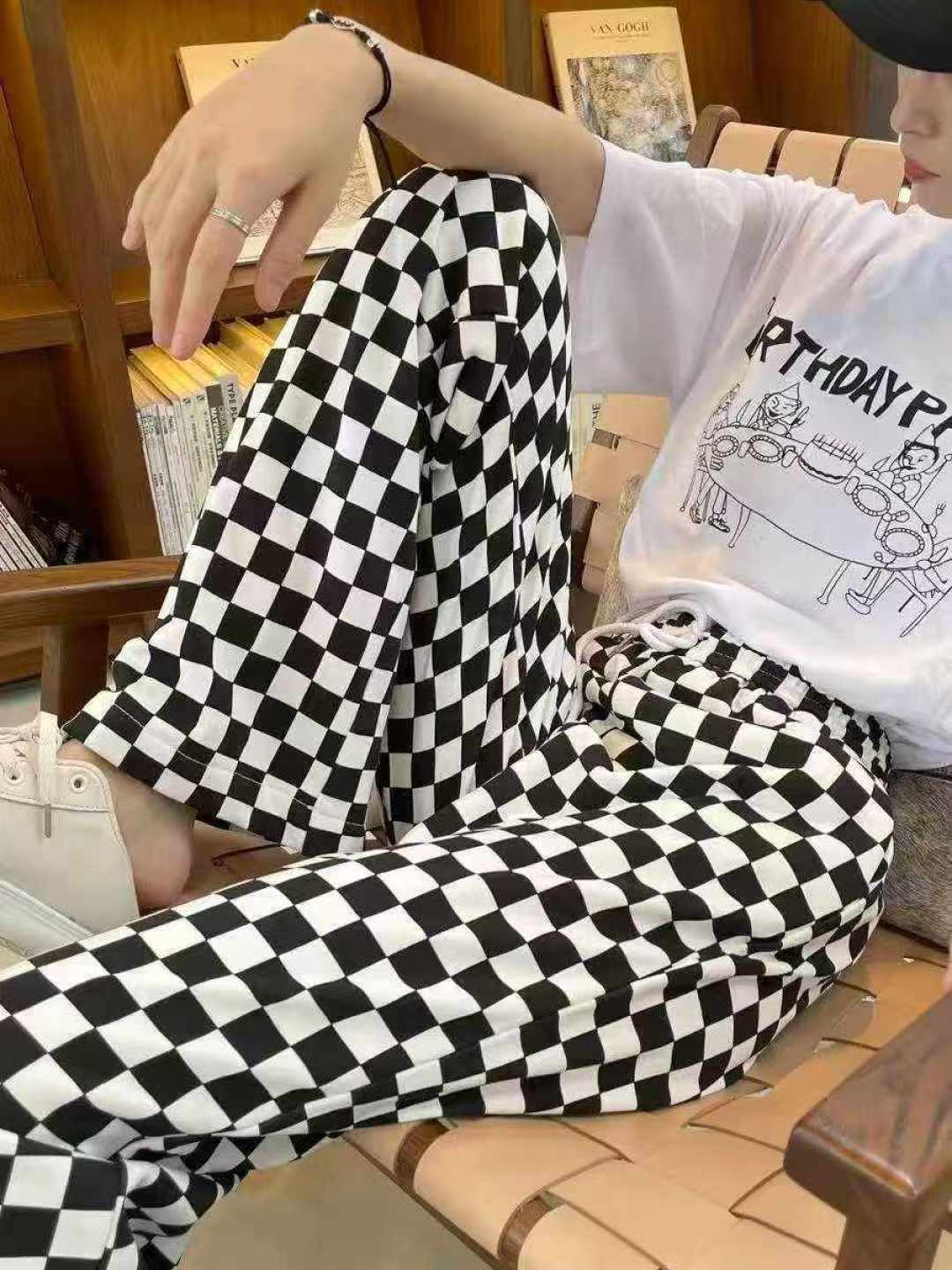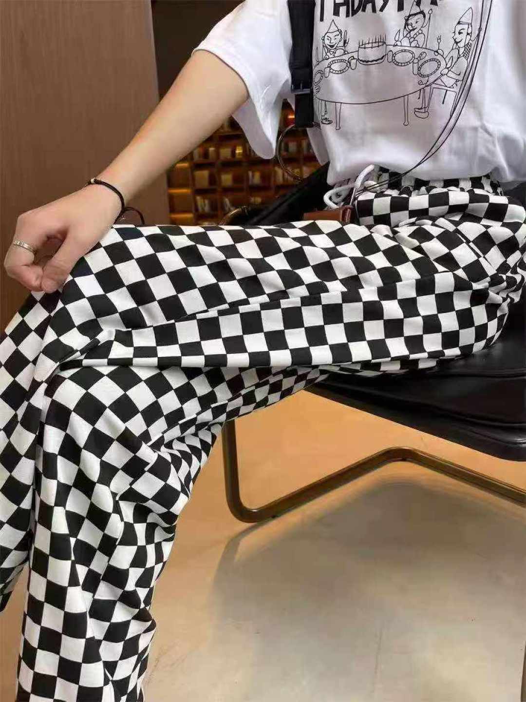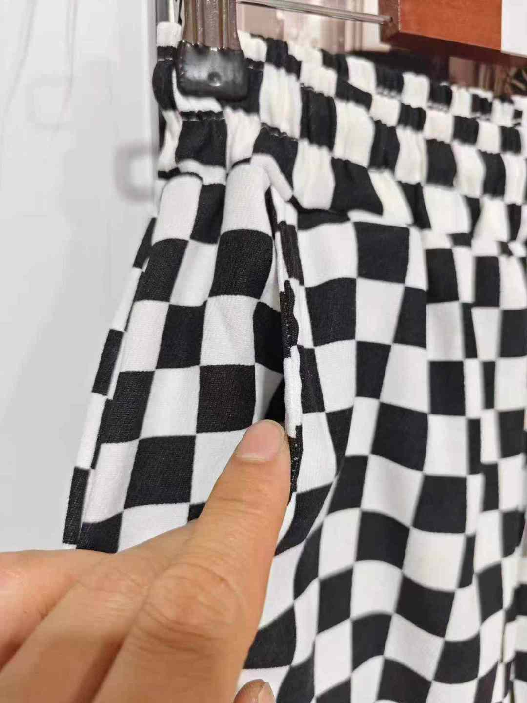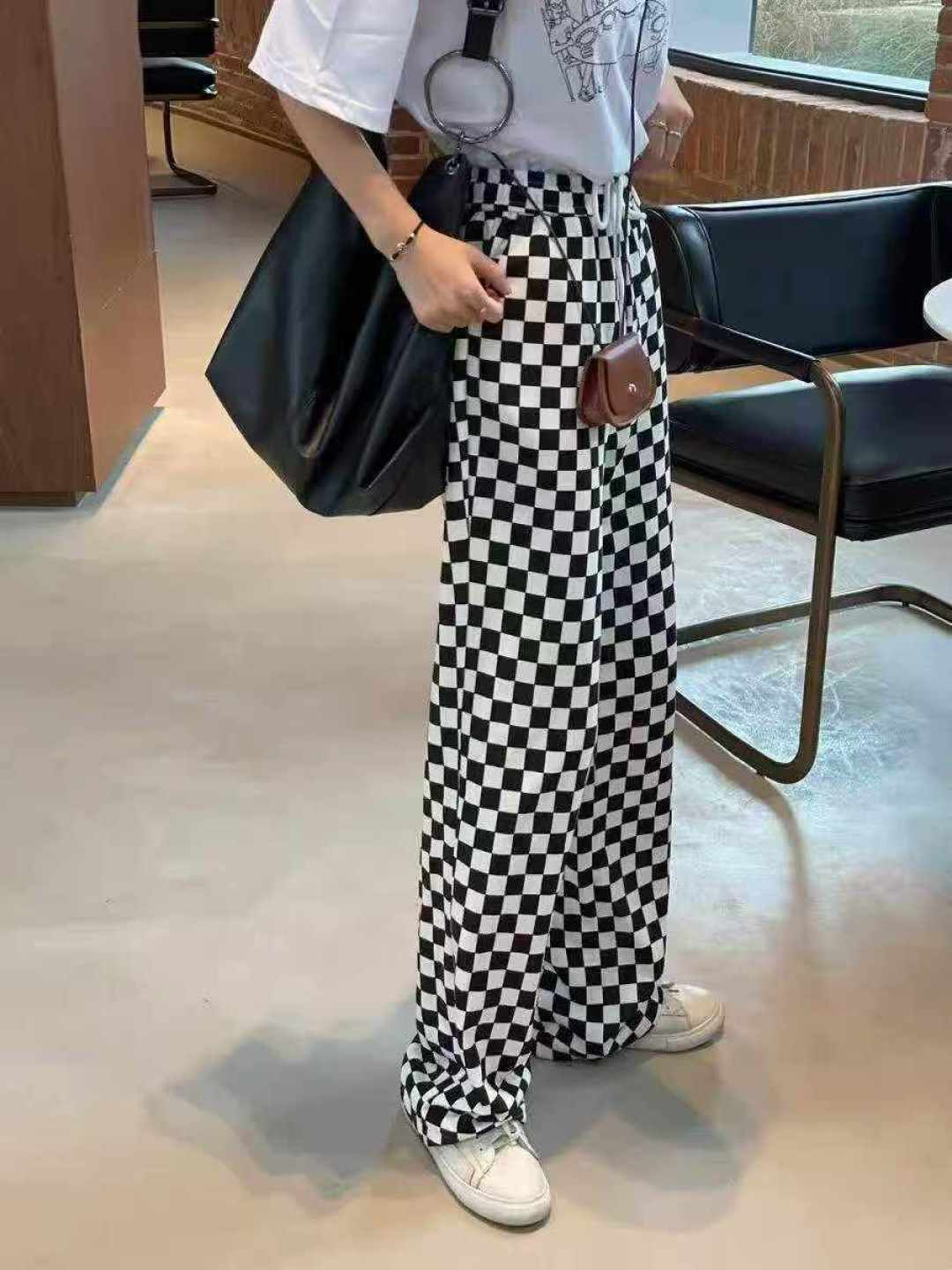 113 шахматная доска Спортивные женские брюки новые свободные брюки черно - белые сетки прямые брюки с широкими ногами, размер 1 - 5, независимая упаковка, полная чистка 8,8 мин. + 1