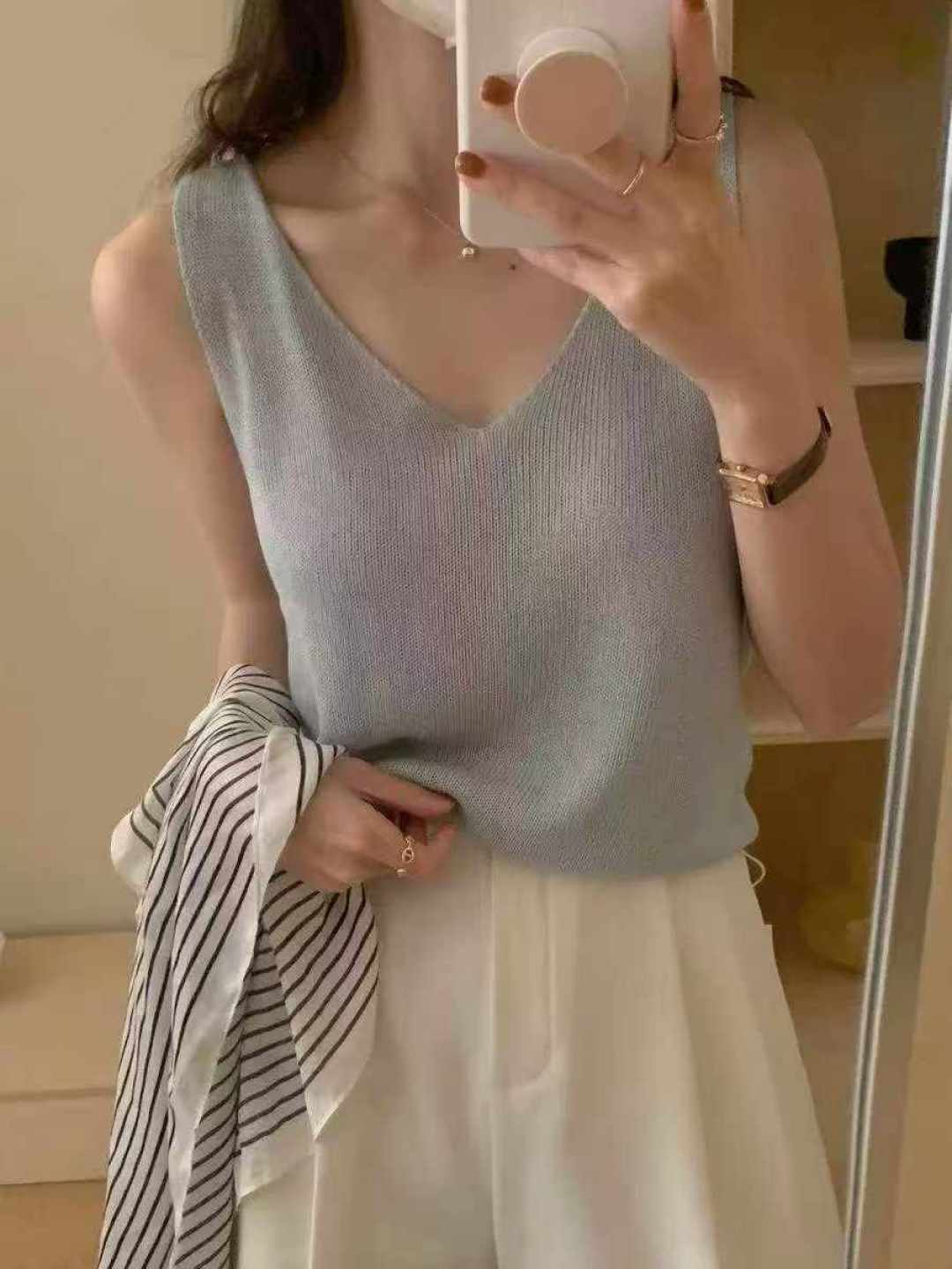 Летние новые небольшие толпы высококачественный чувствительный льняной шелк V - воротник жилет трикотаж, независимая упаковка, средняя ткань мягкой, удобной и эластичной, 299 штук, полная чистка 4,9 юаня сверхнизкая цена секундное убийство!