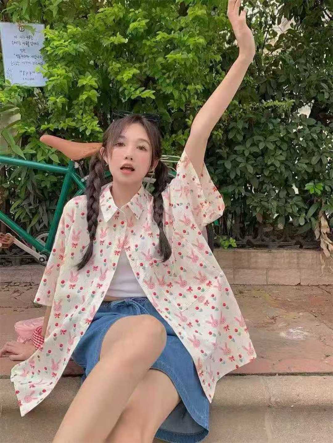 [Луна]: 8.5 Чистая 169 единиц (без разделения) [Луна]: сладкий кролик с портовым вкусом, полный печатной свободной рубашки с короткими рукавами [Луна]: M L XL Независимая упаковка [Луна]: монохроматическое качество ️