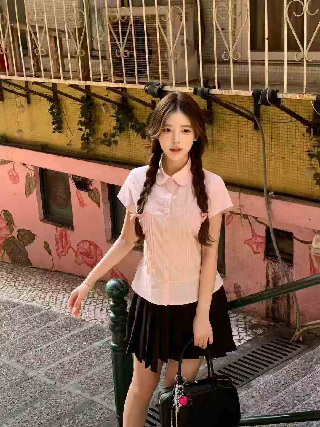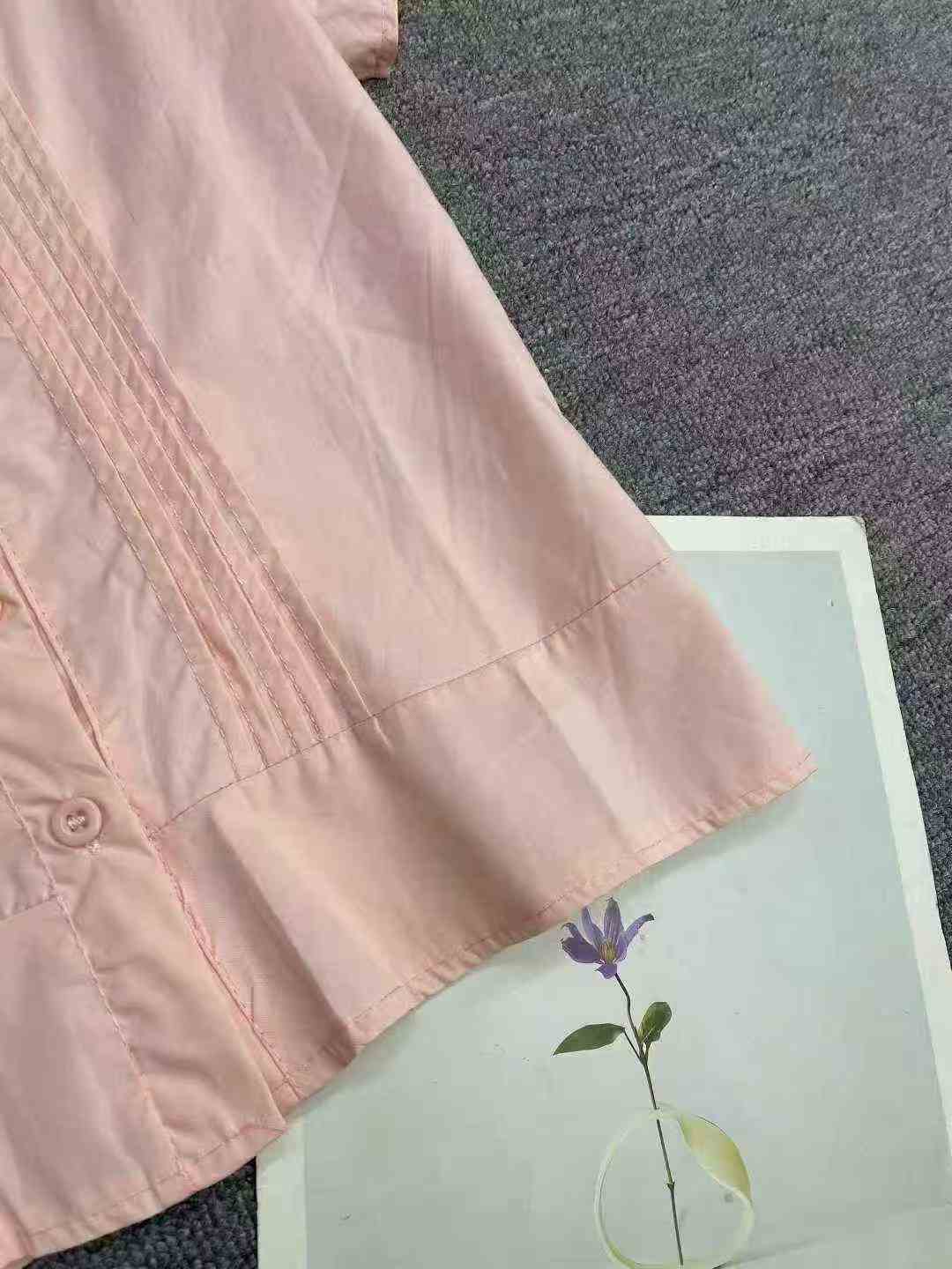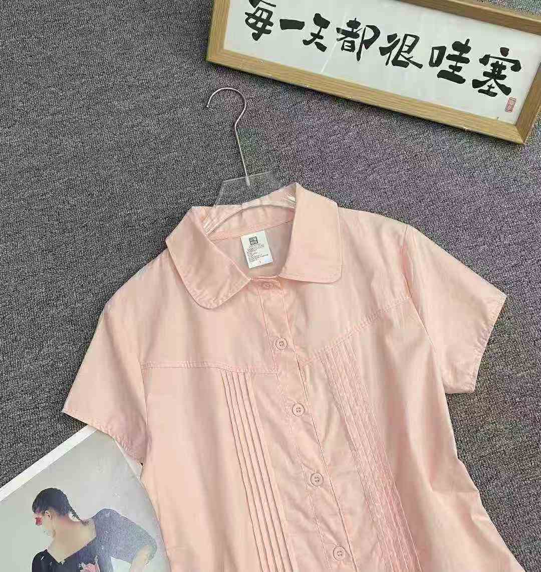 Корейская серия Сладкая розовая рубашка с короткими рукавами 595 шт. 7.8, кукольный воротник, дизайн складок, задний воротник к плечу, качество, кодовое число 1 - 4 ярда (S - XL), отдельная упаковка