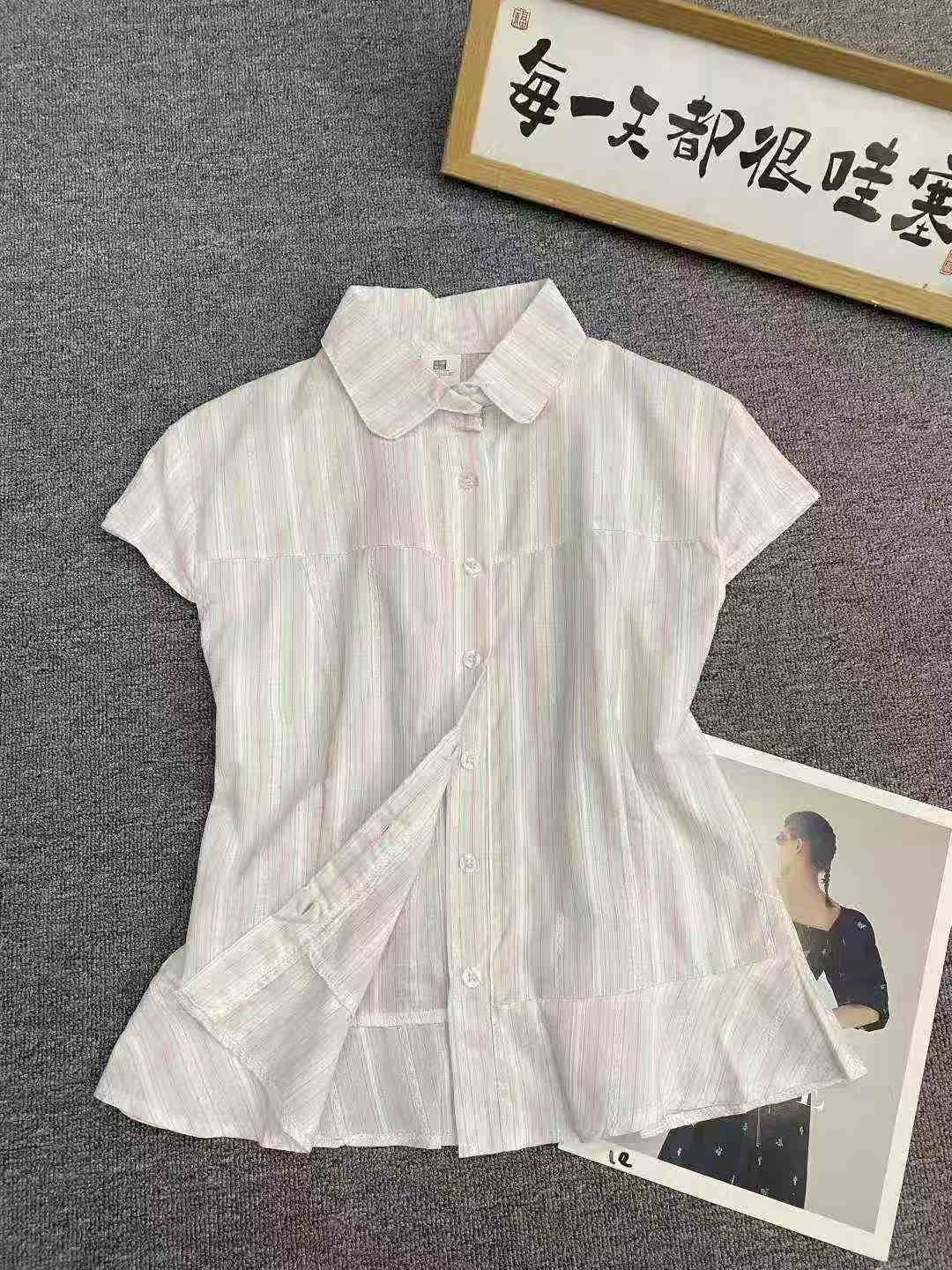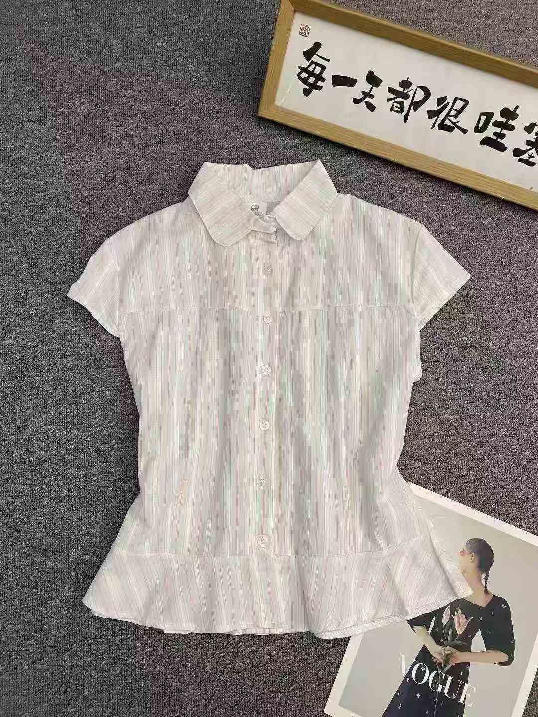 Колледж ветровая полосатая рубашка с короткими рукавами 469 шт., полная чистка 7.9, распределенная 8.5, воротник Polo, дизайн сцепления, задний воротник к плечу, номер кода 1 - 4 ярд, отдельная упаковка