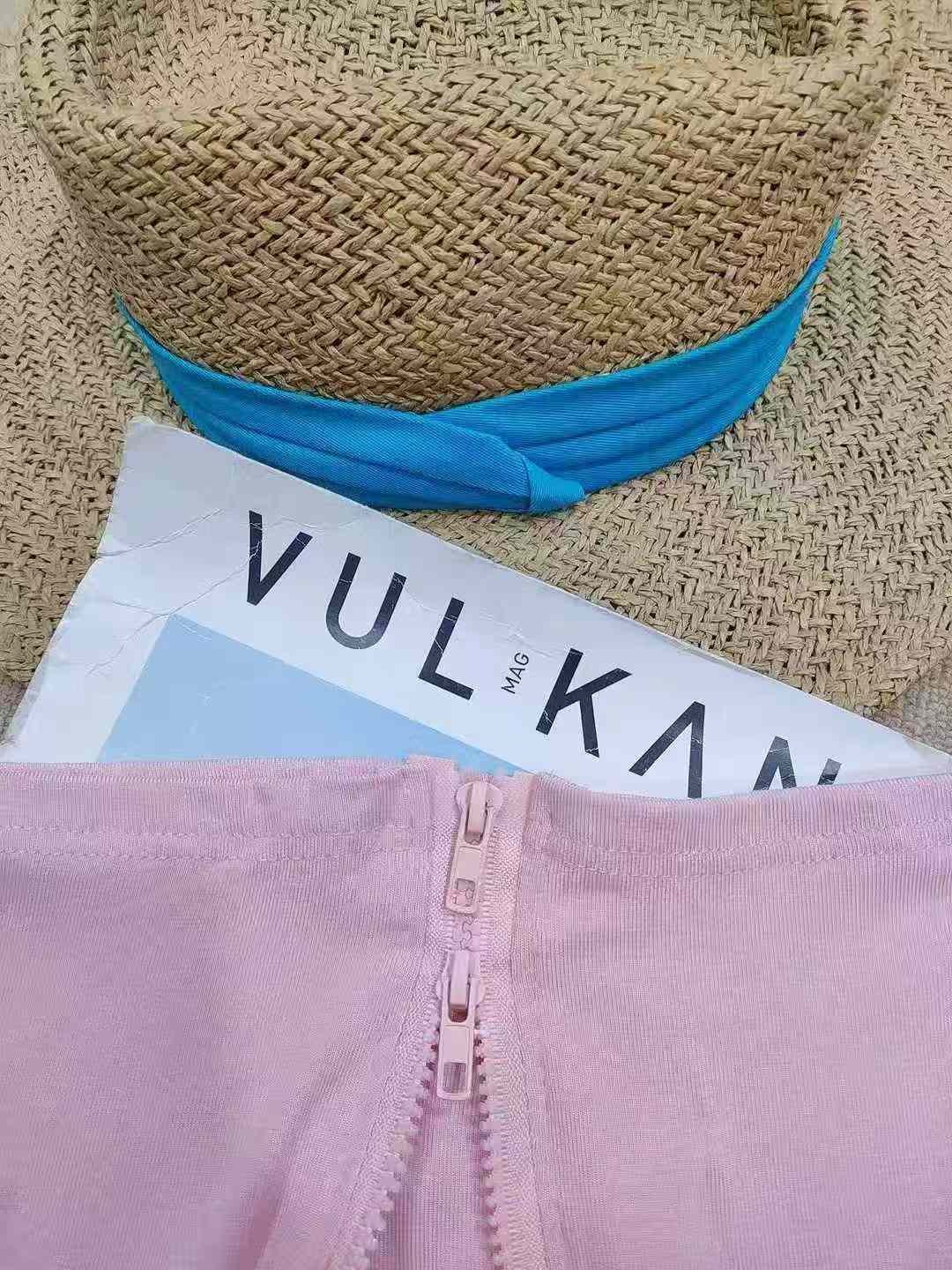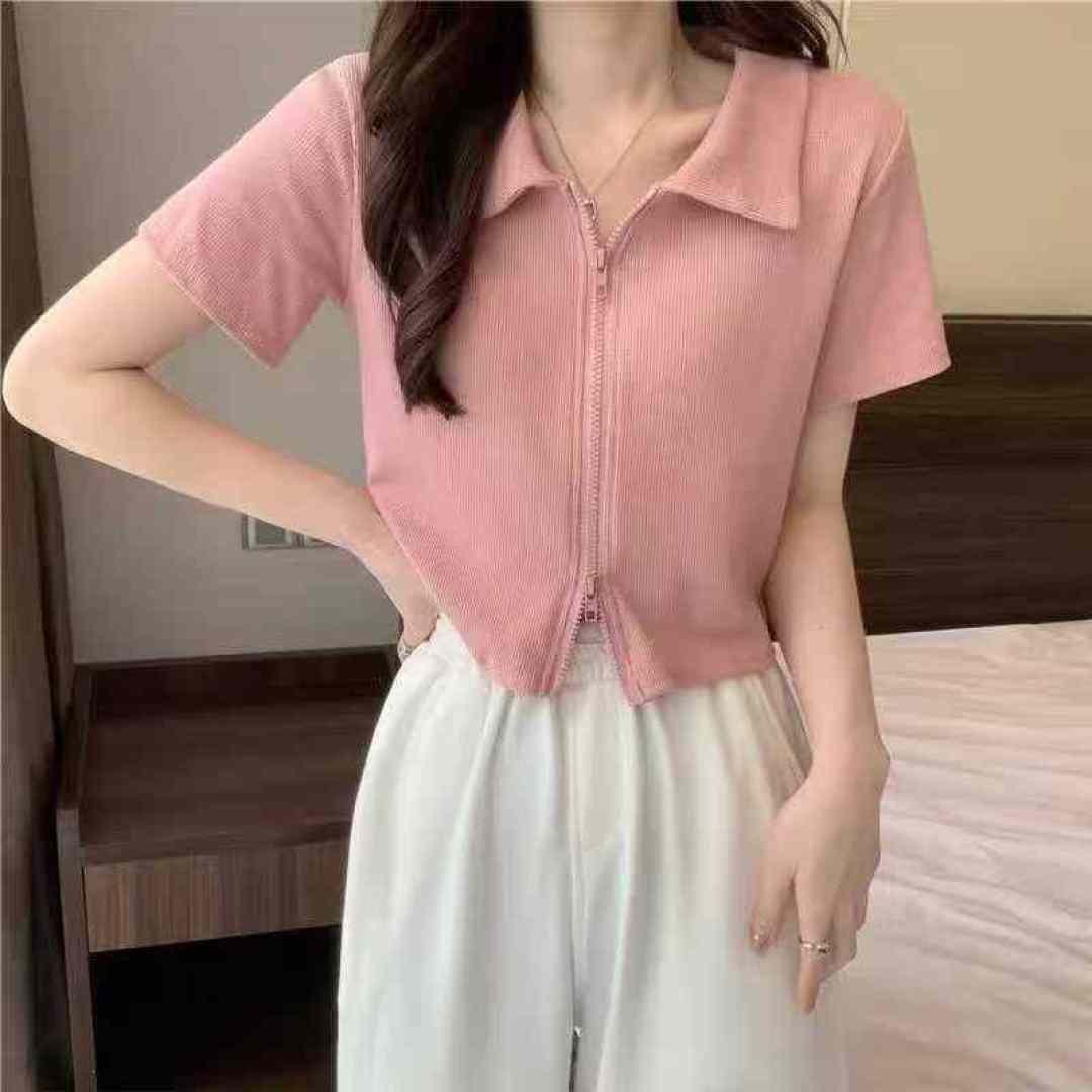 [Луна]: 5.5.9 Очистить 105 шт. (без разделения) [Луна]: розовый Polo воротник с двумя молниями короткие рукава горячая девушка хлопчатобумажная блузка [Луна]: монохроматическое качество ️