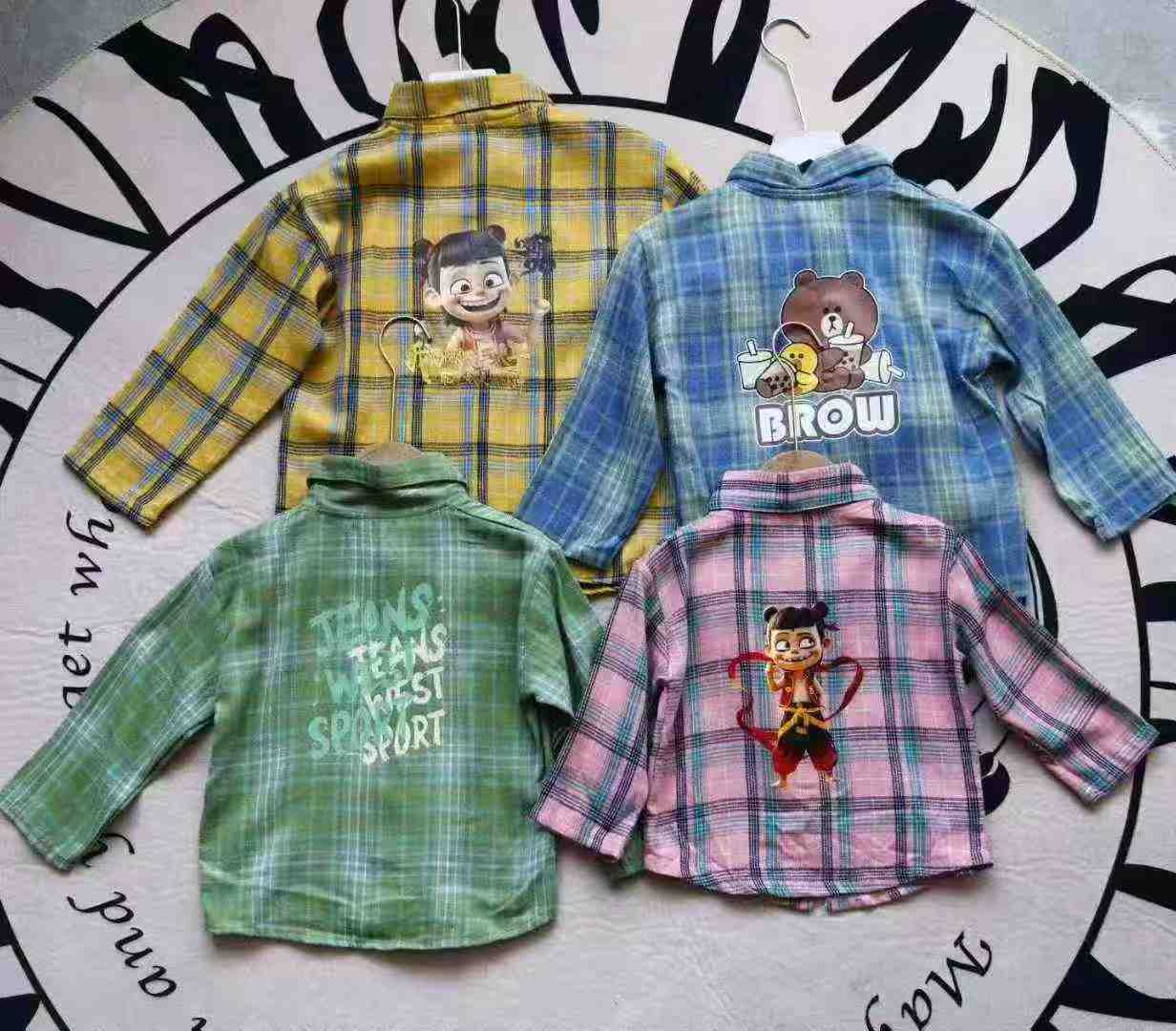 Полная очистка 5.8 минут + 0.51954 детская сетка рубашки с длинными рукавами, весь 4 цвета, сзади с принтом, две ткани, кодовое число 90 - 140, десятки плюшевых, есть список, независимая упаковка, модельная карта только для справки