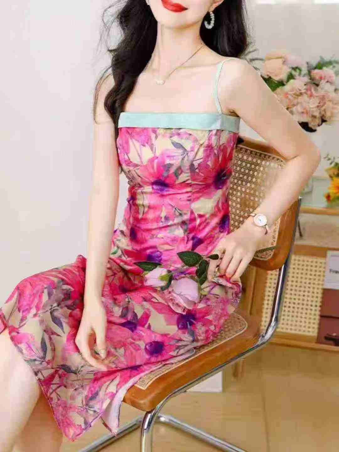 Французский ретро - цветочный лоскут платье с подвесной лентой Леди летом новый темперамент ремонт высокого класса мешок с ягодицами длинные юбки 477 шт., независимая упаковка, товары чистые и аккуратные, размер S ~ 3xl (1 - 6 ярдов), полная цена благосостояния 8,8 юаней, распределенные товары ➕ 0,5