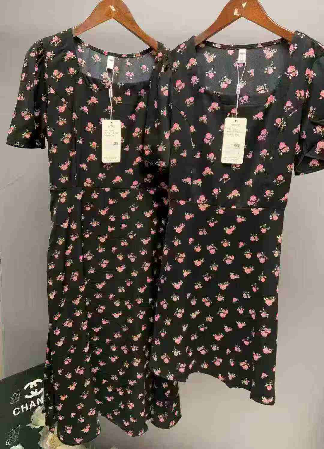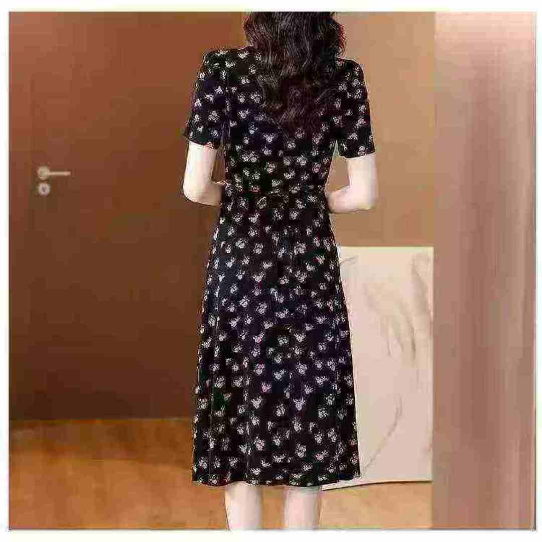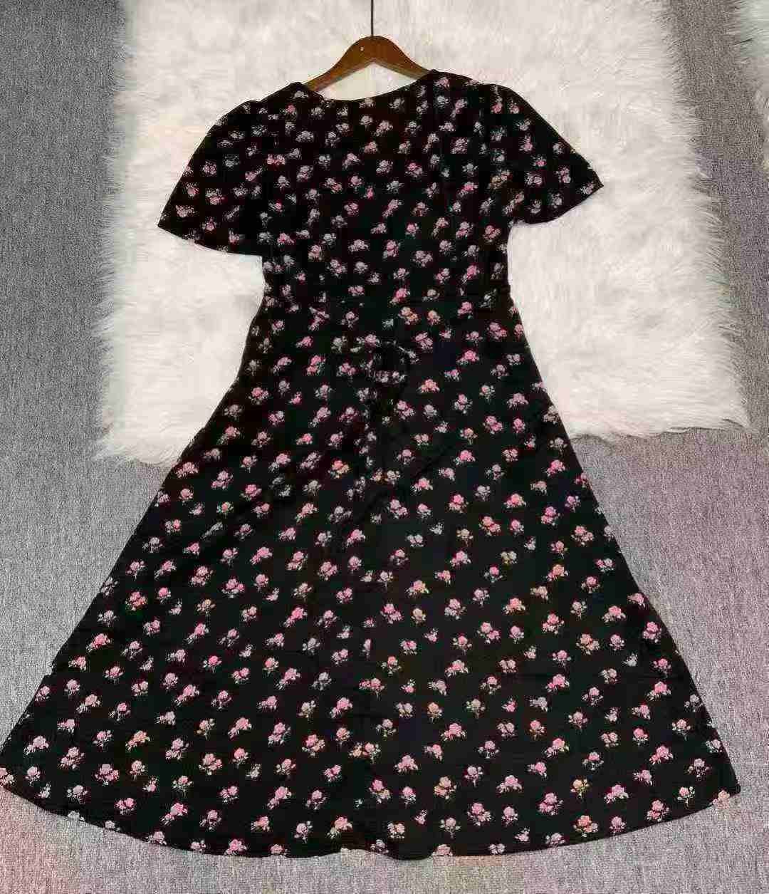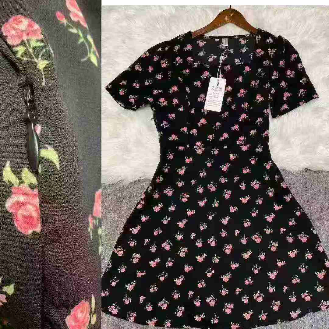 Женское платье с нарезанными цветами Новый женский длинный летний ремонт тонкий квадратный воротник с короткими рукавами маленькое черное платье французское платье с талией 260 шт., отдельная упаковка с подвеской, размер S - 3XL товары чистые и аккуратные, полная чистая цена 10,8 юаней
