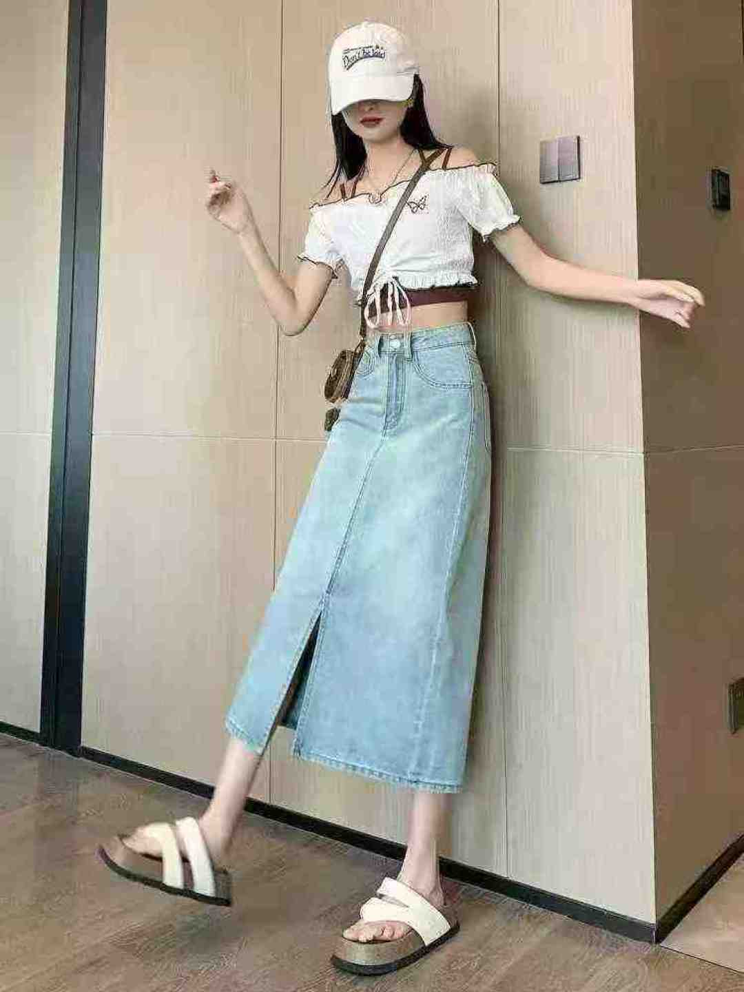 Голубое ковбойское платье 482 полностью 16,8 юаней, без разделения, кодовое число S до XL, оригинальная независимая упаковка, подробный список ярдов, светлое полуюбка летом новый дизайн среднего длинного мешка ягодицы юбка в этом году популярный синий ковбойский длинный юбка