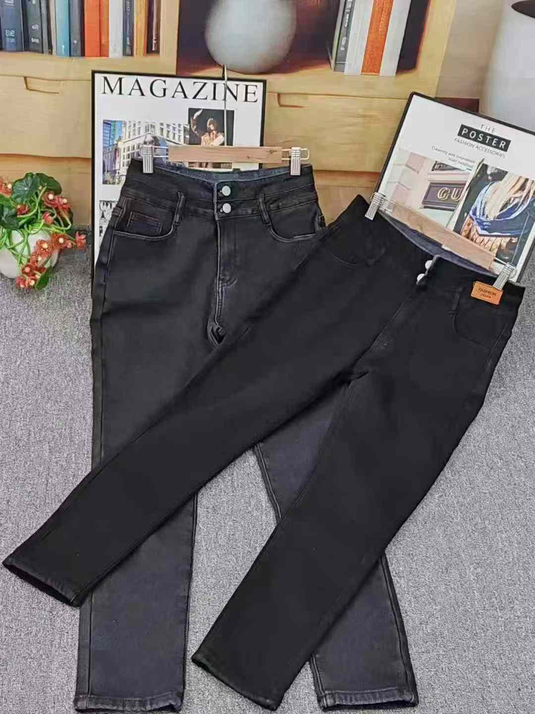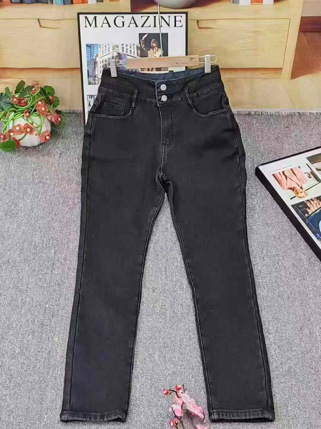 Внешнеторговые джинсы с высокой эластичностью и бархатом, Qing 12.8 A2 число одного ярда средний код (100 - 130 кг), количество 92 шт., физический магазин высокое качество под полкой, эластичные джинсы для маленьких ног, все независимые упаковки, единый бренд, джинсы для внешней торговли