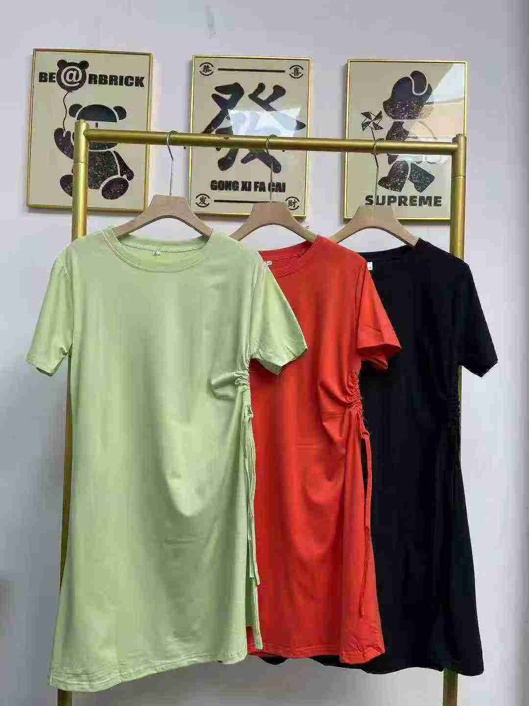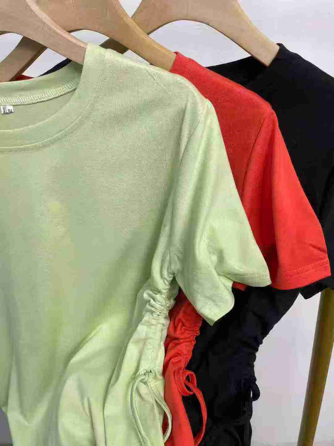 Полная ясность 6,8 юаней Тяньцзы в продаже около 300 высококачественных летних хлопковых средних и длинных красивых девушек с веревкой для вытягивания талии футболки с короткими рукавами платье, один трехцветный, эластичный, размер M - 3XL, независимая упаковка