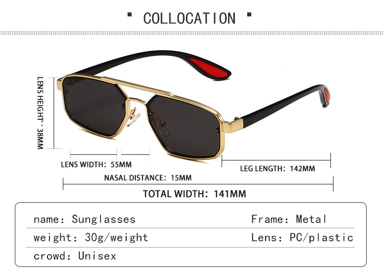 2025 New European and American Trendy Double Beam Metal Polygonal Sunglasses for Men and Women Cross border Fashion Street Photography Sunshade Sunglasses