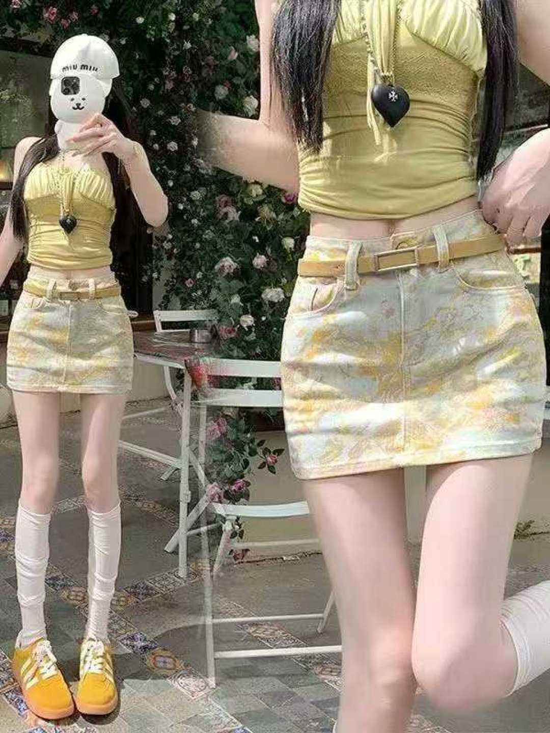 Сеть красные цветочные ковбойские юбки 1033 полная ясность 13,8 юаней, независимо от груза, список кодов, высокое качество (одно ноо) аутентичный упаковочный кран, все с футеровкой, ковбойские бюстгальтеры, высокая талия, ультра - огненный возраст горячая сестра a пакет ягодицы юбка с принтом короткая юбка
