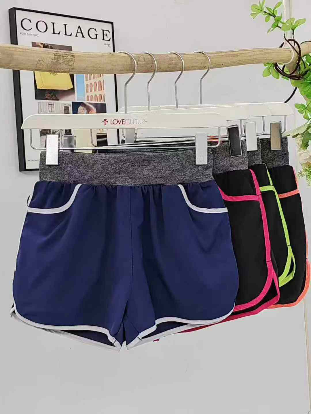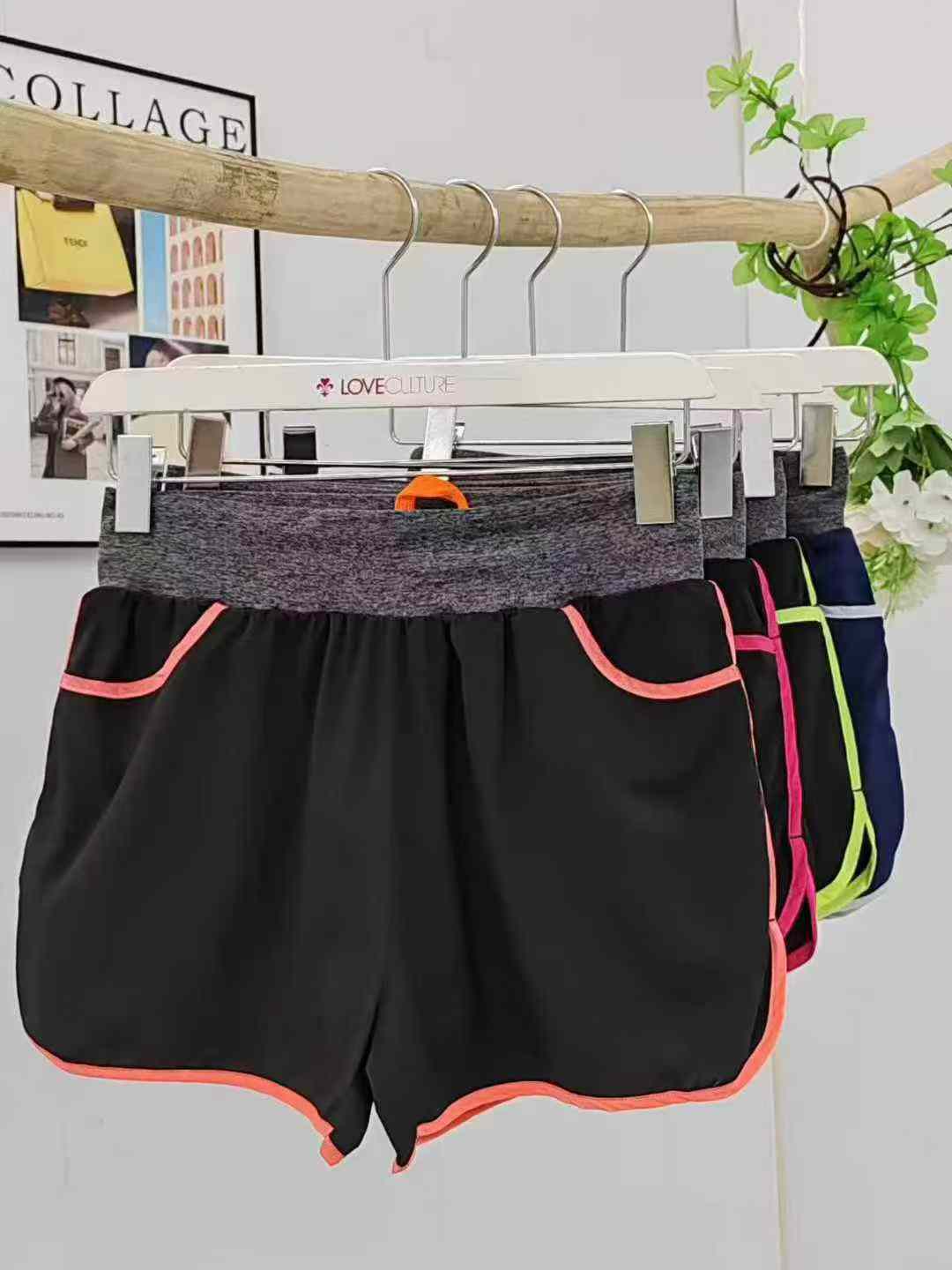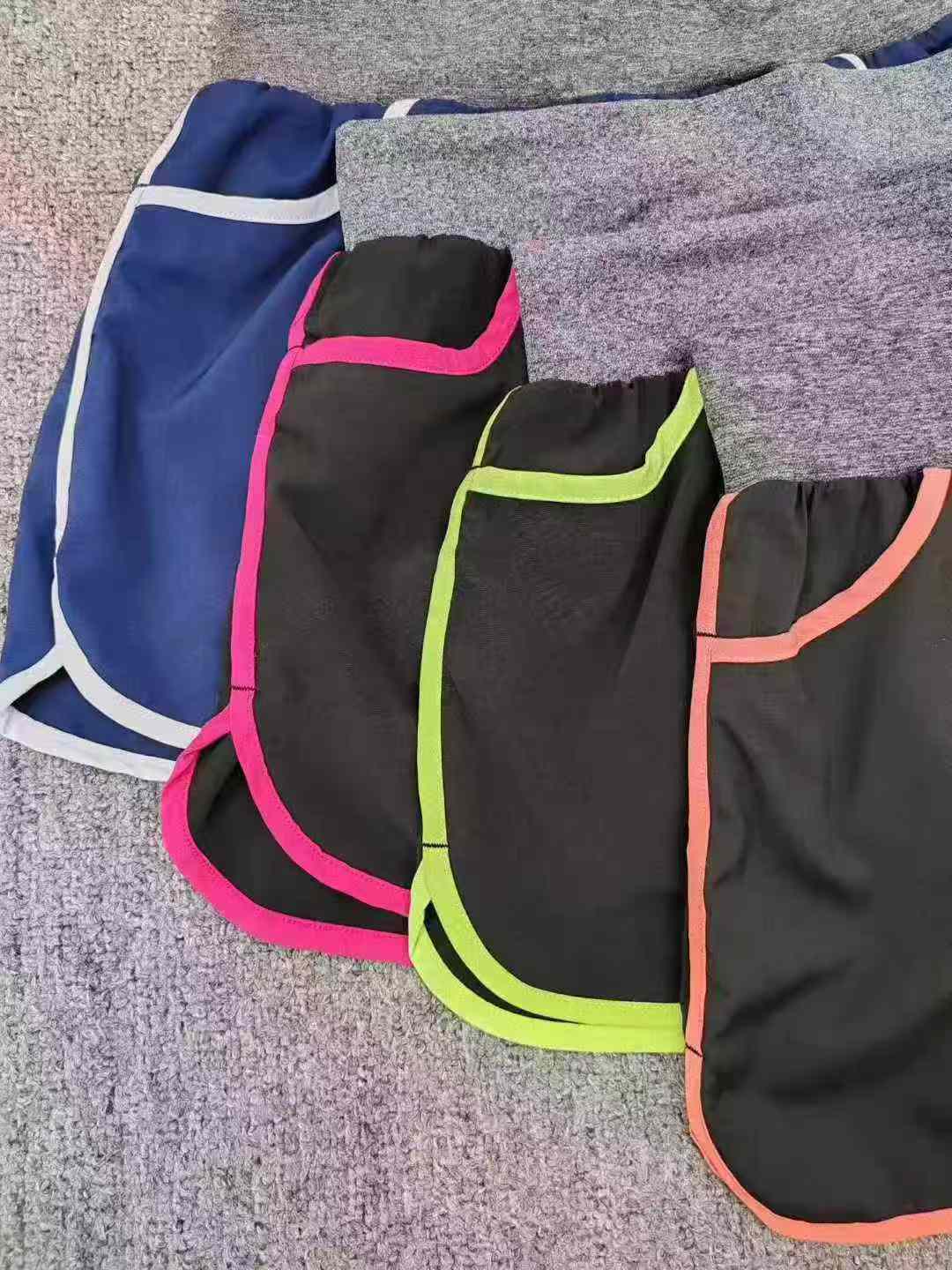 Женские спортивные шорты, фитнес шорты, чистое количество 5.8 около 9800 шт., кодовое число S, M, L - код, один многоцветный, двойная передняя полоса, с футеровкой двойной защиты, высокая эластичность, независимая упаковка + коробочная упаковка, американский внешнеторговый бренд Paul под спортивной серией шорт, высокое качество, включая капроновую ткань