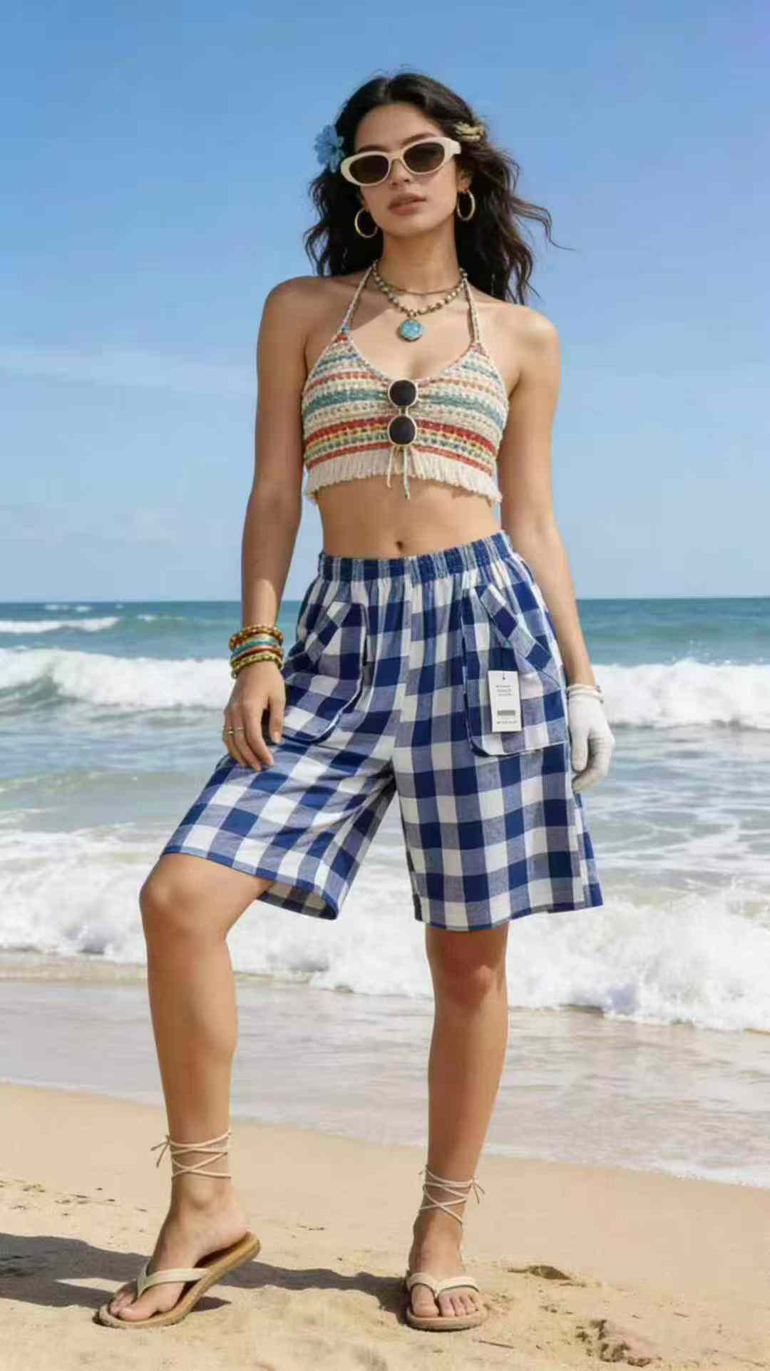 Клетчатые пляжные брюки, чистый 6.8 средний код, количество около 5070, чистая хлопчатобумажная ткань, все независимые упаковки, товар очень красивый, тип свободный, сетчатобумажные шорты, пятиминутные шорты, шорты для отдыха, в основном двойной карман, физическое качество магазина, многоцветный, распределенный 7.8, (пляж, дом)
