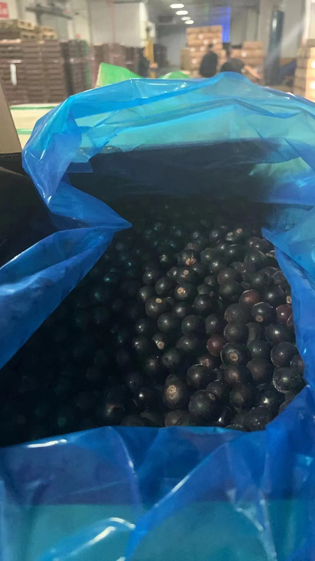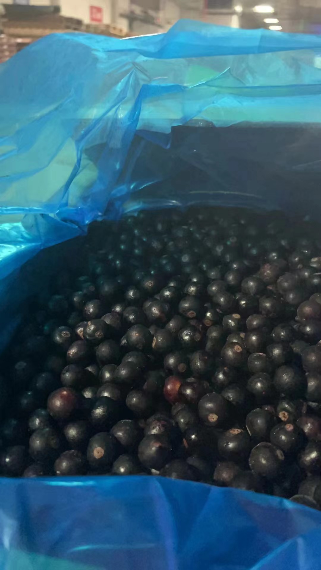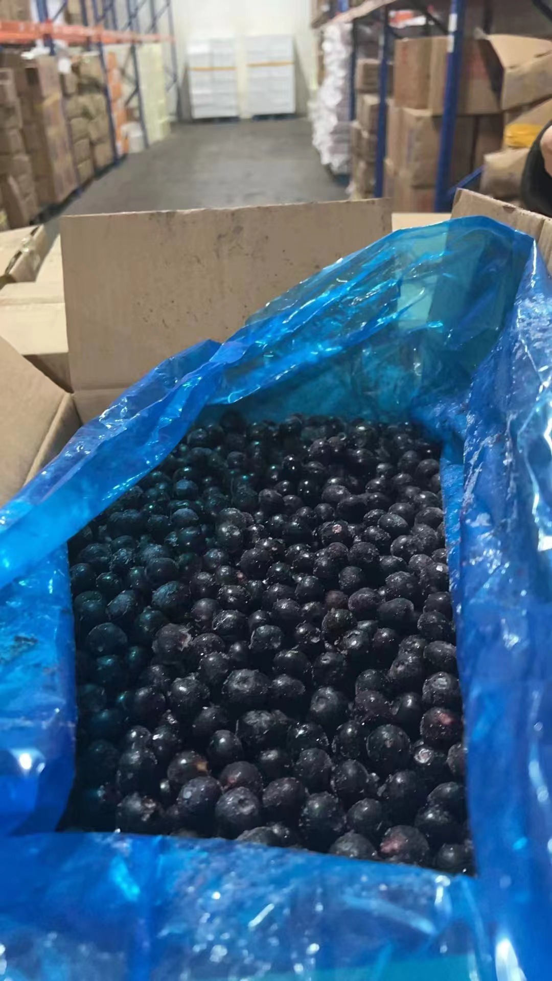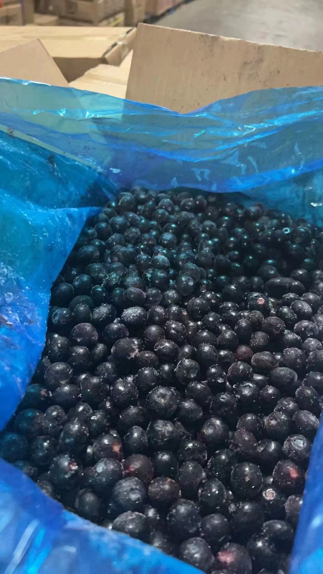 Замороженные чёрные галлоны замороженных фруктов и овощей.