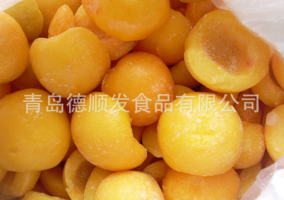 Замороженные фрукты, лепестки желтого персика, продукты питания, фрукты, сахар, консервированные персики, фруктовые консервы, свежие замороженные лепестки желтого персика.