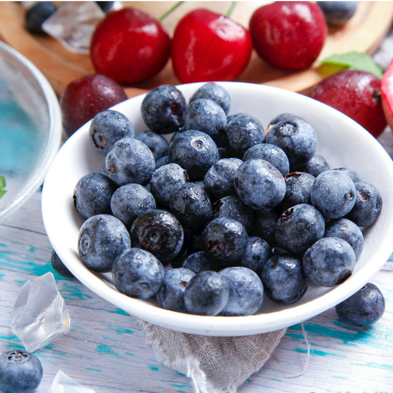 Свежие замороженные фрукты, черника, кондитерские изделия, ягоды, выжатый сок, джем, напитки, замороженные фрукты, черника.
