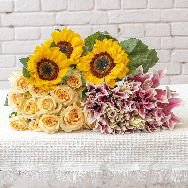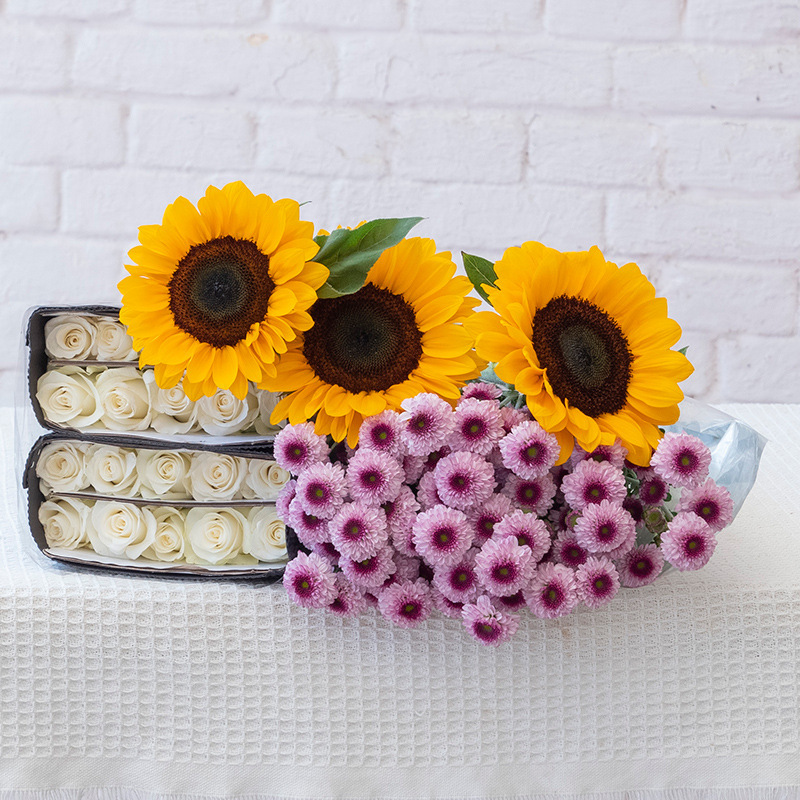 Юньнань Куньмин цветочная база прямые розы лилии букет семьи свежие нарезанные цветы подсолнухи