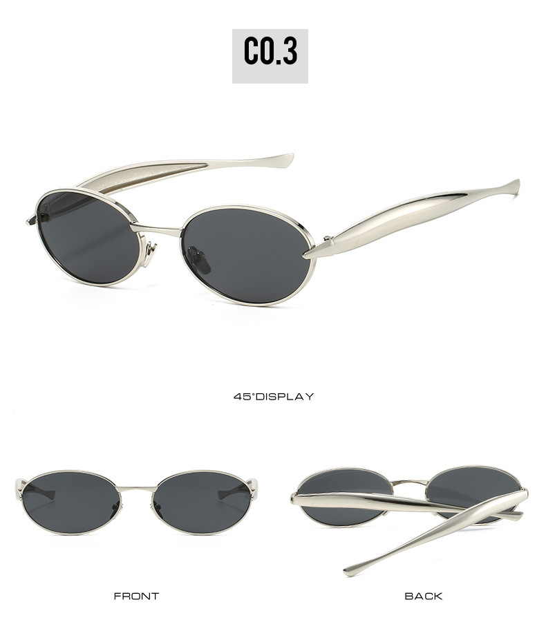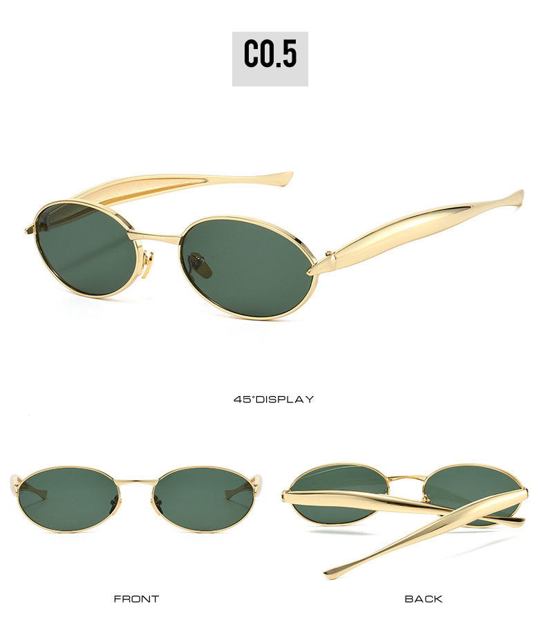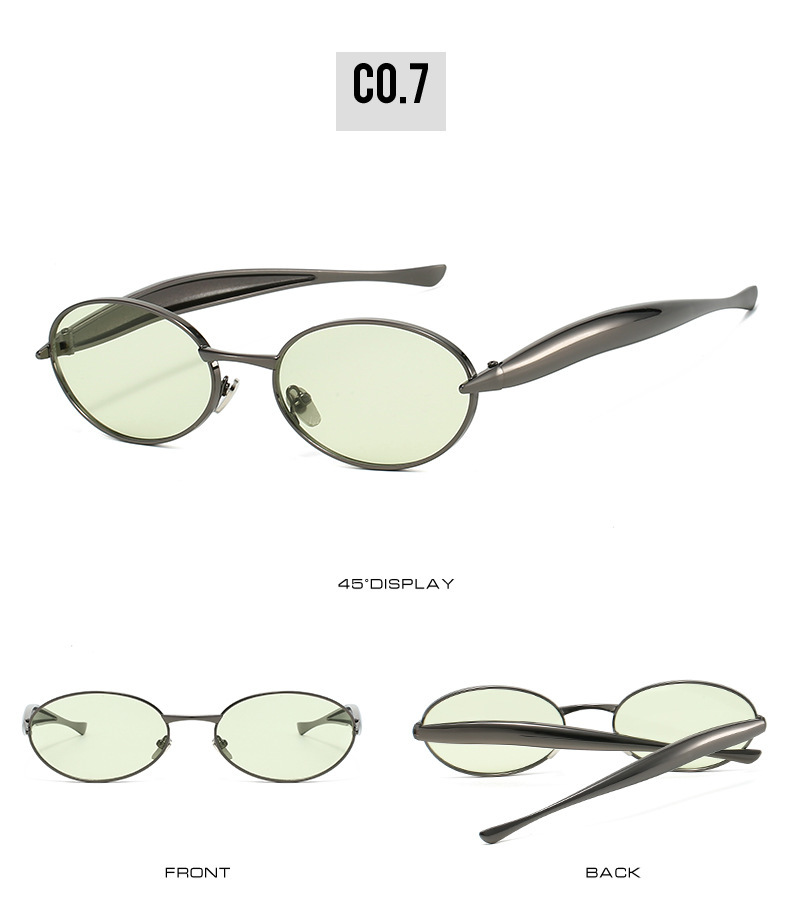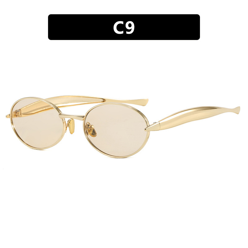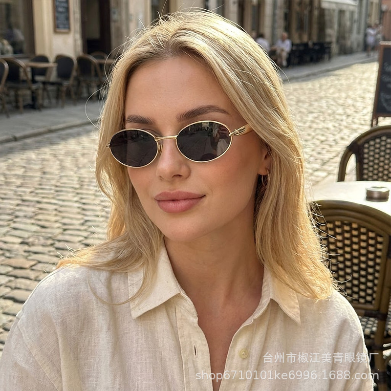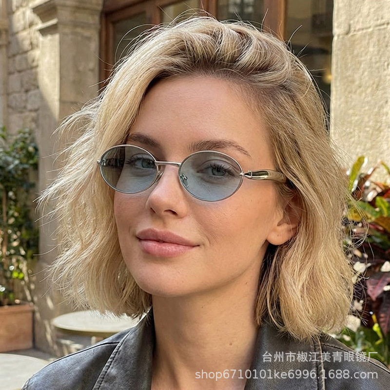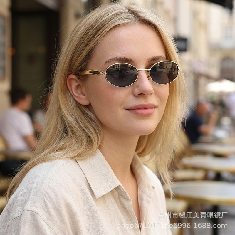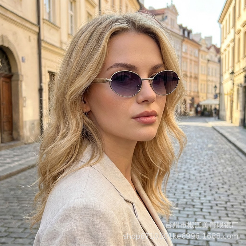 2025 new elliptical small frame sunglasses, European and American personalized fashionable metal women's high-end sunglasses