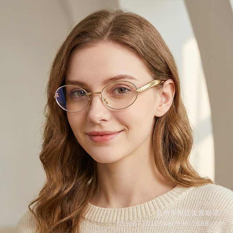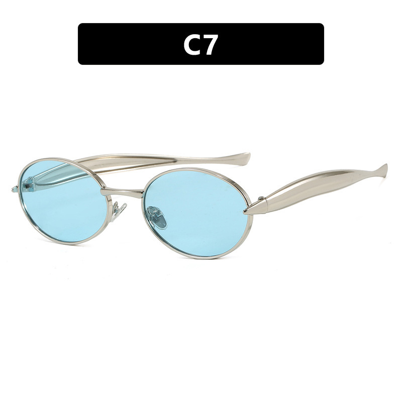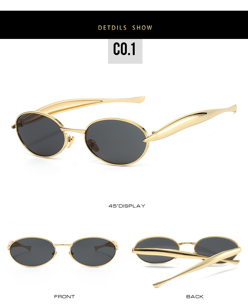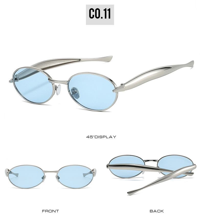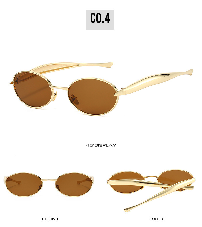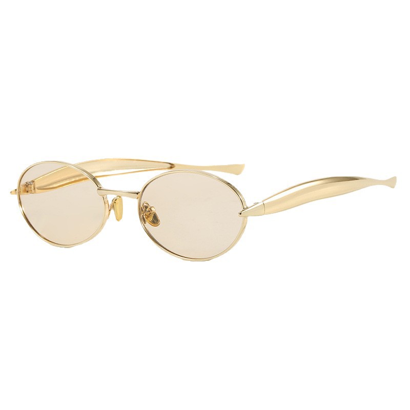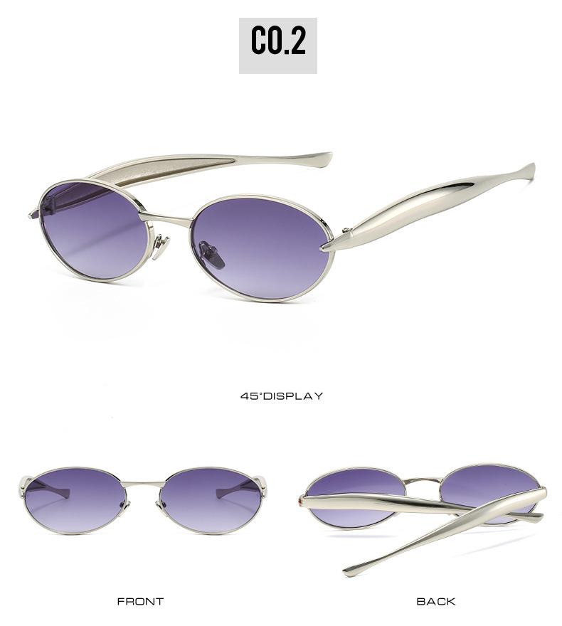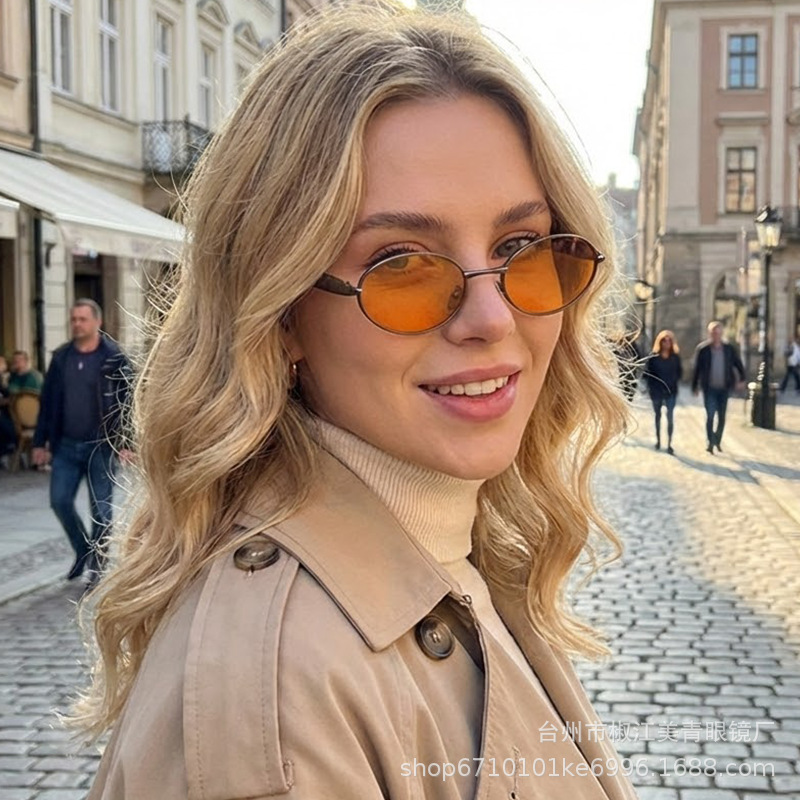 2025 new elliptical small frame sunglasses, European and American personalized fashionable metal women's high-end sunglasses