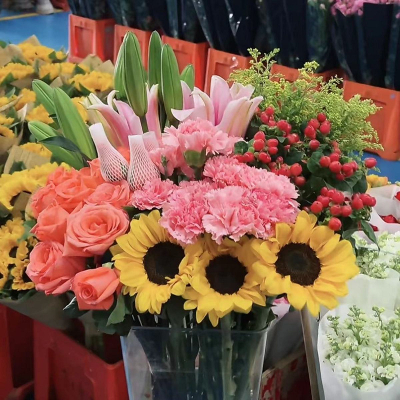 9.9 Цветы 4 комплекта "Юньнань база цветы прямые розовые духи лилии подсолнухи гвоздики букет