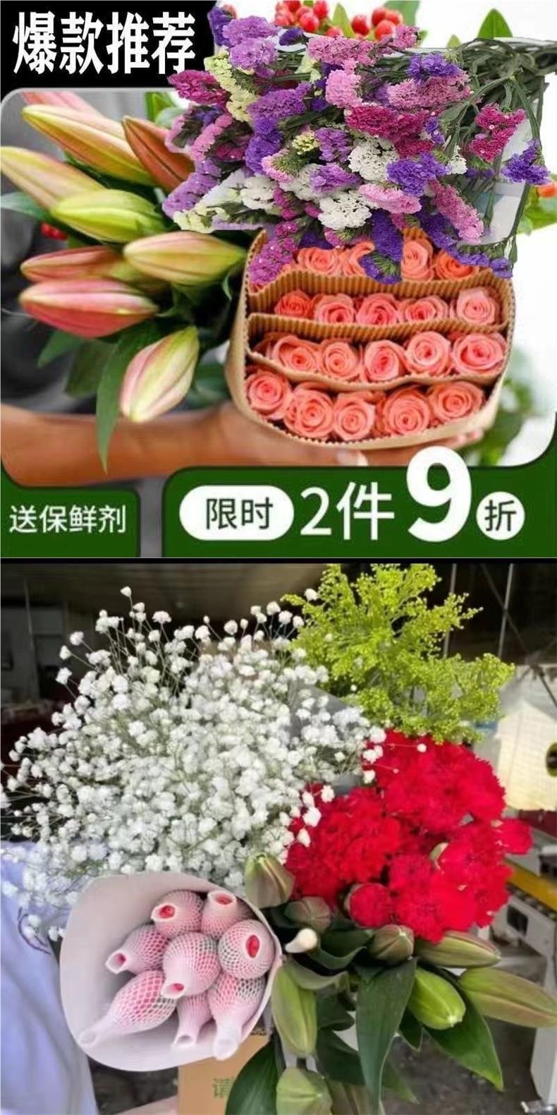 Flowers with flower buds, lilies, roses, sunflowers, carnations, forget me not, spring flowers, Yunnan flower base, direct hair factory