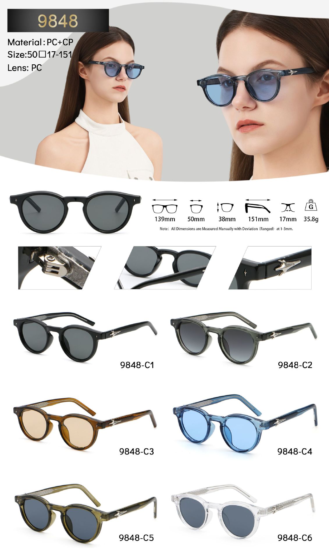 9848 Новая пластина пропионовая рама солнцезащитные очки мода Европа, США и ЮжнаяКорея Мужчины и женщины уличные фотозвезды одинаковые солнцезащитные очки
