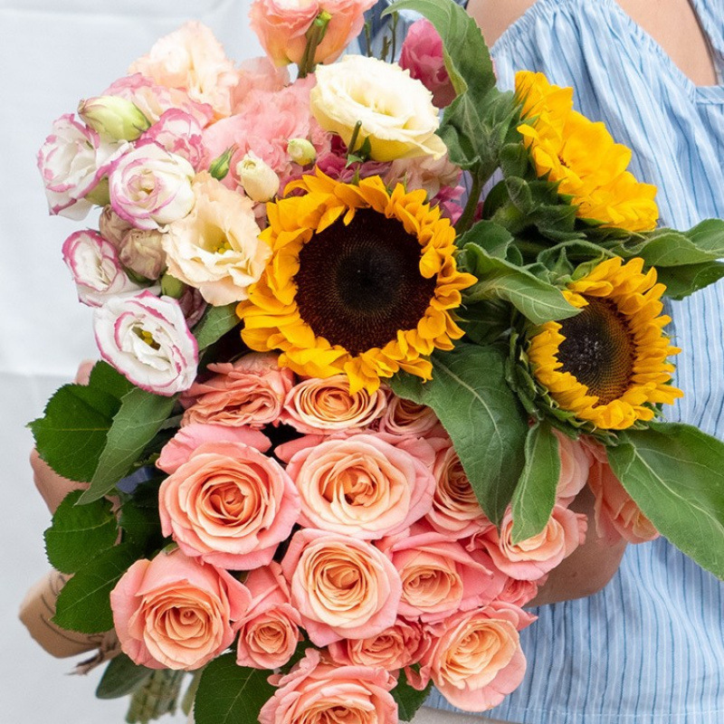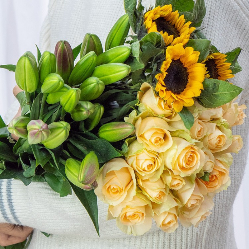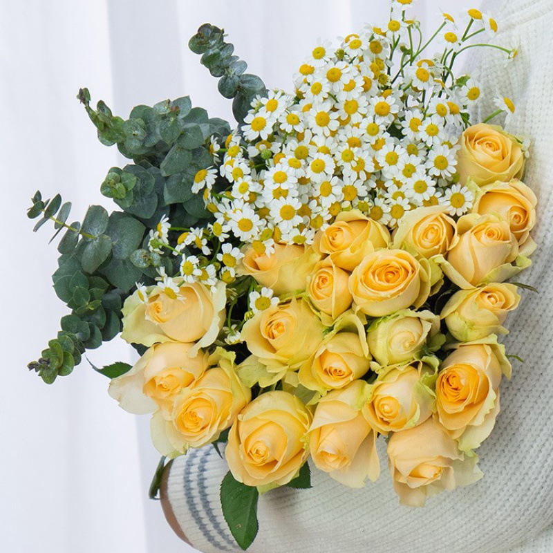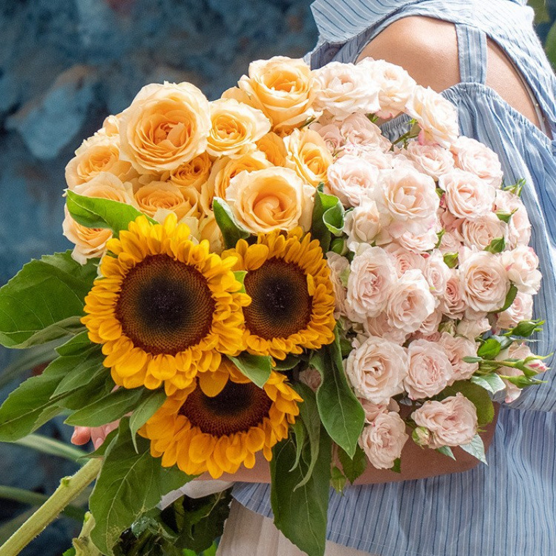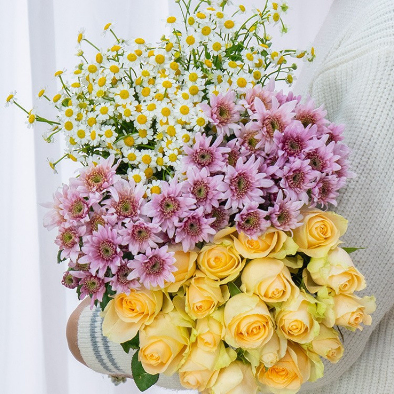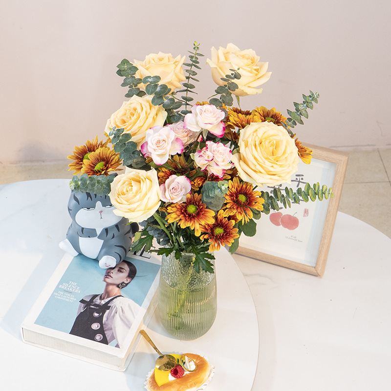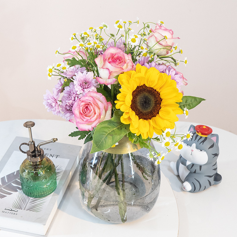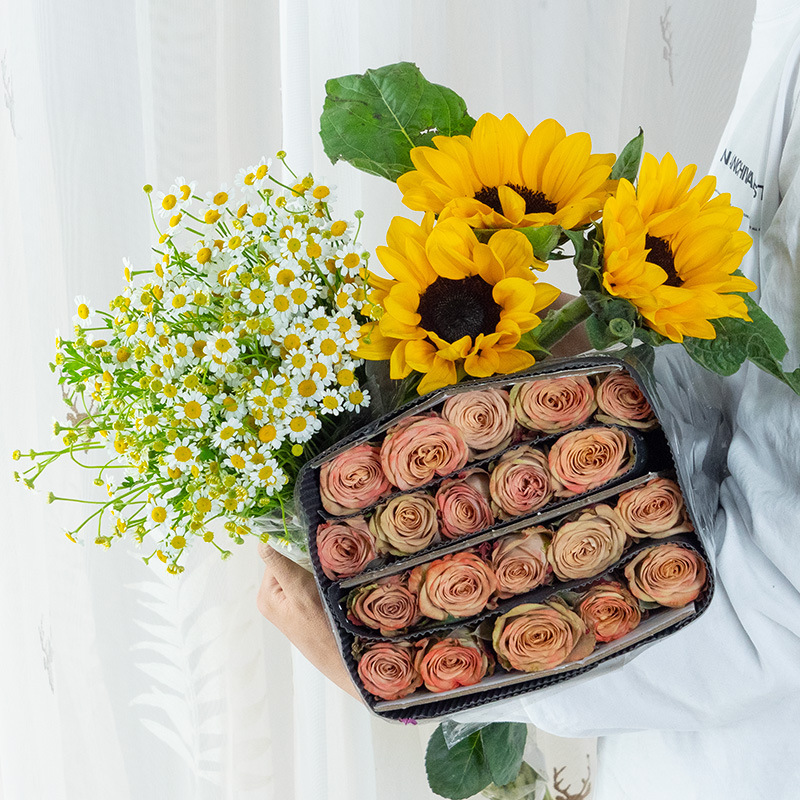 Розы Юньнань Куньмин красные вода прямые цветы подсолнухи