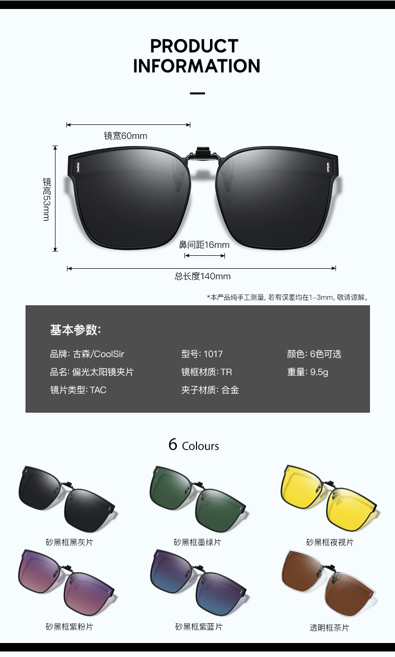 2025 New Polarized Clip Sunglasses 1017 Fashion Men's and Women's Myopia Upward Flip Sunglasses Clip Night Vision Glasses