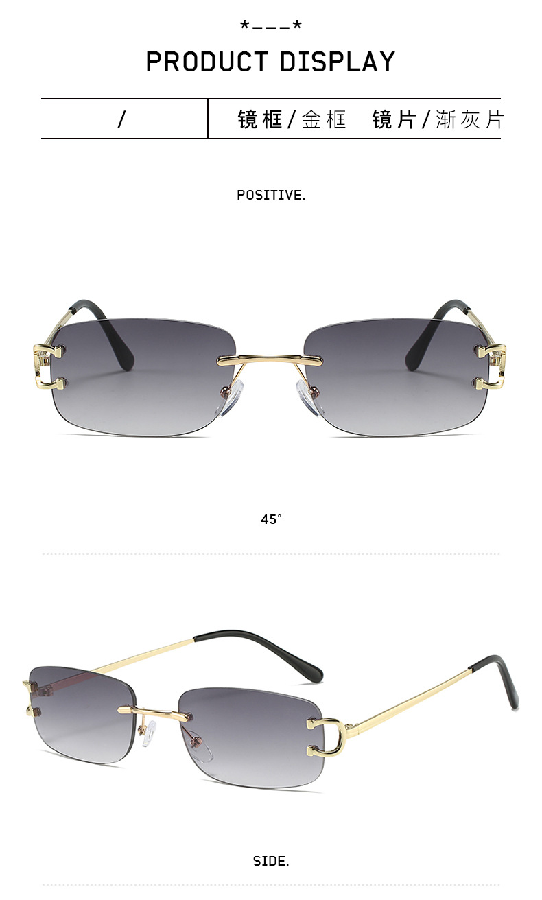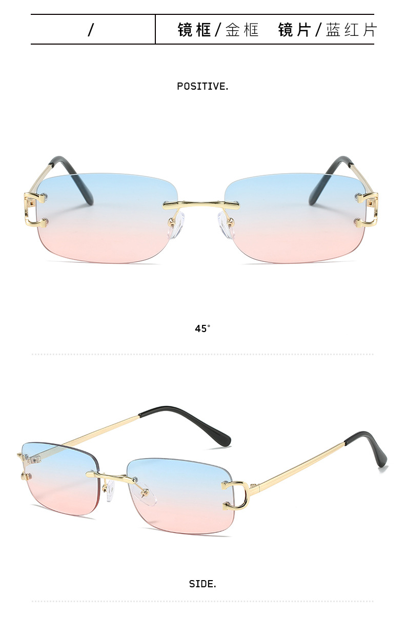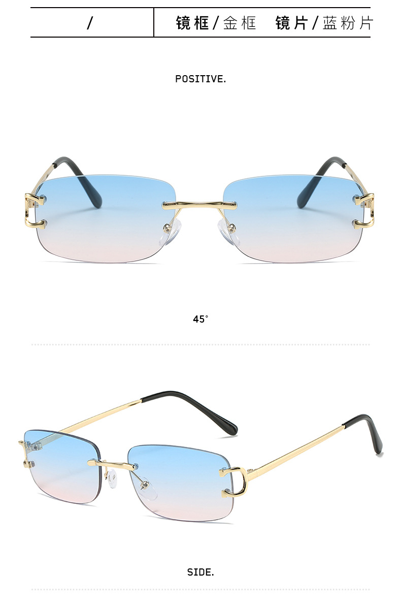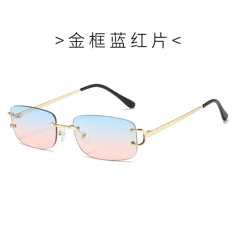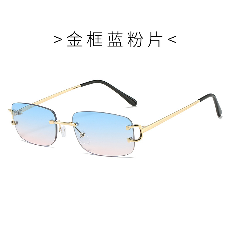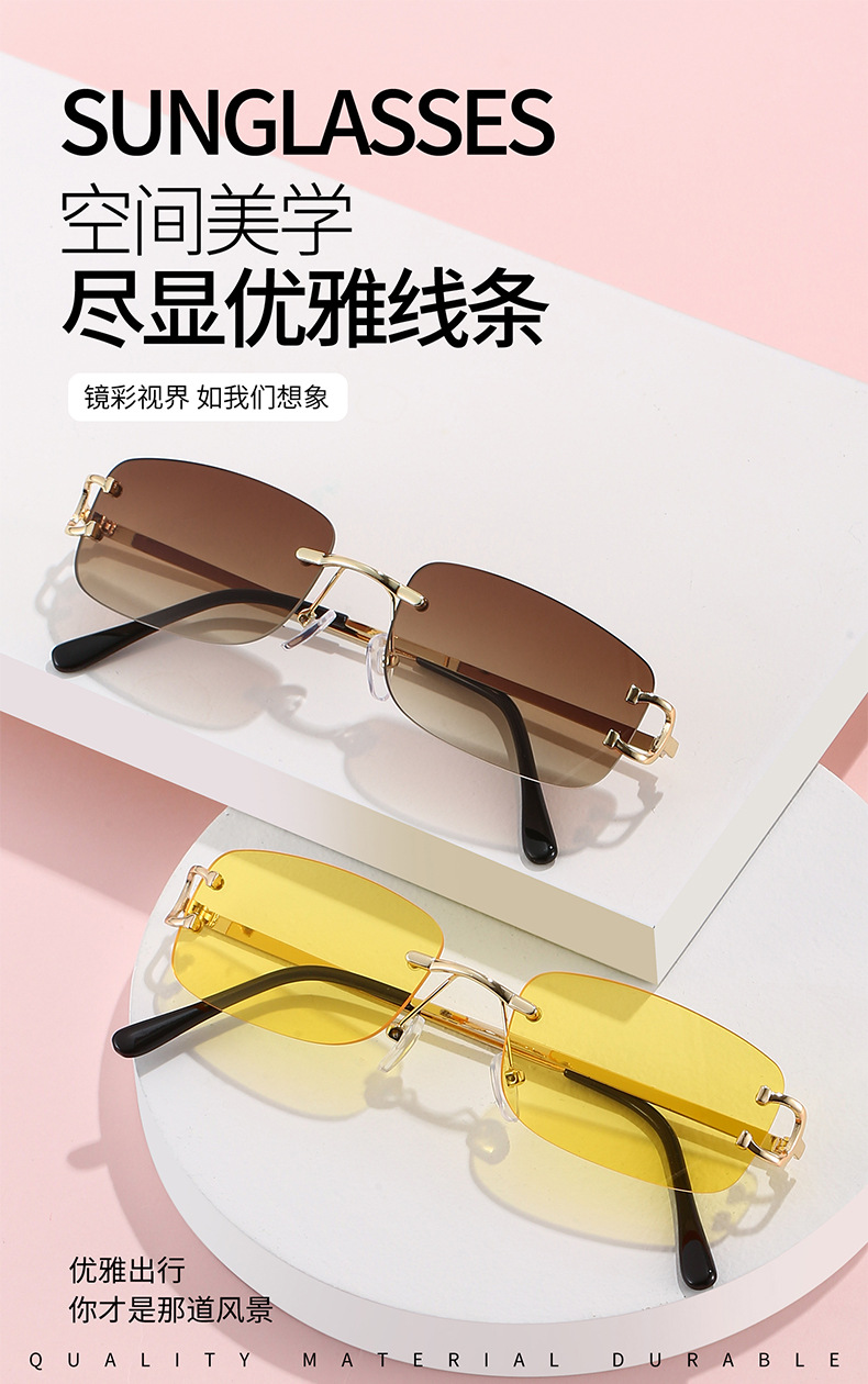 Manufacturer wholesale frameless glasses with cut edges, square men's and women's sunglasses, metal, European and American street photography, trendy cross-border sunglasses